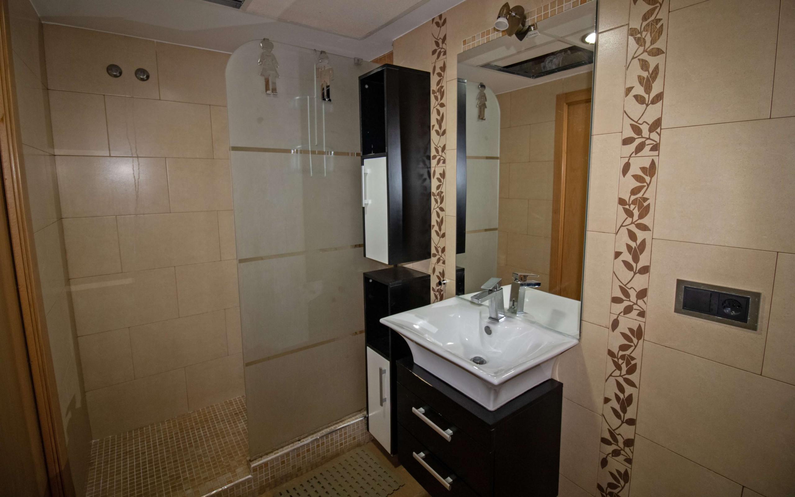 El baño tiene un plato de ducha .