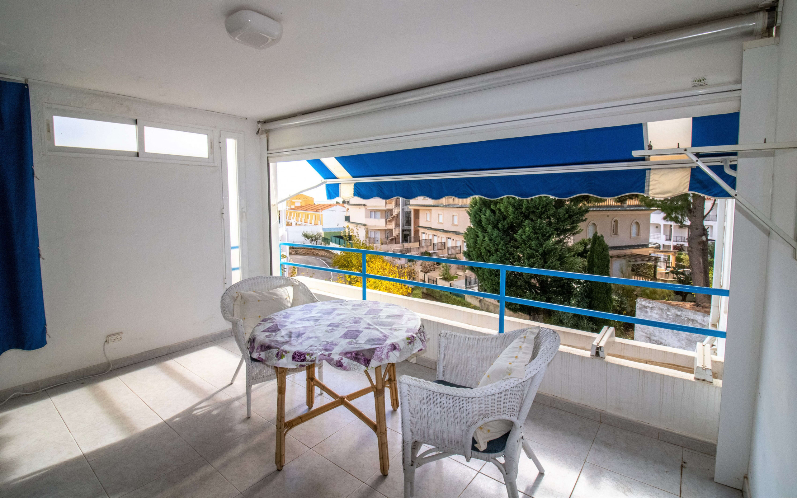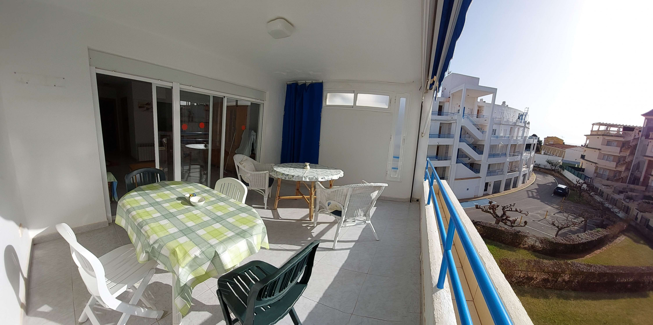 El alojamiento cuenta con un dormitorio con cama de matrimonio y radiador eléctrico, y un sofá-cama para 2 personas (recomendable solo 1 si es adulto). Un baño reformado con plato de ducha. Un salón-comedor luminoso, y una terraza amplia y fresca de 12 metros cuadrados , con vistas al mar, con cierre mediante toldo vertical traslúcido, permitiendo estar cómodamente en cualquier época del año.