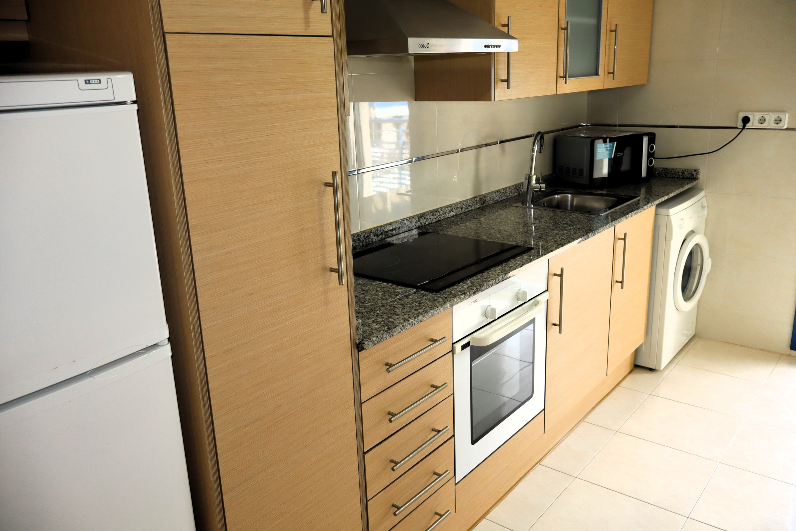 La cocina independiente, de inducción, está equipada con nevera, microondas, horno, congelador, vajilla, cubertería, utensilios de cocina, cafetera.