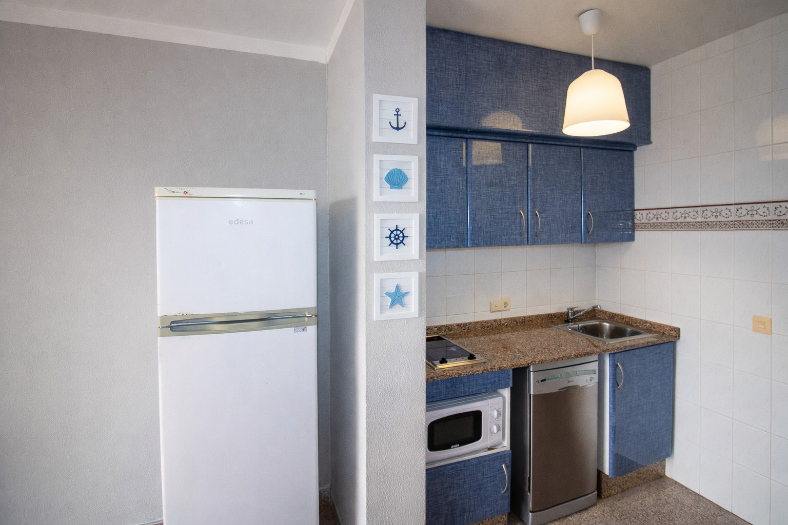 🍽️ Cocina americana totalmente equipada: horno, vitrocerámica, microondas, cafetera, tostadora, lavadora y todo lo necesario para sentirte como en casa.