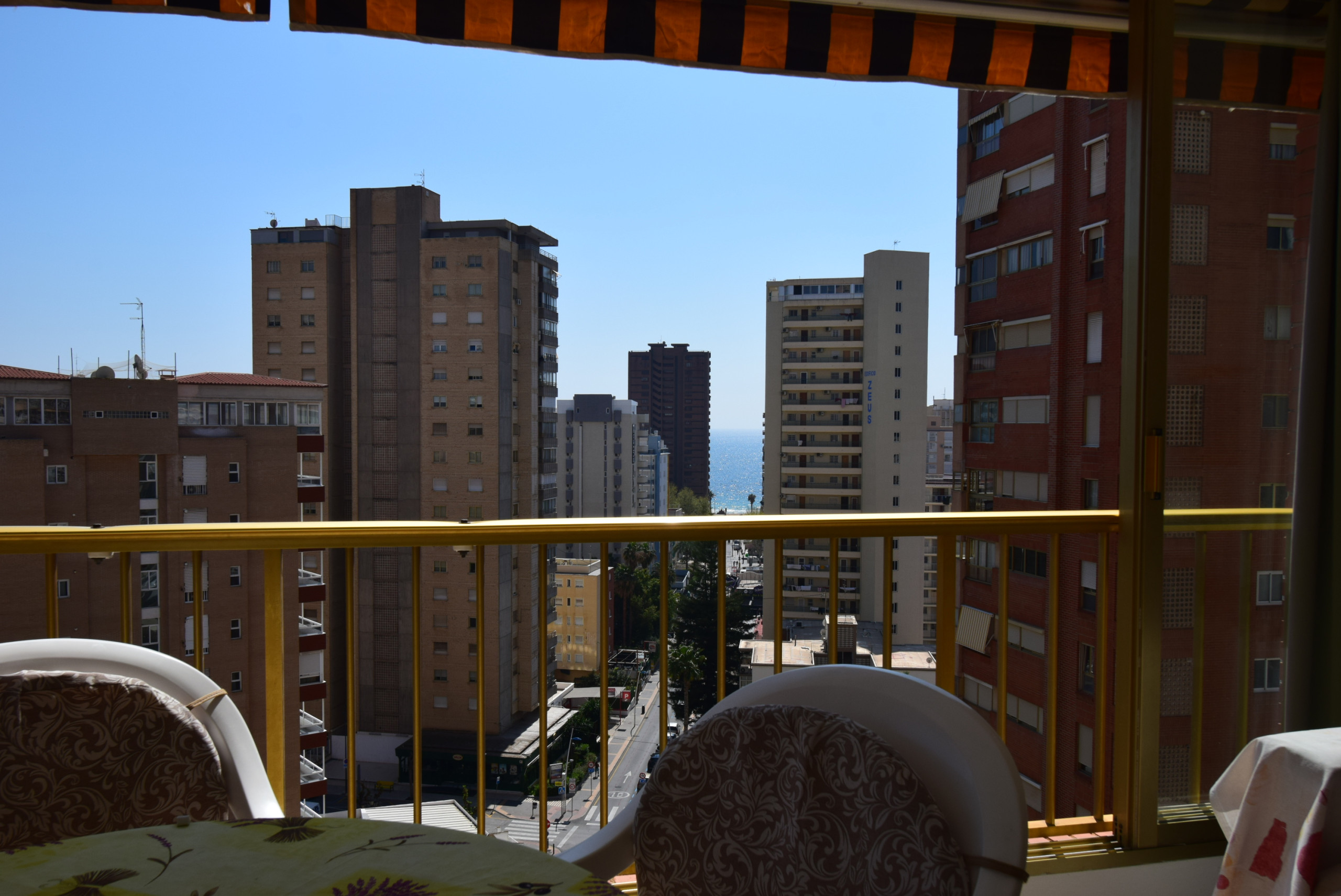 En las fotos se ve claramente como es la tarraza y todas son asi en benidorm, tienen una barandilla que cumple la norma de construcción.