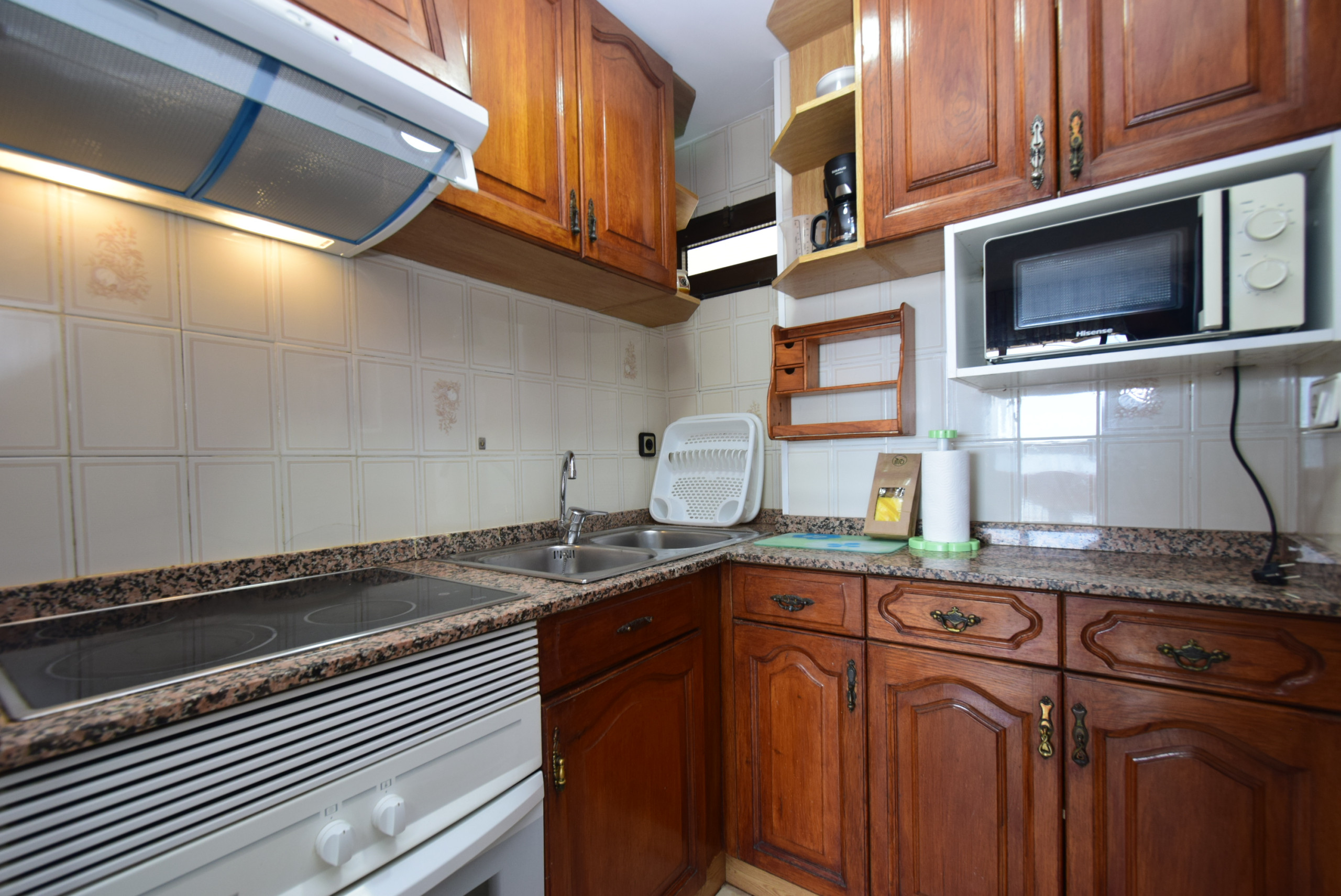 La cocina es eléctrica, dispone de 2 placas eléctricas, horno, microondas, tostadora, kettle, campana extractora de humo, cafetera y nevera con congelador independiente, lavadora y termo eléctrico para agua caliente. Tiene un menaje de cocina, platos y cubiertos normal para hasta 4 personas.