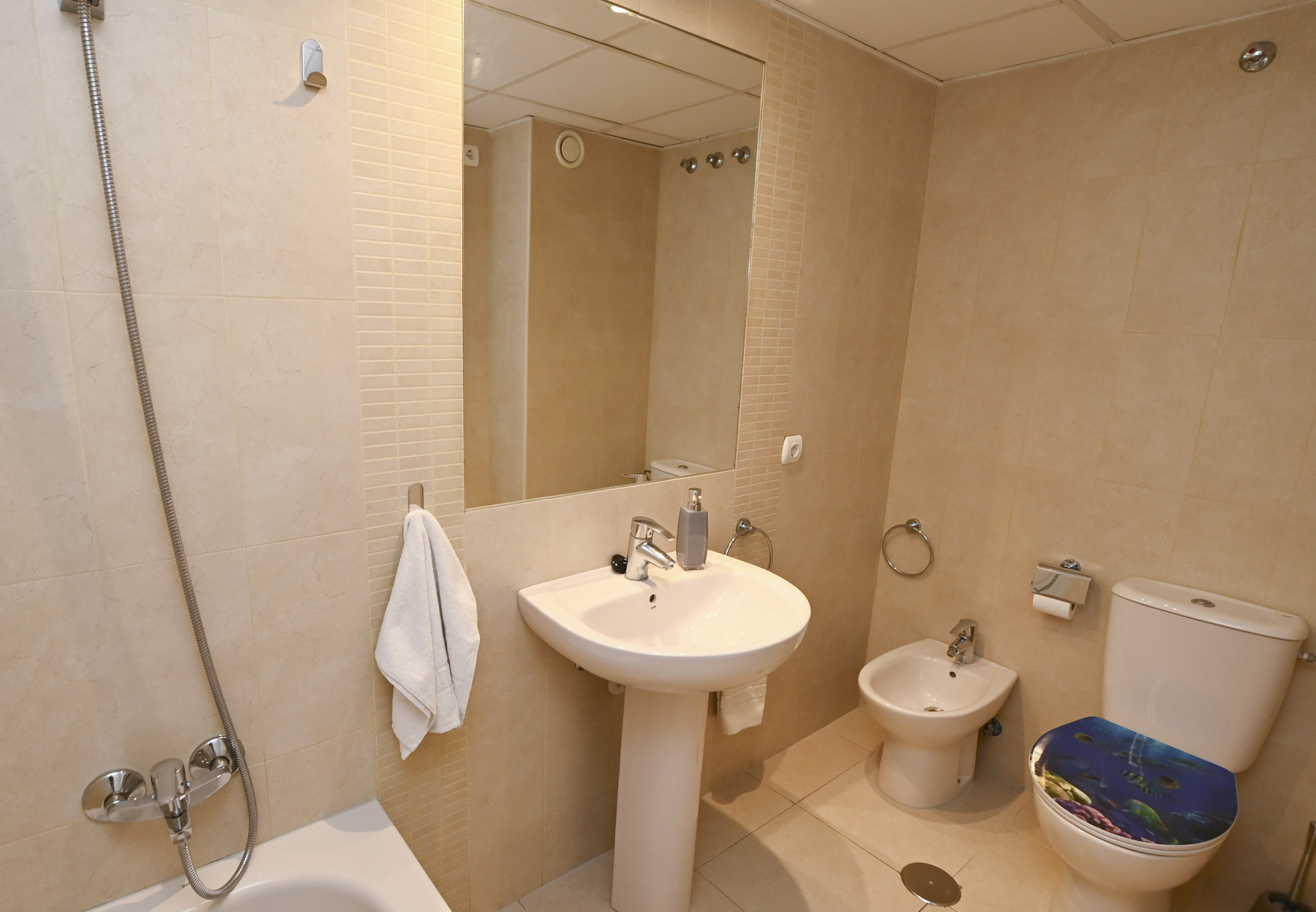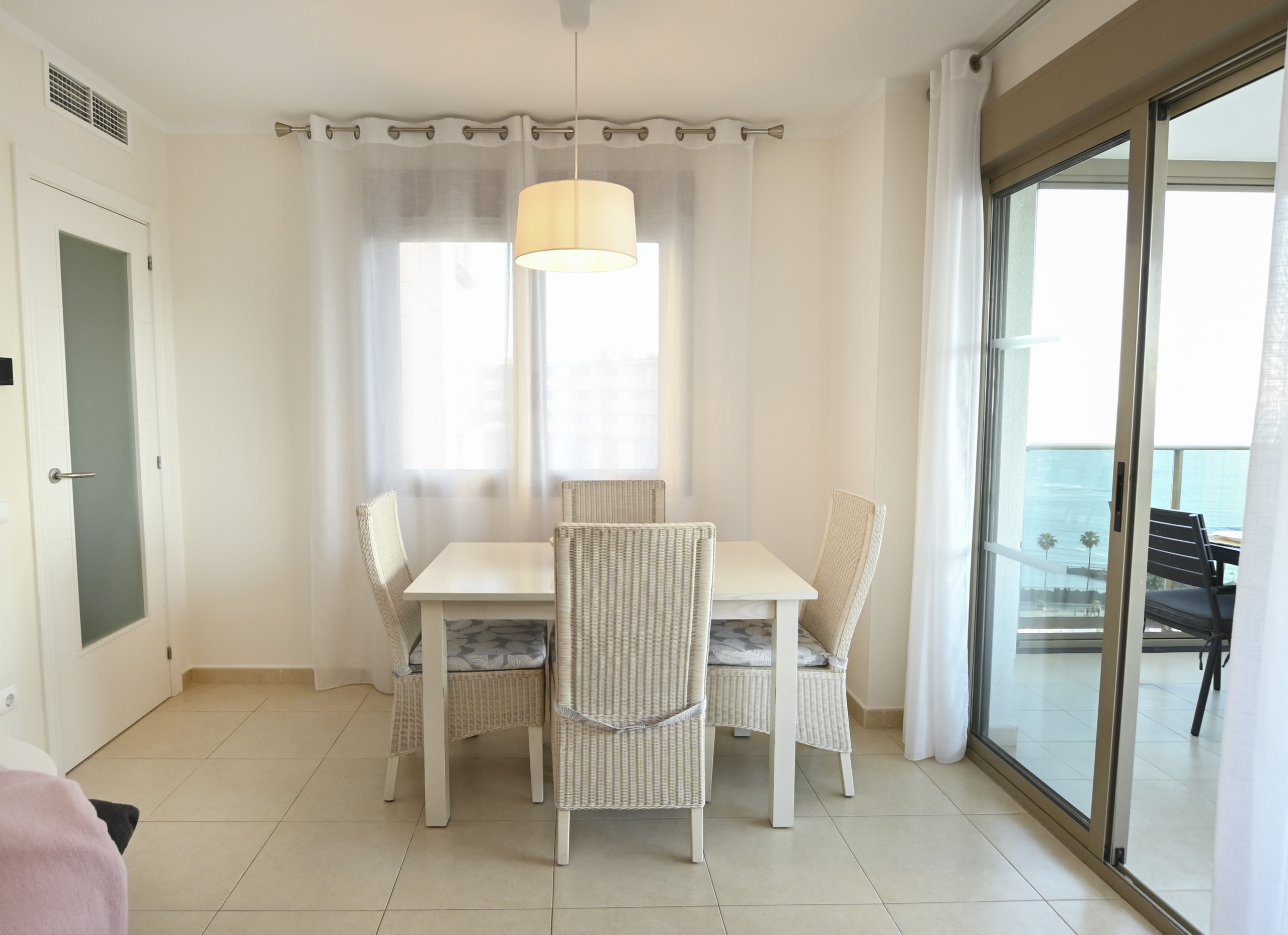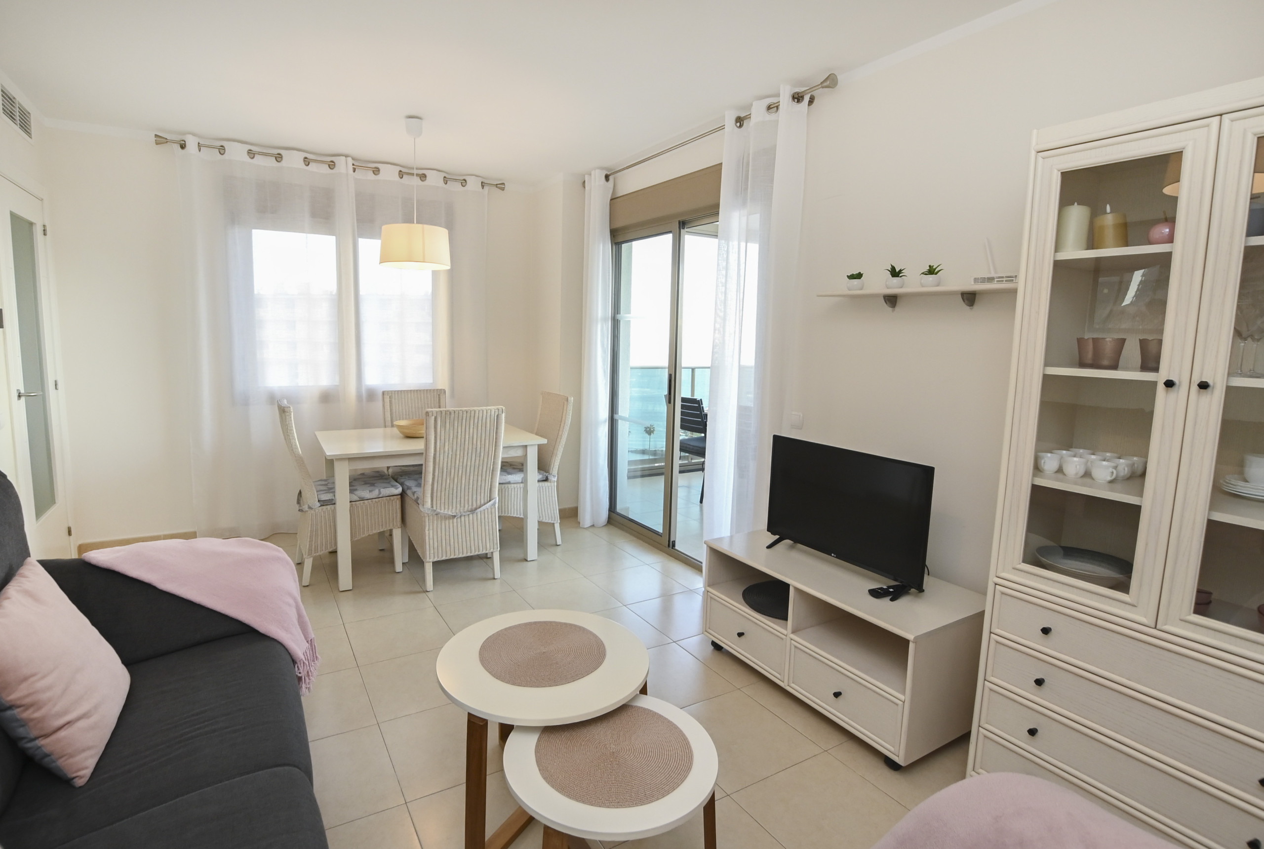 Dispone de ascensor, plancha, acceso internet (wifi 10€ la semana), calefacción bomba de calor y aire acondicionado (coste extra 50€/semana), piscina comunitaria+infantil, Televisión.