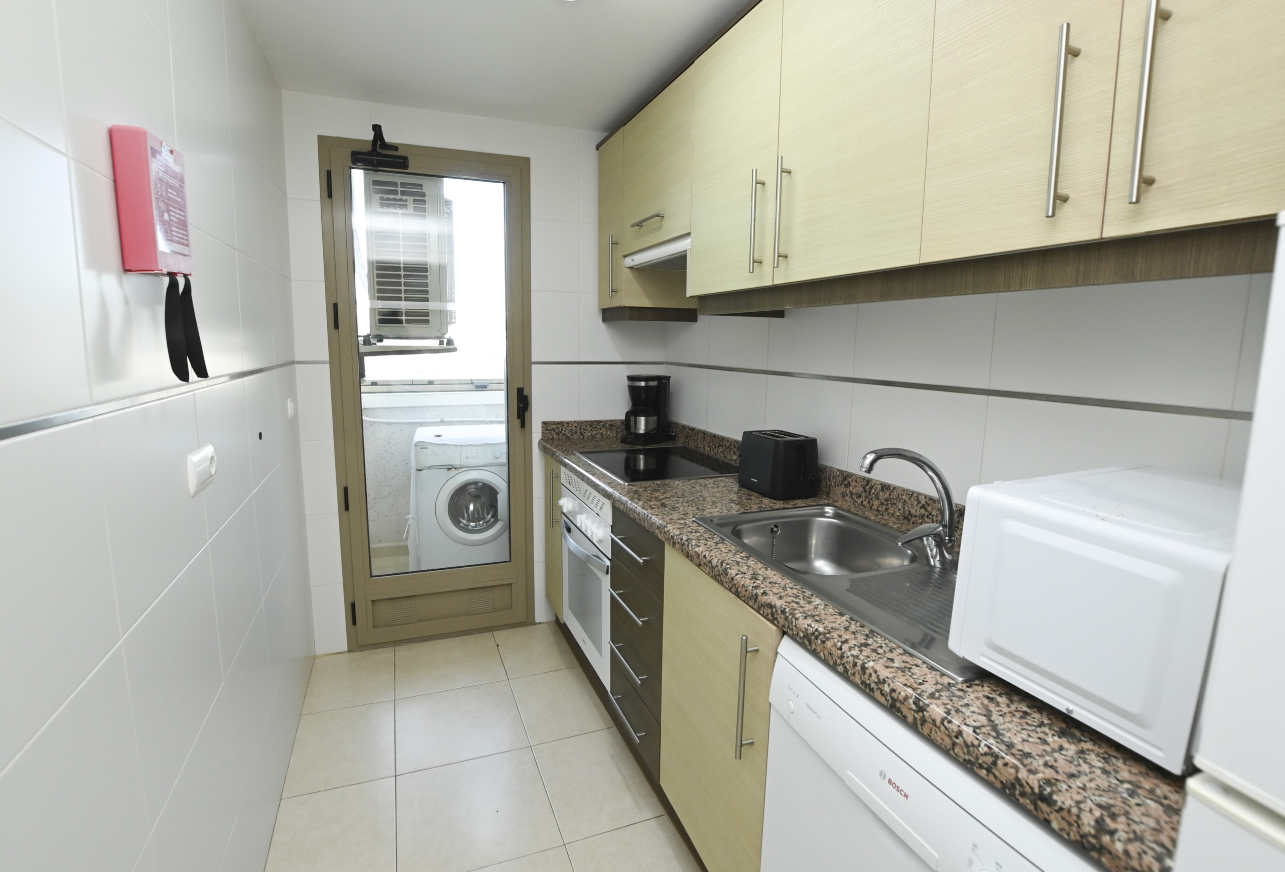 La cocina independiente, de vitrocerámica, está equipada con nevera, microondas, horno, lavadora, vajilla/cubertería, utensilios/cocina, cafetera, tostadora y hervidor de agua.