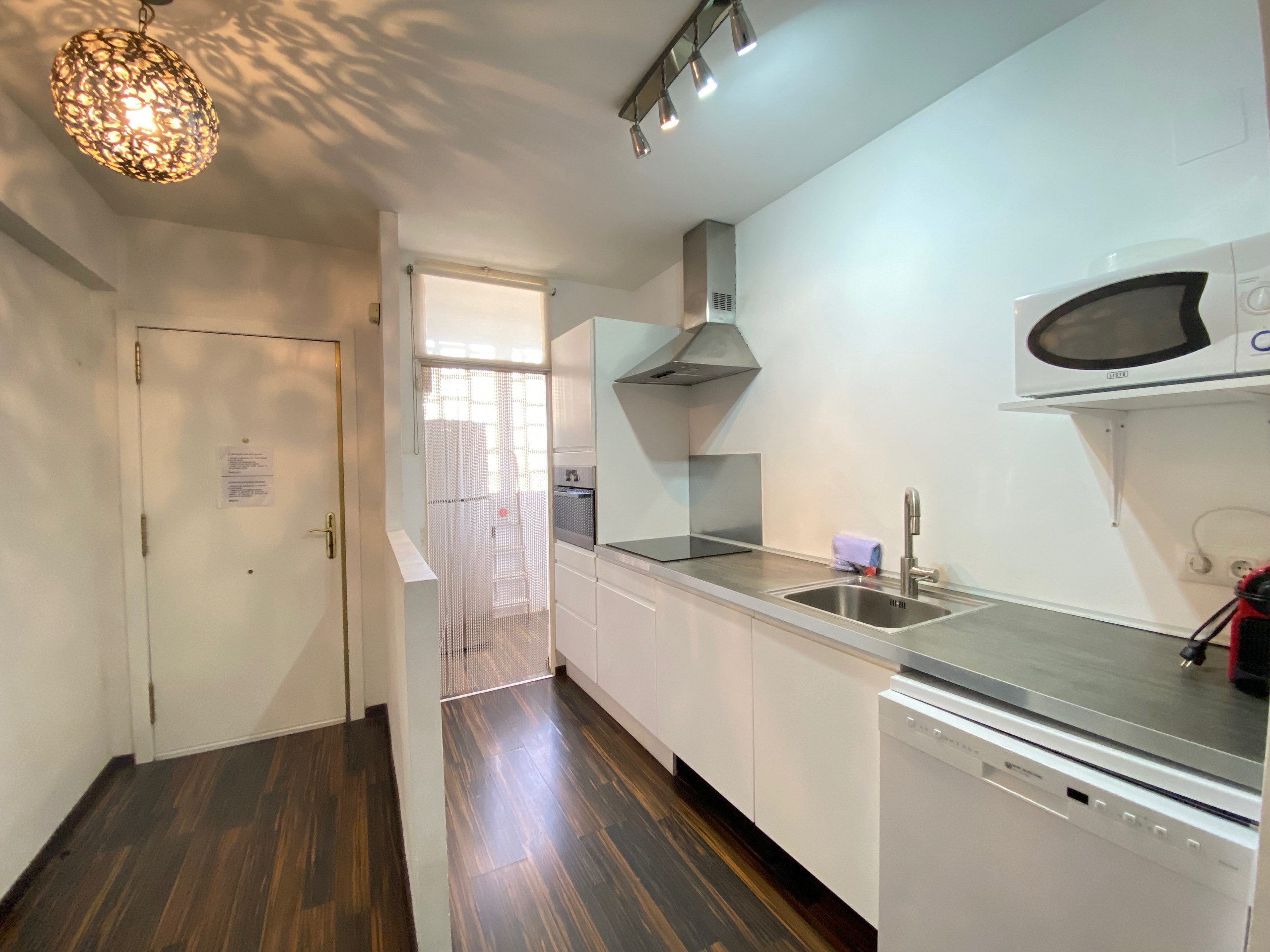 La cocina independiente está totalmente equipada con electrodomésticos de primera: nevera, congelador, lavadora, horno, microondas, cafetera, tostadora, hervidor, y una completa dotación de menaje. Perfecto para preparar deliciosas comidas durante tu estancia.