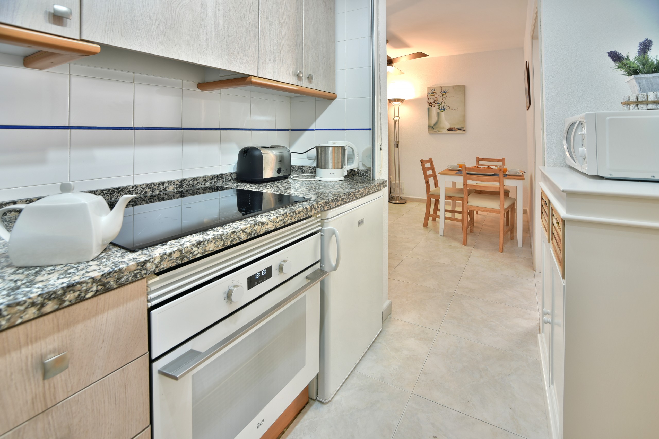 La cocina americana, de vitrocerámica, está equipada con nevera, microondas, horno, congelador, lavadora, lavavajillas, vajilla/cubertería, utensilios/cocina, cafetera, tostadora y hervidor de agua.2 comentarios -