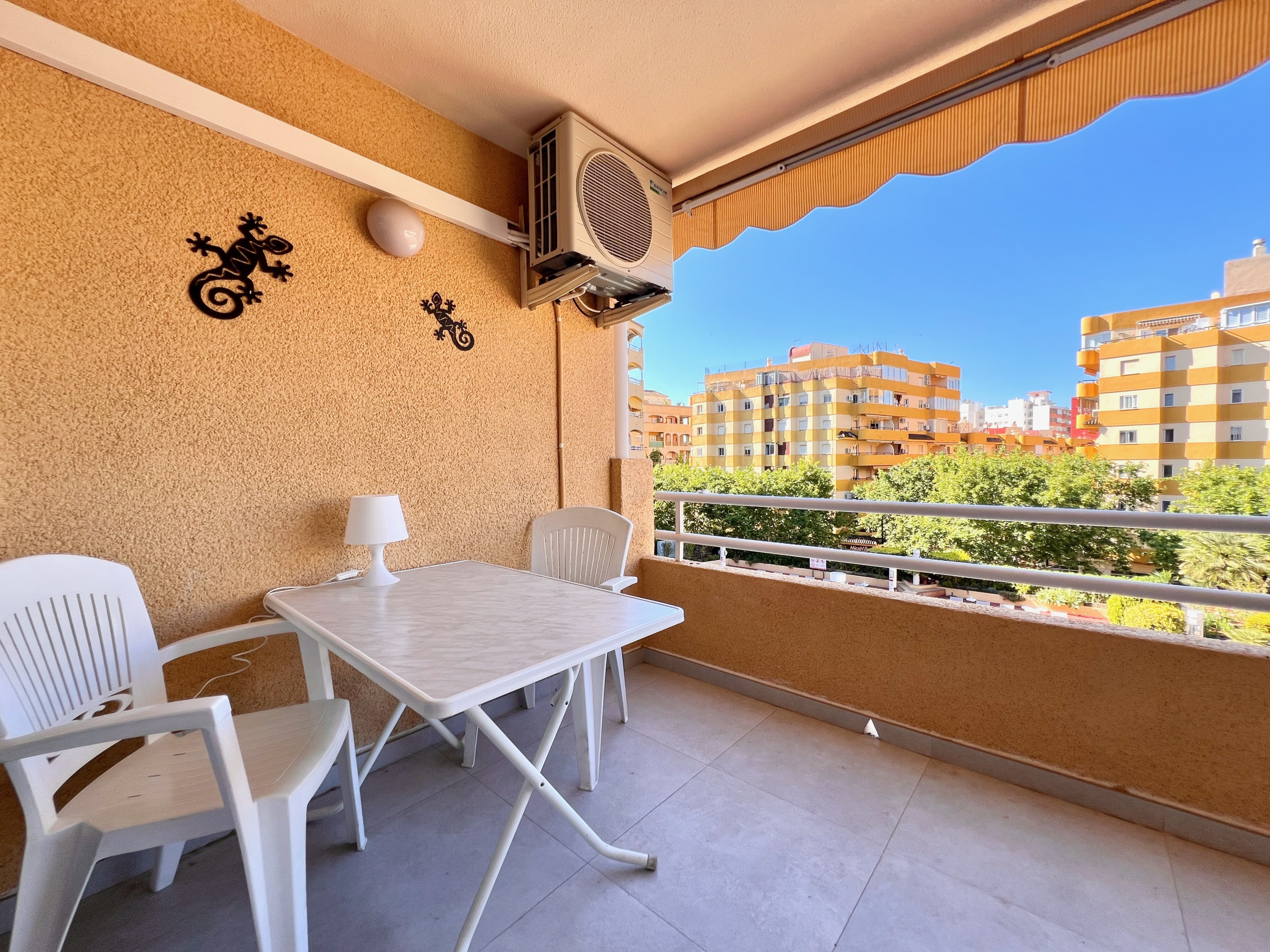 El baño con ducha y una terraza de 12 metros cuadrados completan los espacios interiores. Desde la terraza podrás disfrutar de vistas parciales al mar y relajarte después de un día de playa. El apartamento también ofrece plaza de garaje en el mismo edificio, wifi, plancha y televisión.