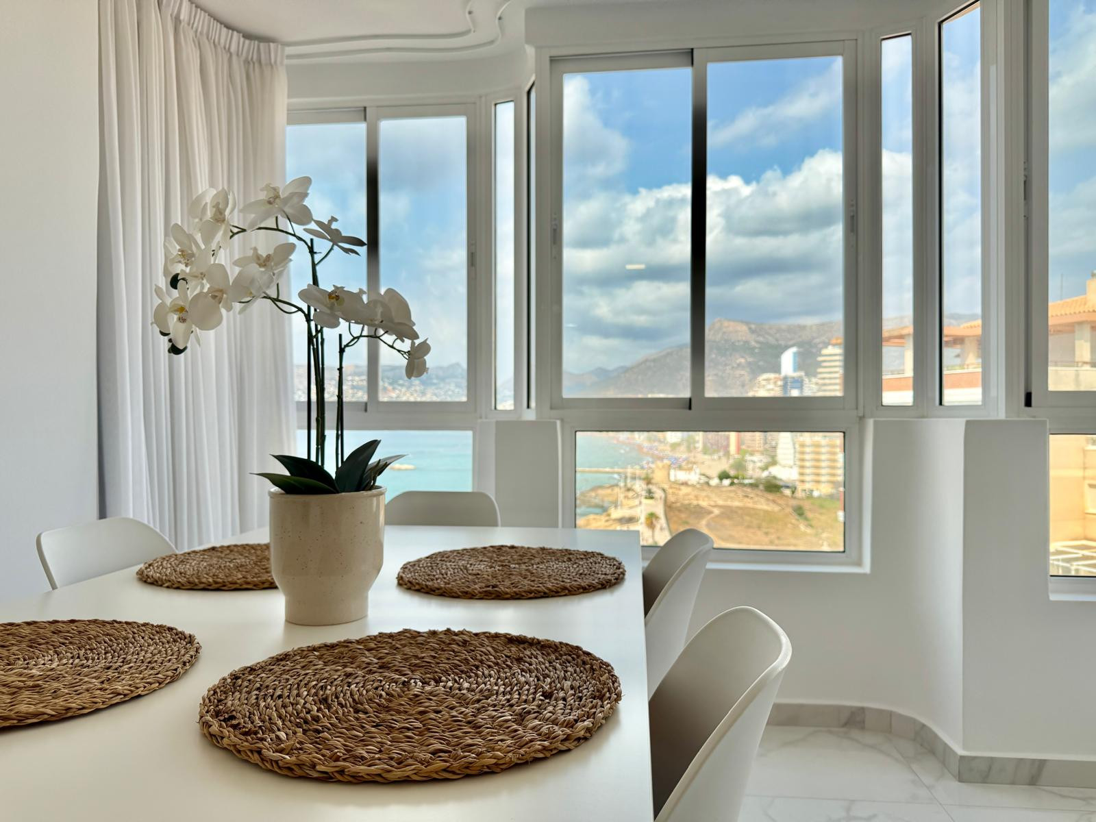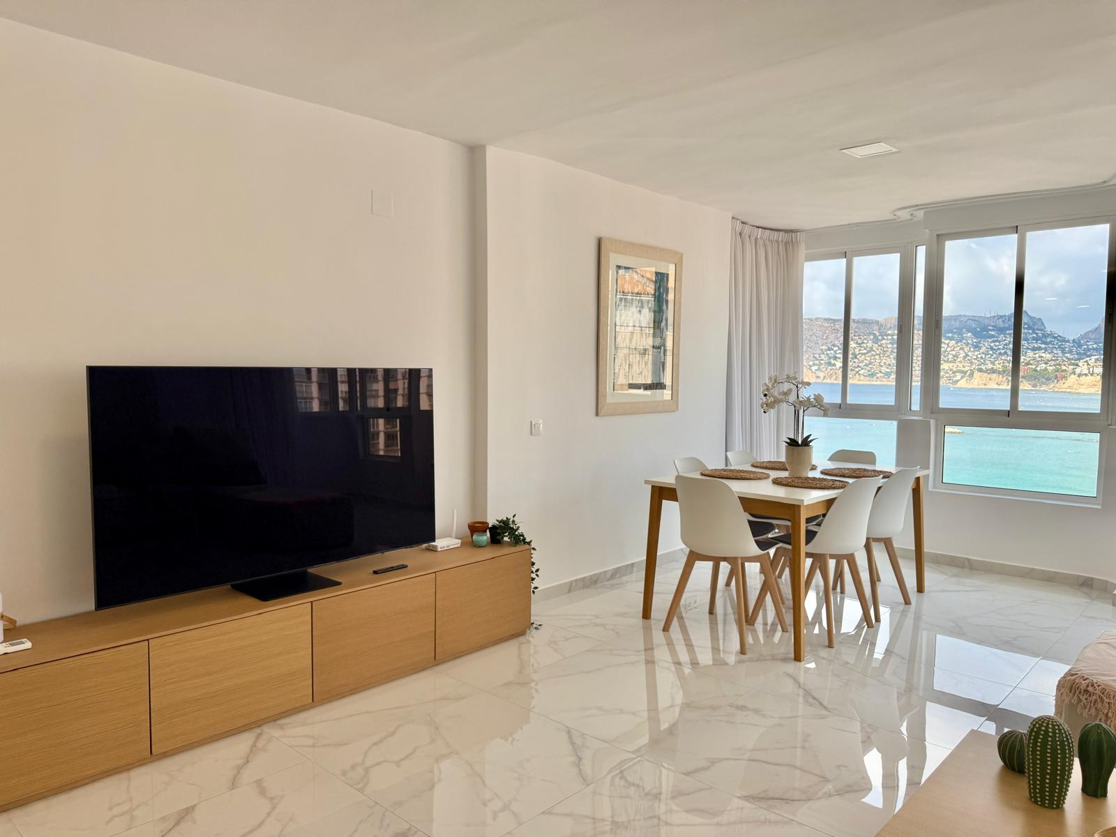Este amplio y luminoso apartamento es el lugar perfecto para disfrutar de unas vacaciones en Calpe. Totalmente reformado con un estilo moderno y acogedor, ofrece un ambiente elegante y confortable en cada estancia. El salón destaca por sus grandes ventanales, que llenan la vivienda de luz natural y permiten disfrutar de unas espectaculares vistas directas al mar. Desde aquí podrás contemplar preciosos atardeceres que harán de cada día una experiencia inolvidable.