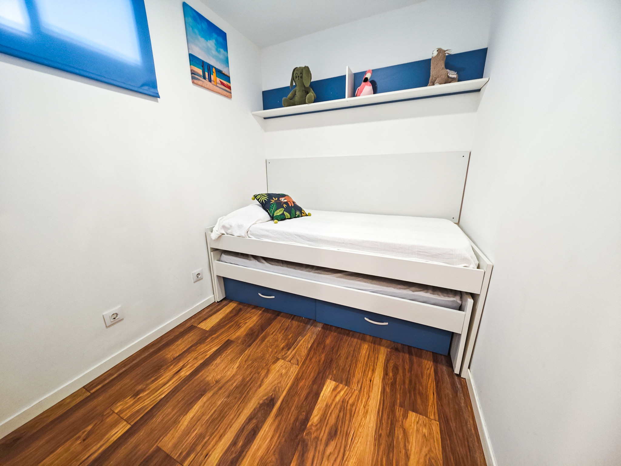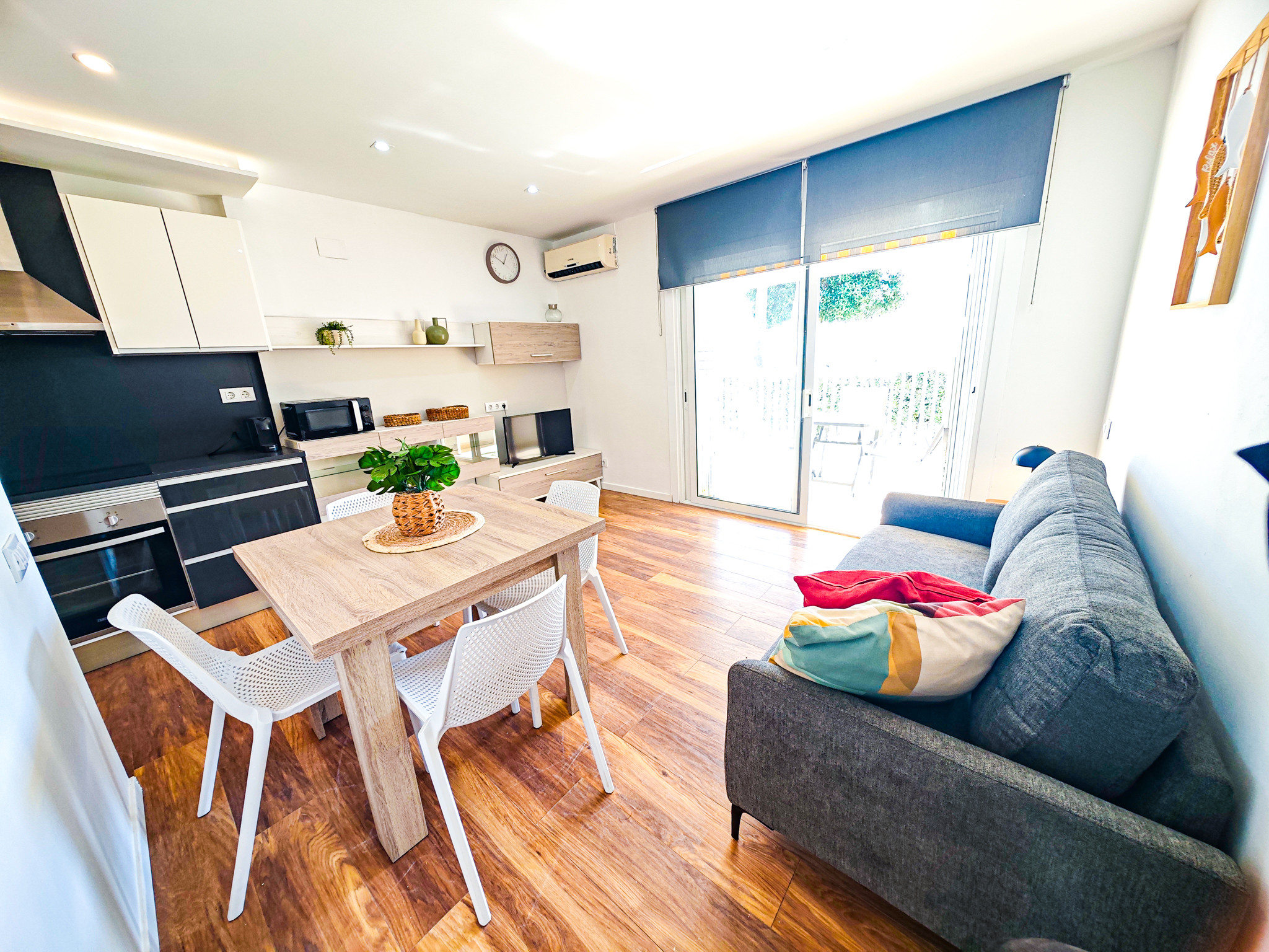 Este acogedor piso cuenta con una habitación doble + 1 habitación "camarote" con 2 camas pero sin ventanas, un baño completo con ducha, una cocina moderna y bien equipada, y un amplio salón-comedor. Además, el apartamento está equipado con aire acondicionado en el salón para garantizar tu comodidad en los días calurosos, y dispone de parking incluido.
