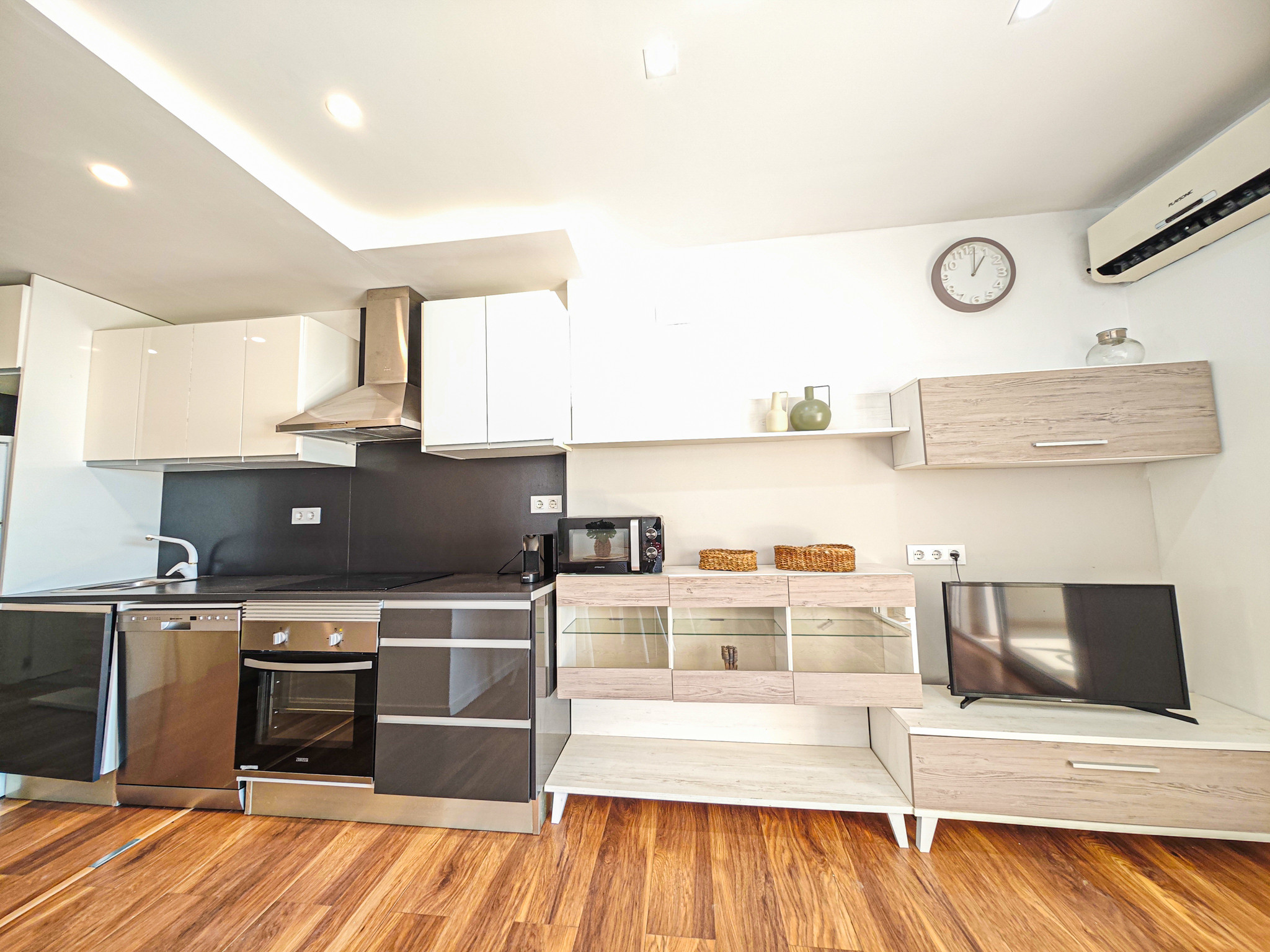 La ubicación y el apartamento muy acogedor con mobiliario minimalista bonito y muy práctico