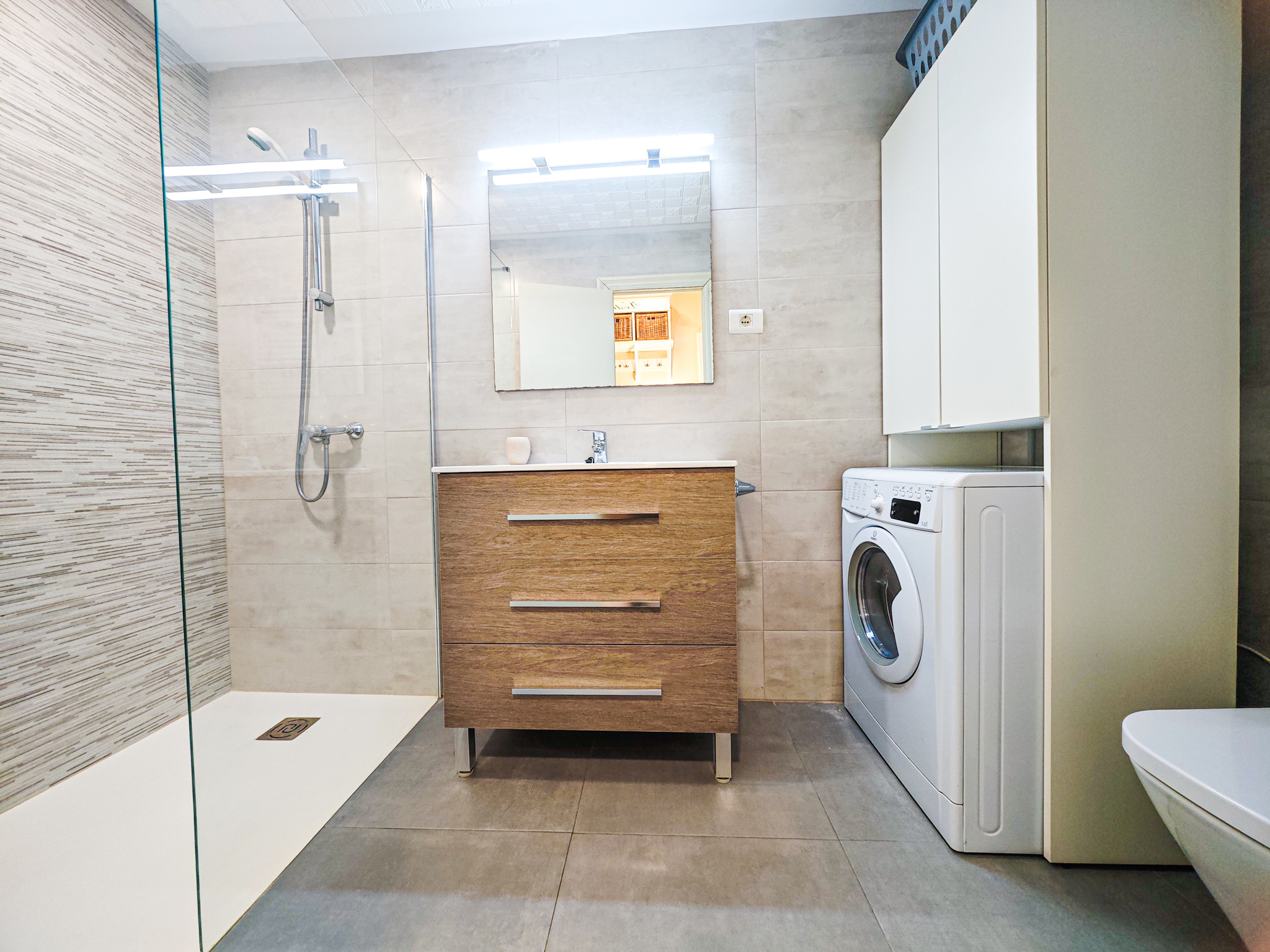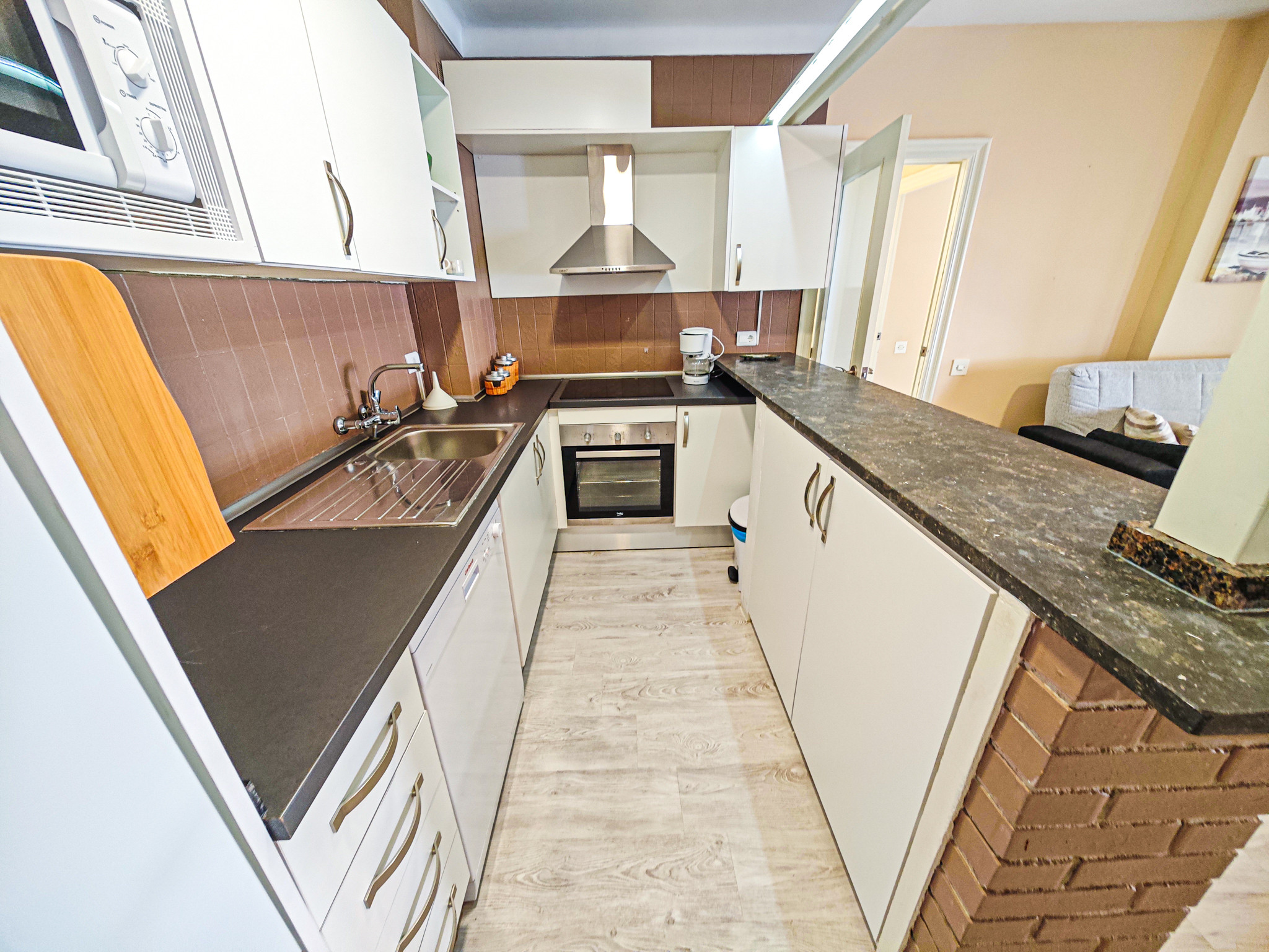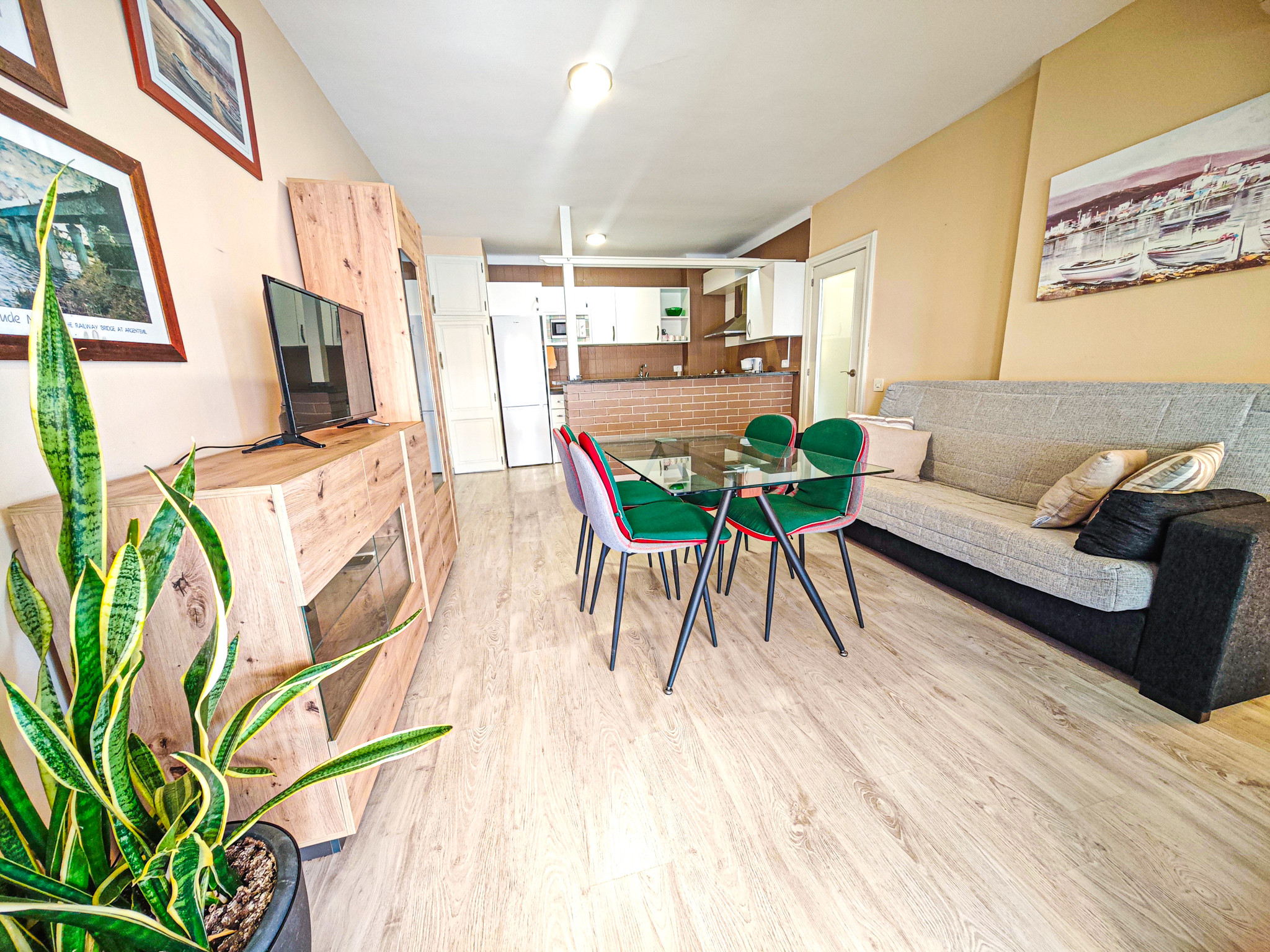 El apartamento cuenta con una habitación con una cama doble y un sofá cama adicional, perfectos para descansar después de un día explorando la zona. Dispone de un completo cuarto de baño con ducha, diseñado para tu máximo confort. La cocina americana está totalmente equipada con electrodomésticos de última generación, incluyendo nevera, lavadora, horno, microondas, cafetera, lavavajillas y todos los utensilios necesarios para preparar deliciosas comidas.