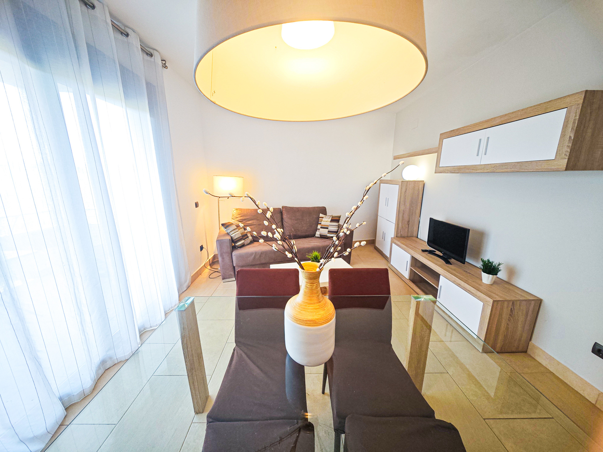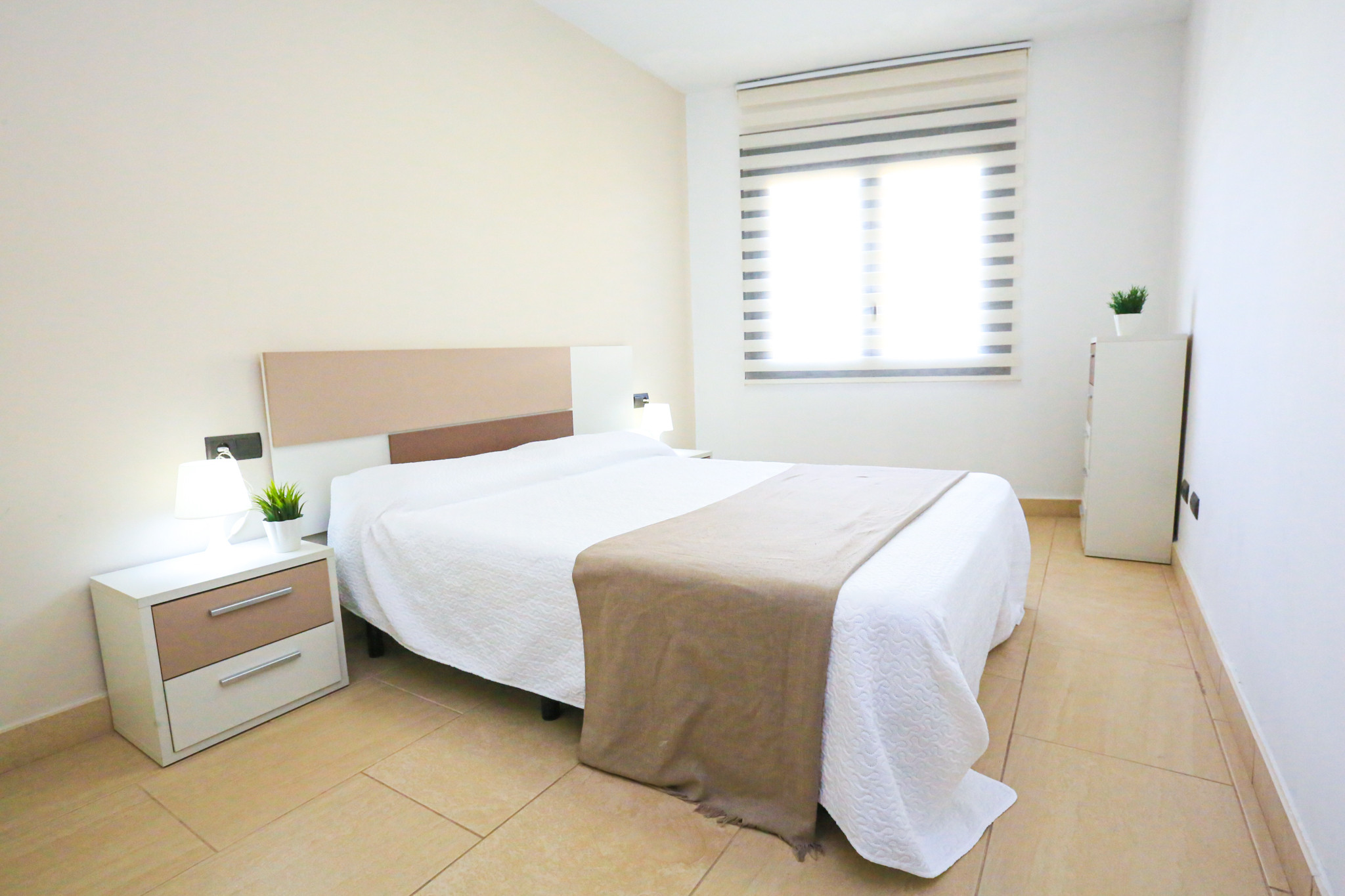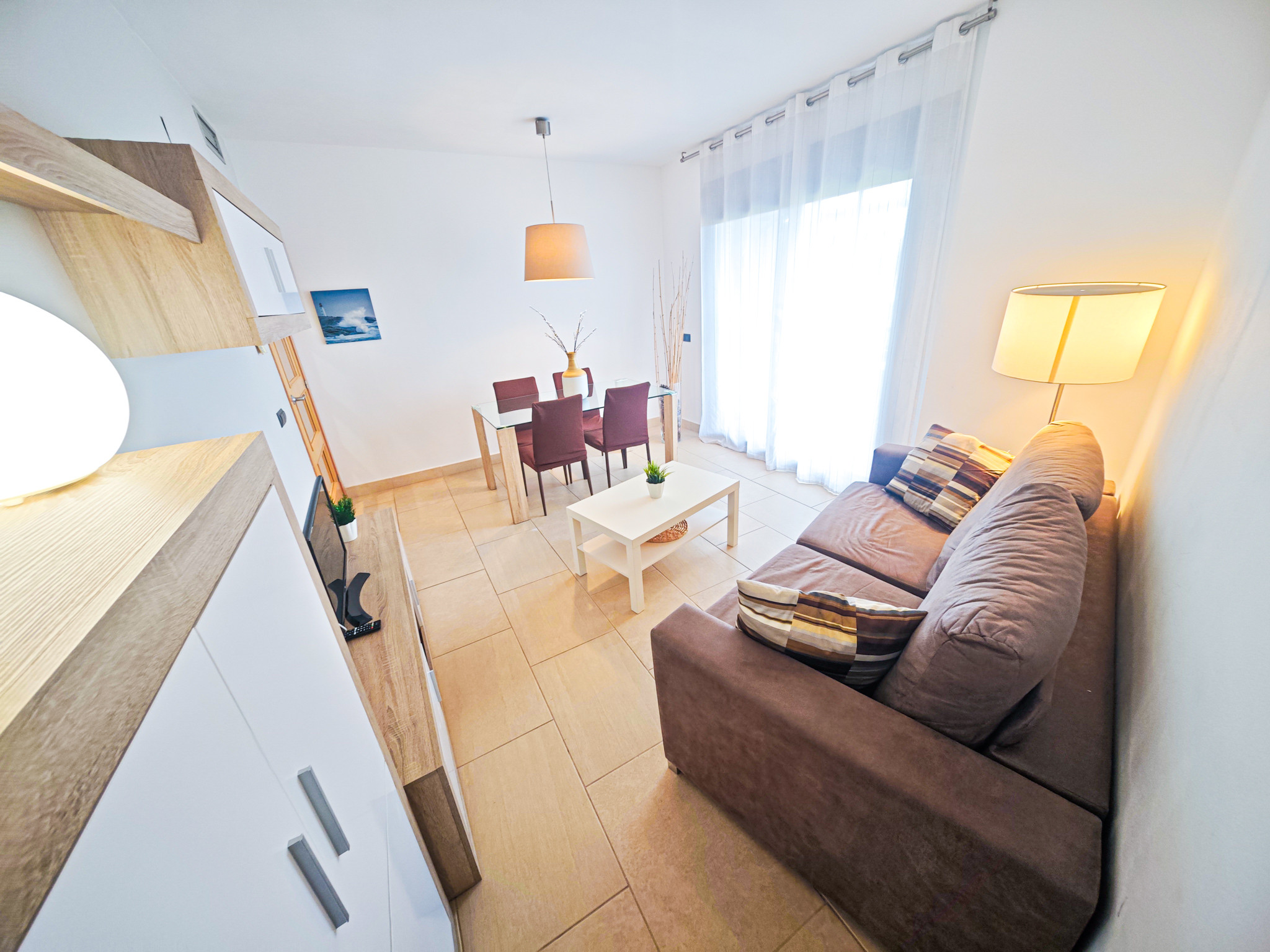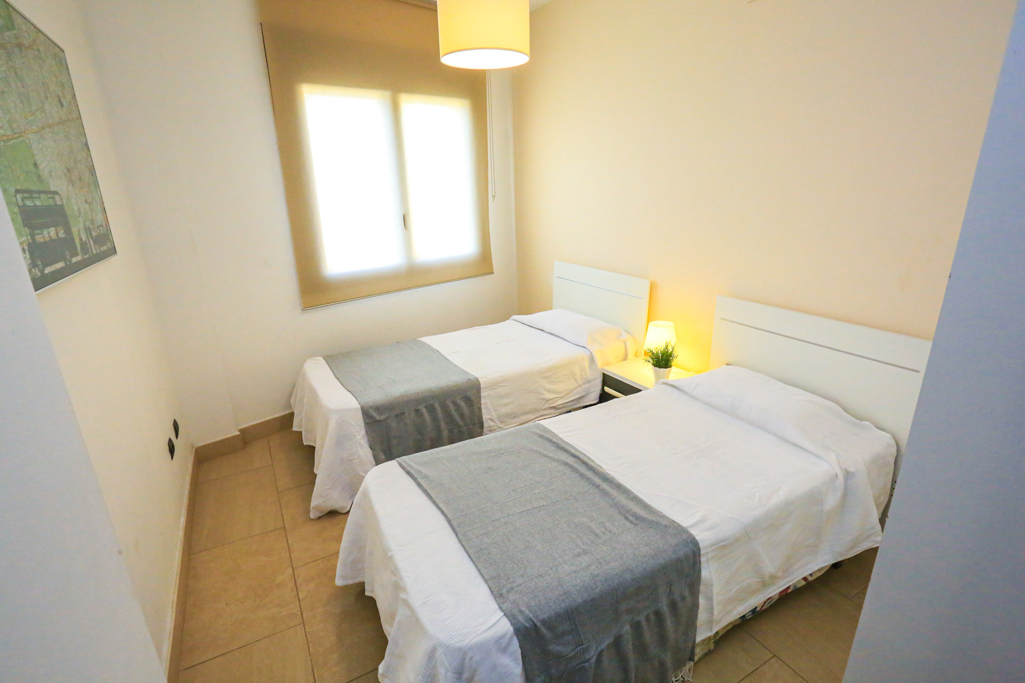 El apartamento TROPICANA BJS cuenta con dos dormitorios . Dispone de una habitación con cama matrimonial, otra con dos camas individuales y sofá cama en el salón. Un baño con bañera completa los espacios interiores.
