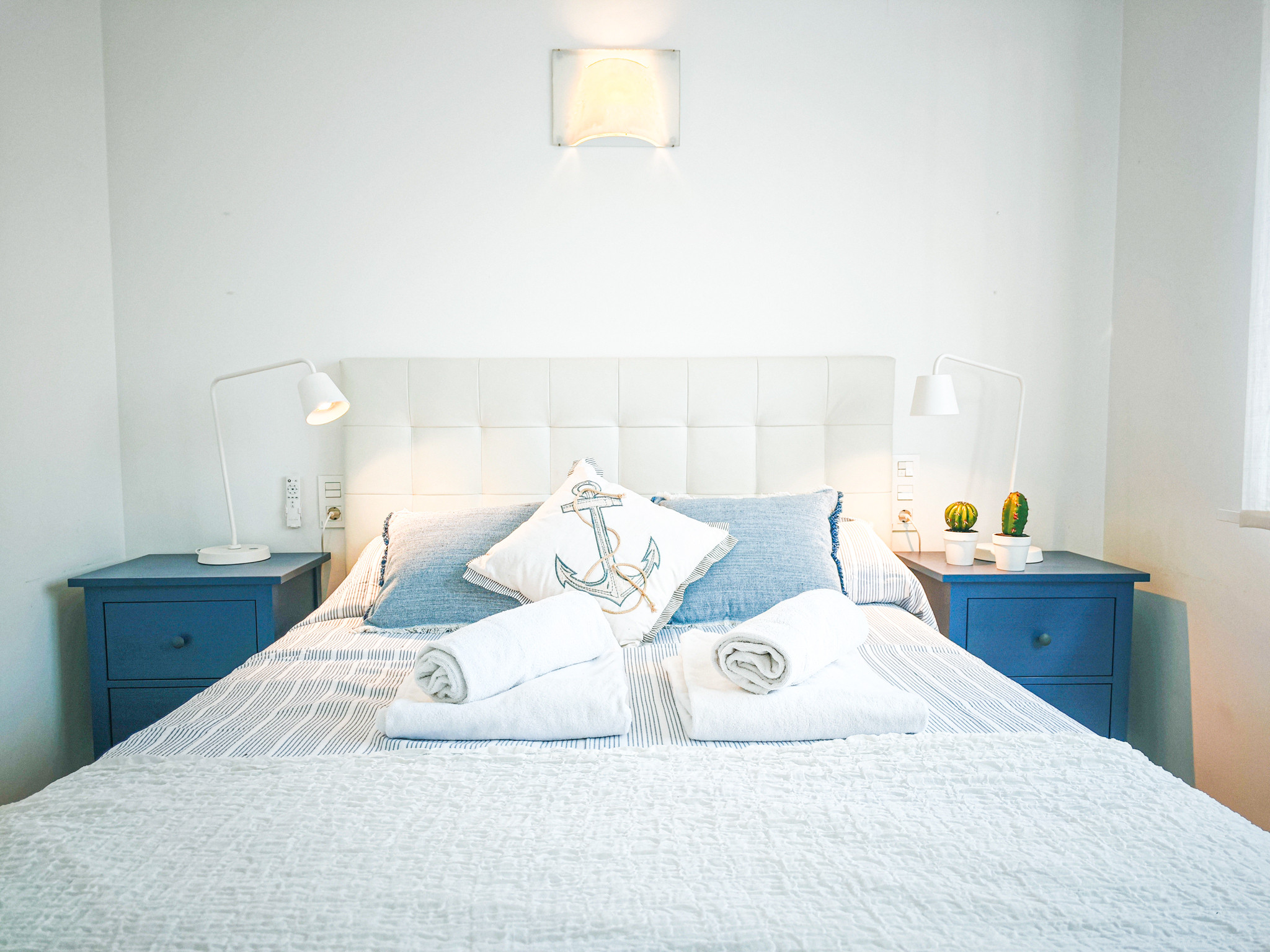 El apartamento cuenta con una habitación con una cama doble y dos camas individuales, permitiendo alojar cómodamente hasta 4 personas. Dispone de un baño completo con bañera, perfecto para relajarse después de un día de playa. La cocina americana está totalmente equipada con electrodomésticos modernos como nevera, congelador, lavadora, horno, microondas, cafetera y una amplia variedad de menaje.