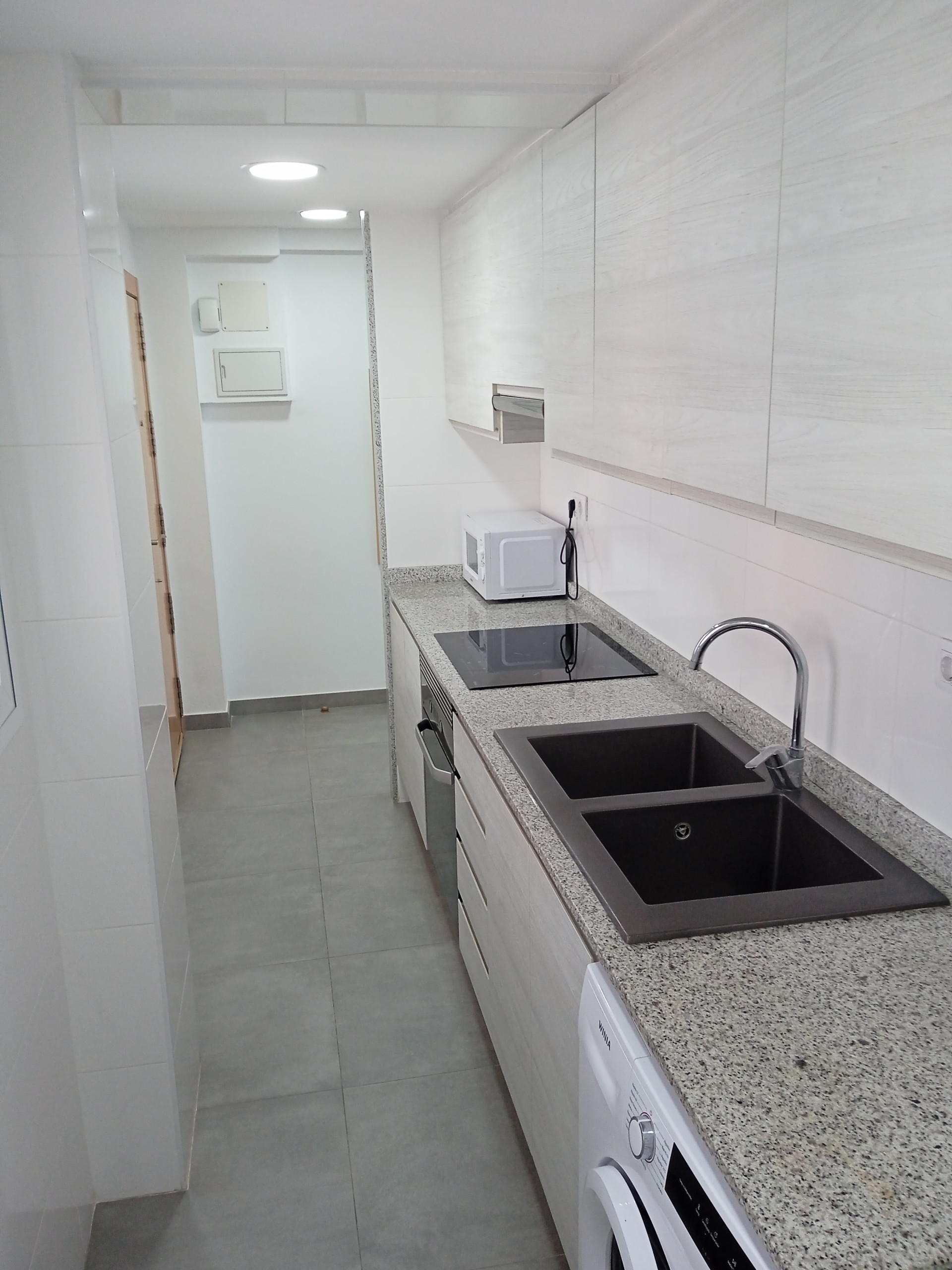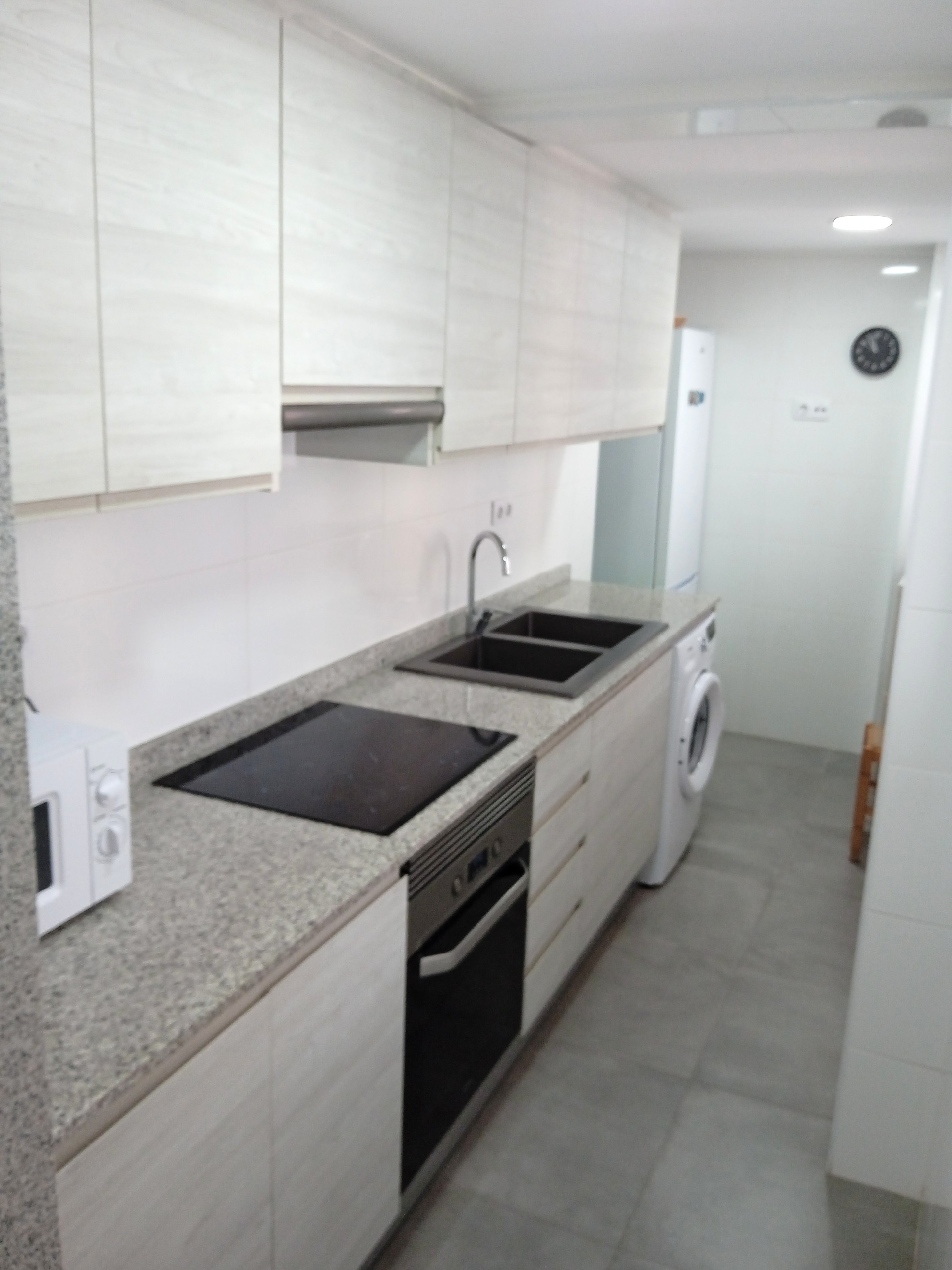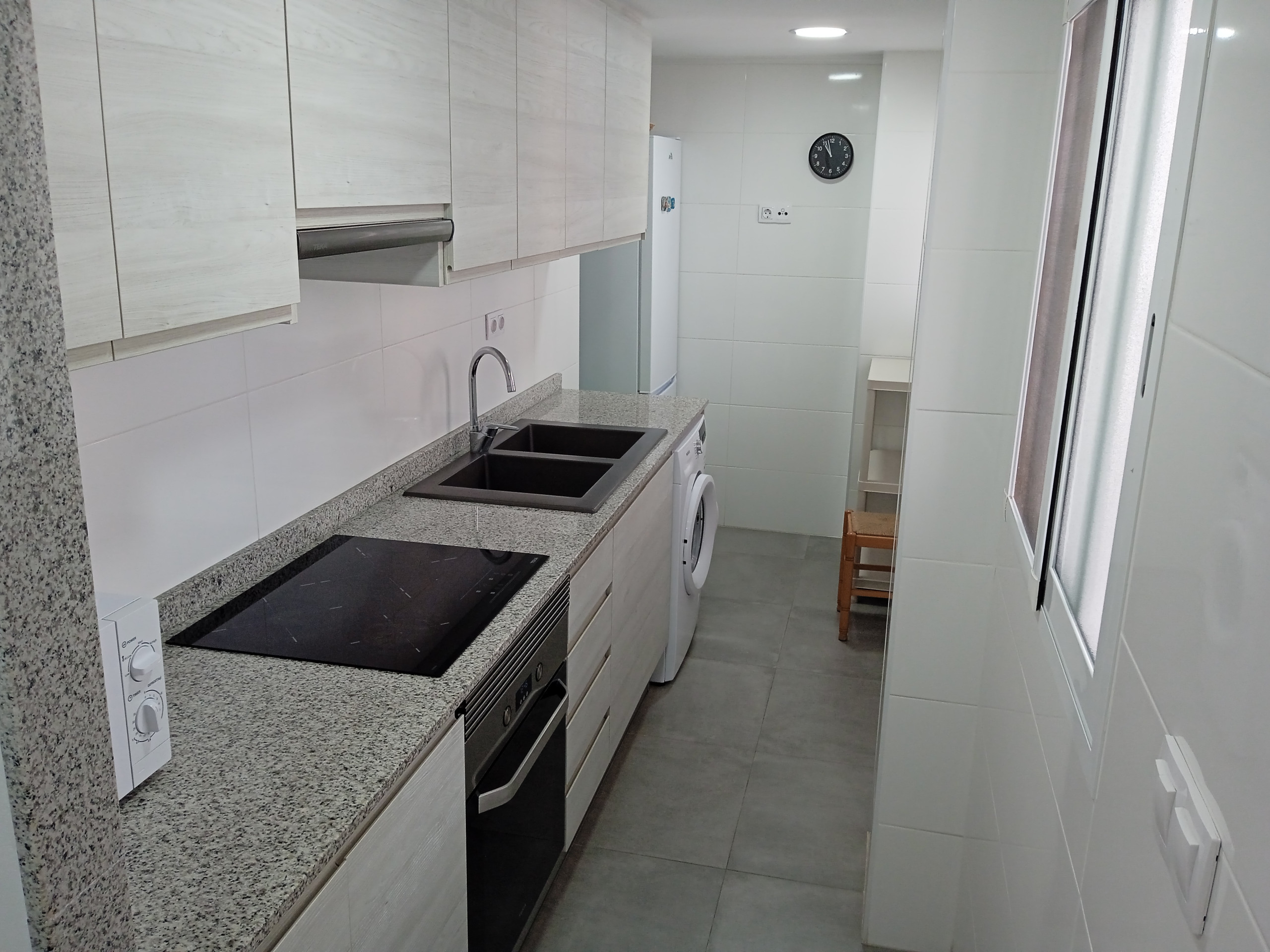 La cocina está completamente equipada con electrodomésticos modernos, incluyendo nevera, congelador, lavadora, horno, microondas, cafetera y menaje completo. Perfecto para preparar deliciosas comidas durante tu estancia. El salón cuenta con aire acondicionado para garantizar tu confort en los días más calurosos.