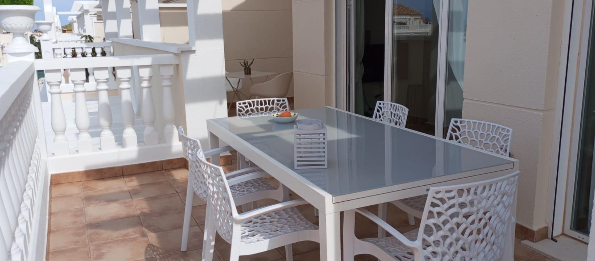 Dispone de jardín, mobiliario jardín, terraza, plancha, calefacción bomba de calor, aire acondicionado en salón y algunos dormitorios, piscina comunitaria + infantil, parking aire libre en mismo edificio, Televisión, TV satélite (Idiomas: Español, Inglés ).