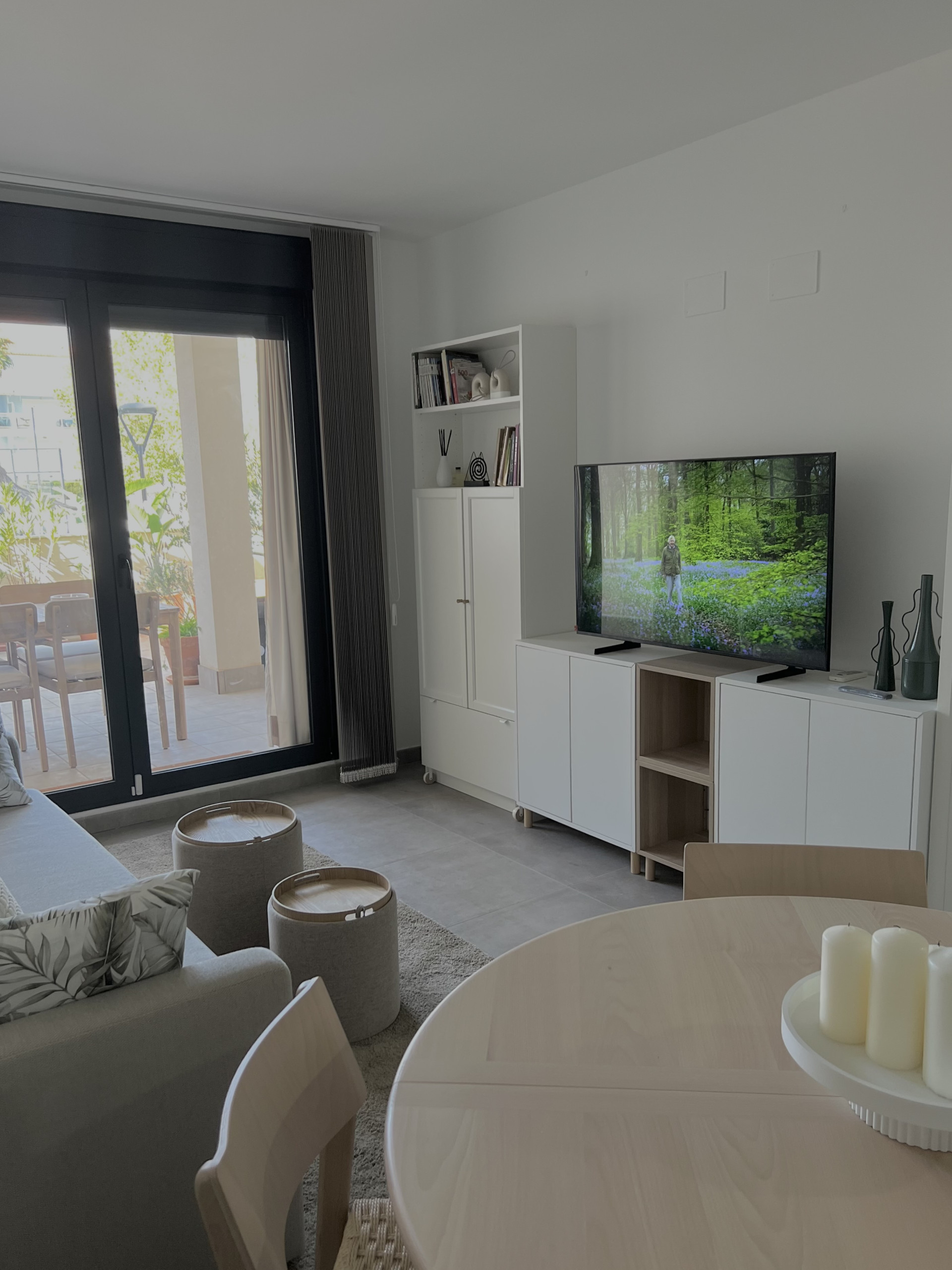 Dispone de jardín, mobiliario jardín, terraza, plancha, acceso internet (wifi), calefacción bomba de calor, aire acondicionado solo en salón, piscina comunitaria+infantil, parking aire libre en mismo edificio, Televisión, tv satelite (Idiomas: Español, Inglés).