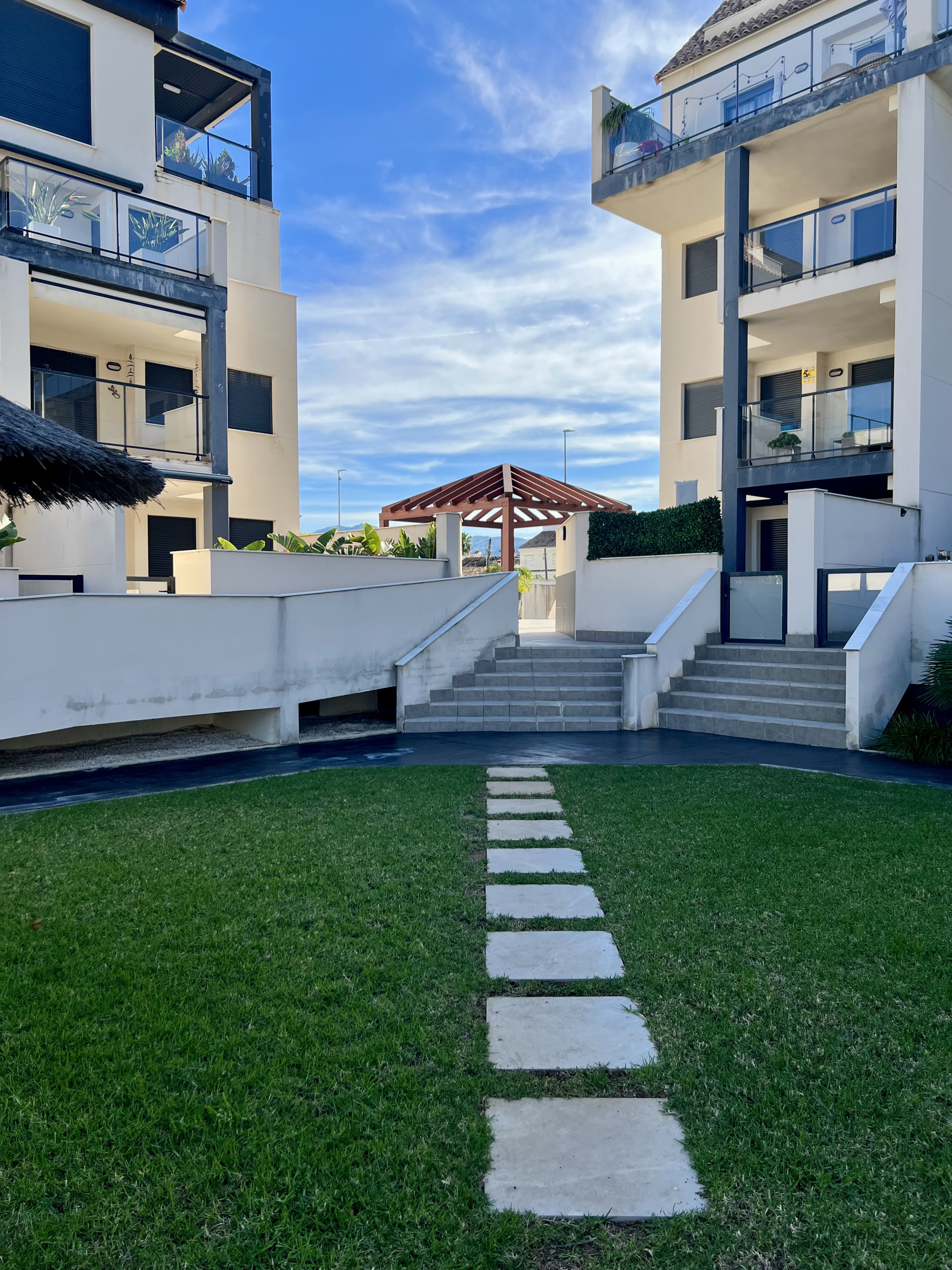Dispone de ascensor, jardín, terraza, lavadora, plancha, acceso internet (wifi), pista de padel, aire acondicionado, piscina comunitaria, parking cubierto en mismo edificio.
