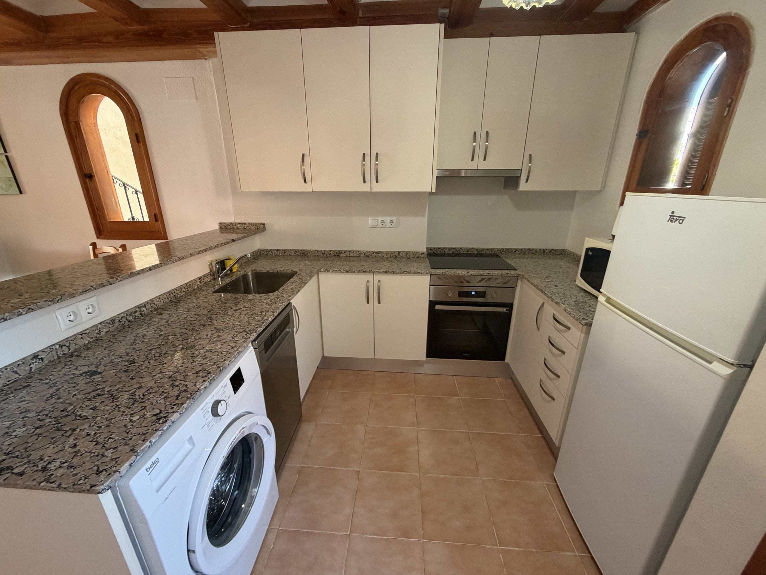 La cocina americana, de gas, está equipada con nevera, horno, lavadora, vajilla/cubertería, utensilios/cocina y cafetera.