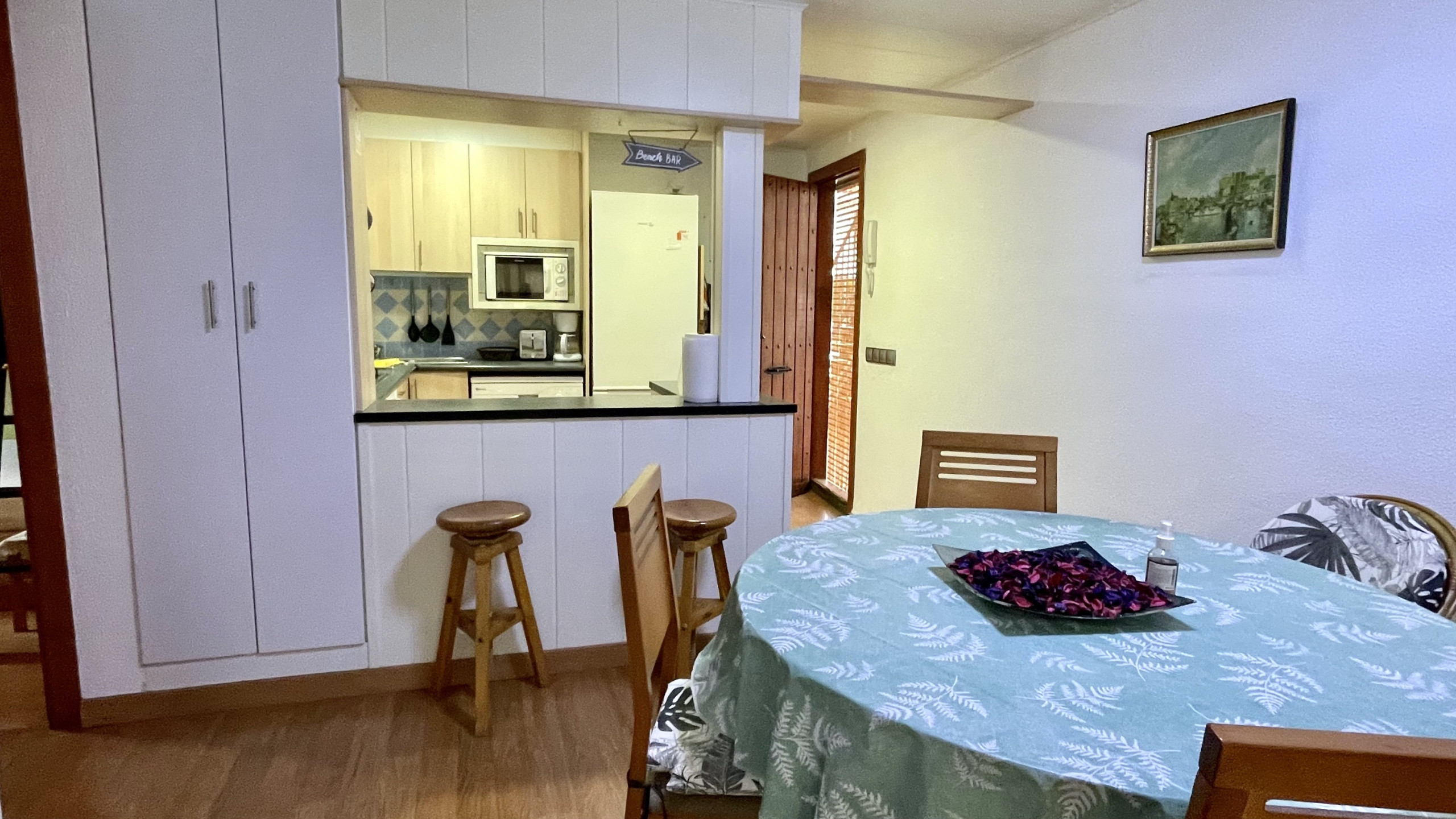 Situado en una zona residencial junto al mar, este apartamento ofrece ascensor, terraza de 5 m² con vista a la calle, plancha, piscina comunitaria + infantil, parking aire libre en el mismo edificio para 1 coche, 2 ventiladores y 1 TV para tu disfrute.