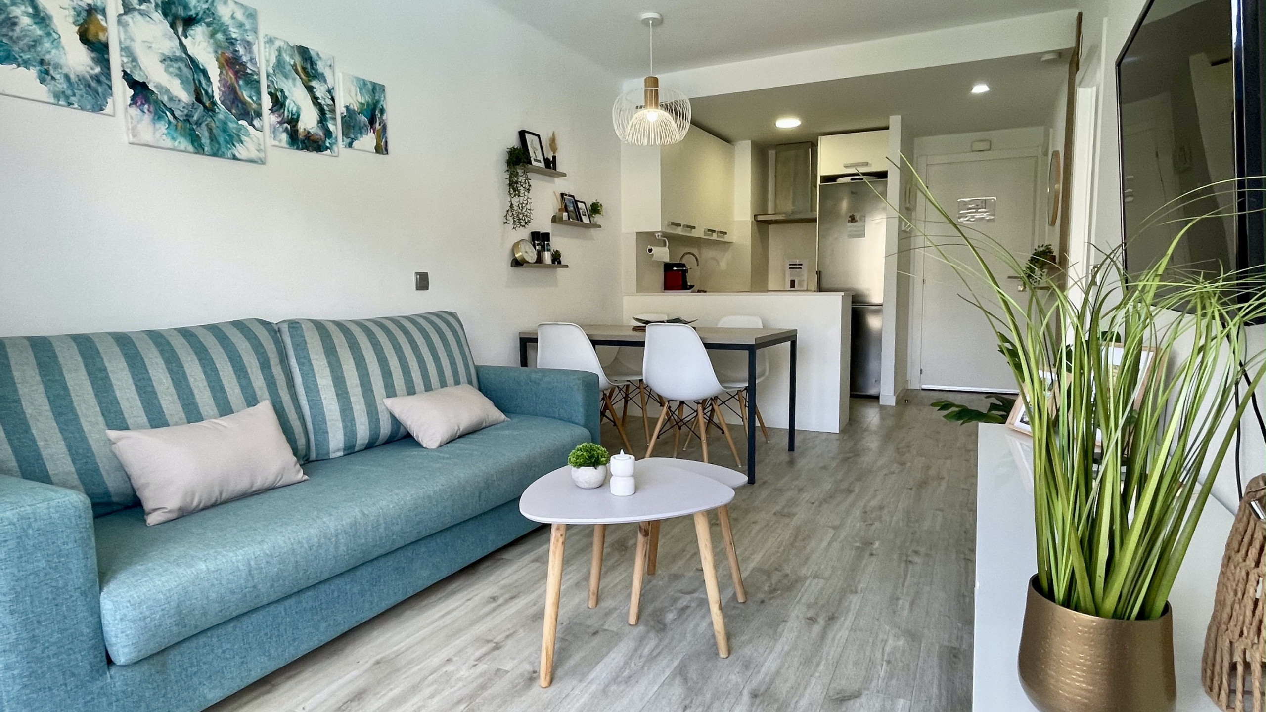 Descubre un acogedor refugio en el corazón de Estartit, perfecto para parejas que buscan una escapada romántica. Este moderno y acogedor apartamento de 34 metros cuadrados ofrece un espacio íntimo y funcional diseñado para un máximo de 4 personas.