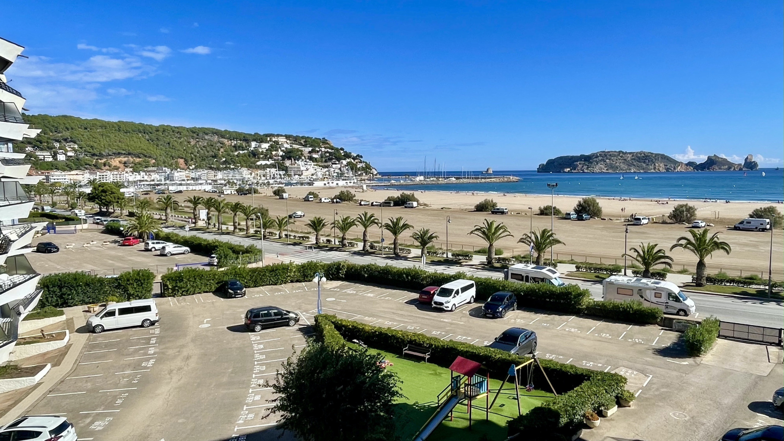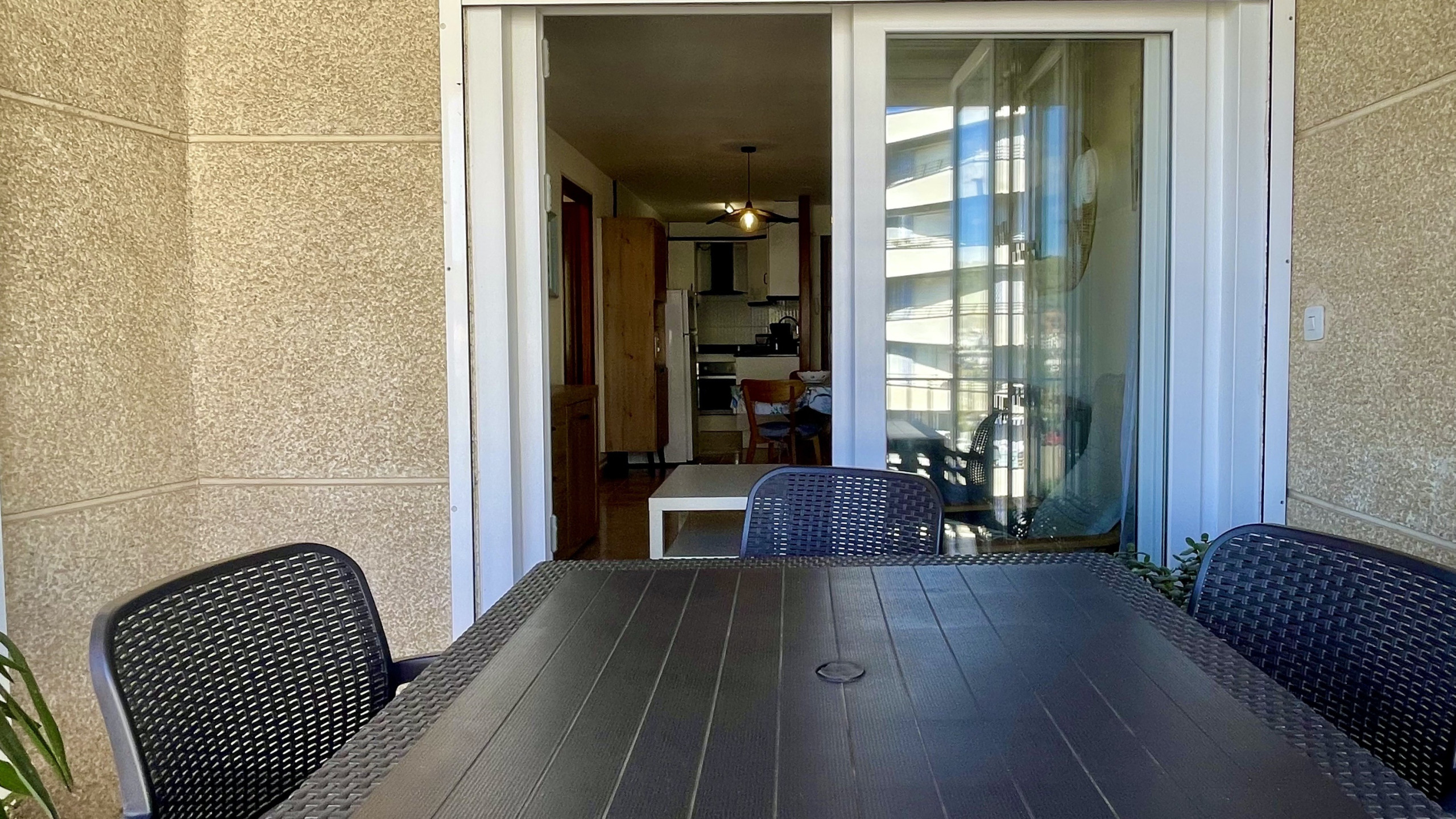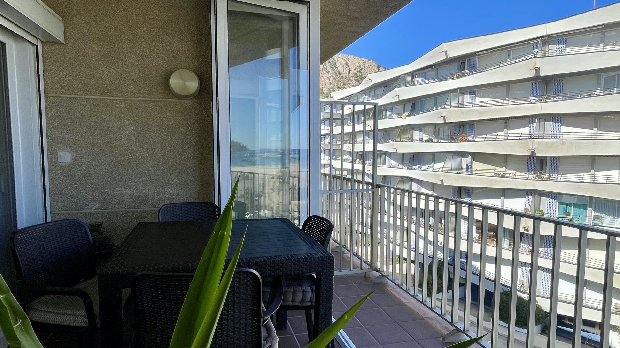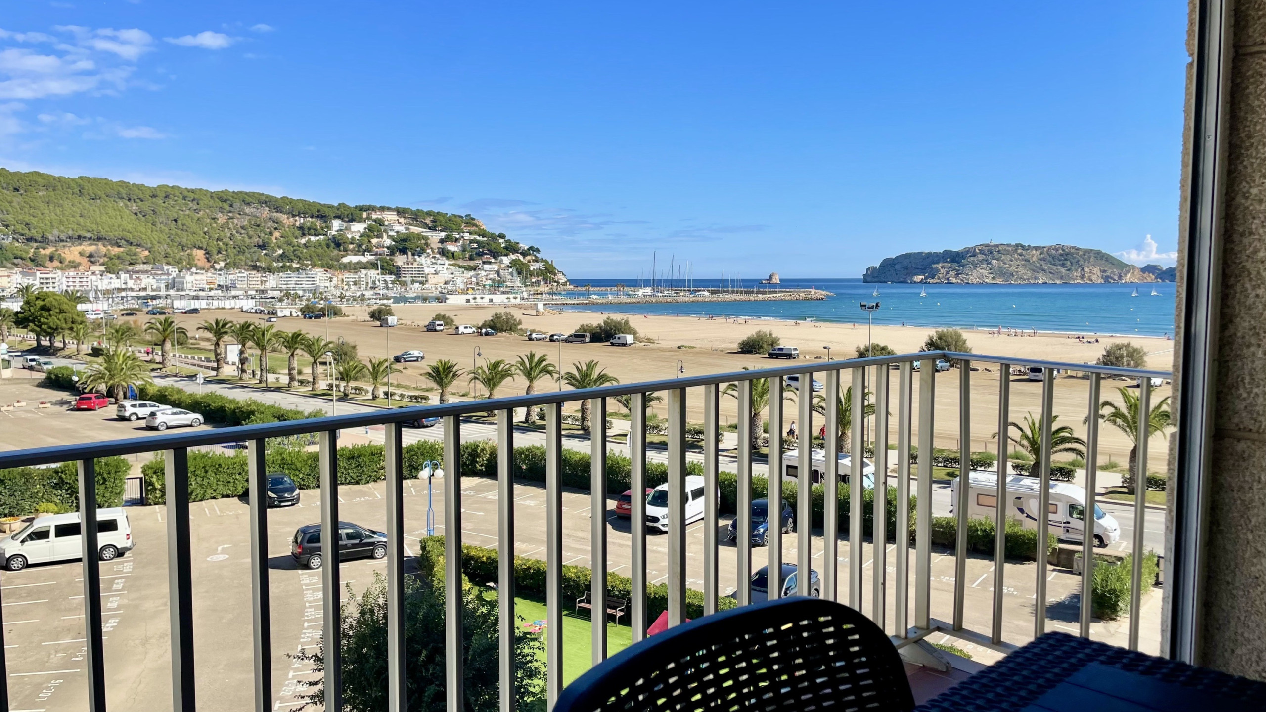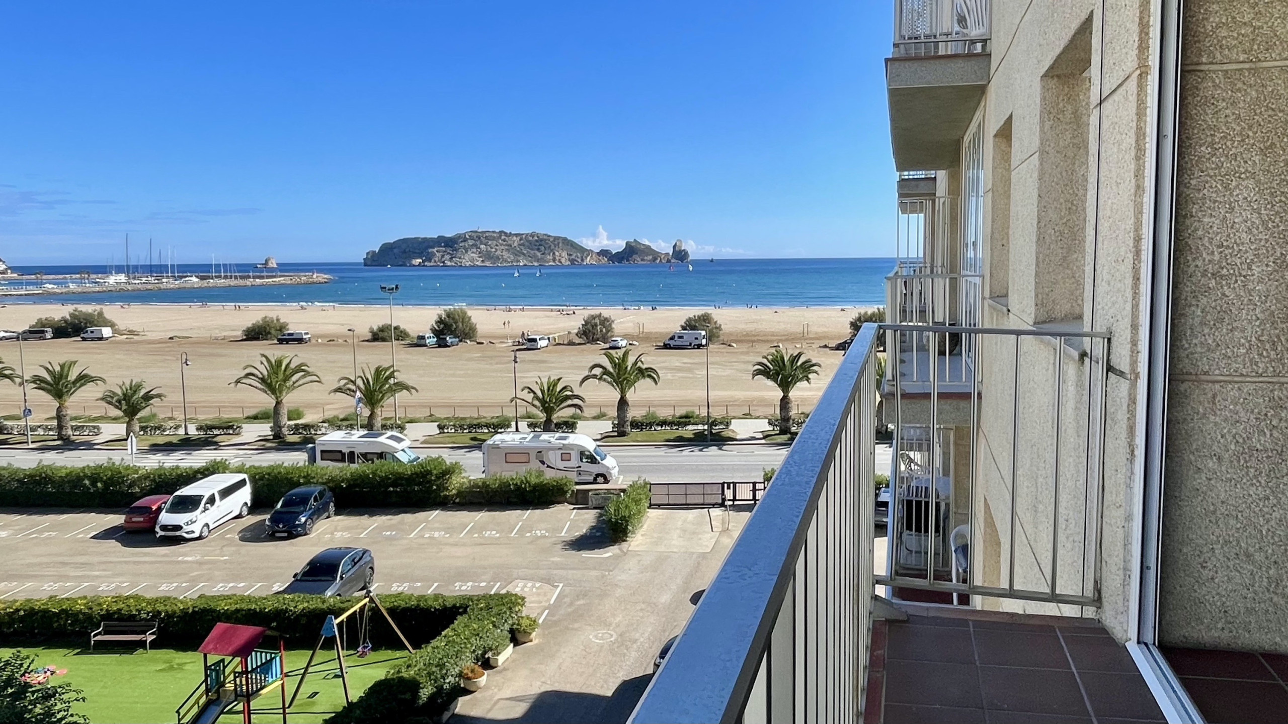 El apartamento tiene una gran terraza con una inmejorable vista del todo el complejo Rocamaura, con la piscina a tus pies y las Islas Medes de fondo.