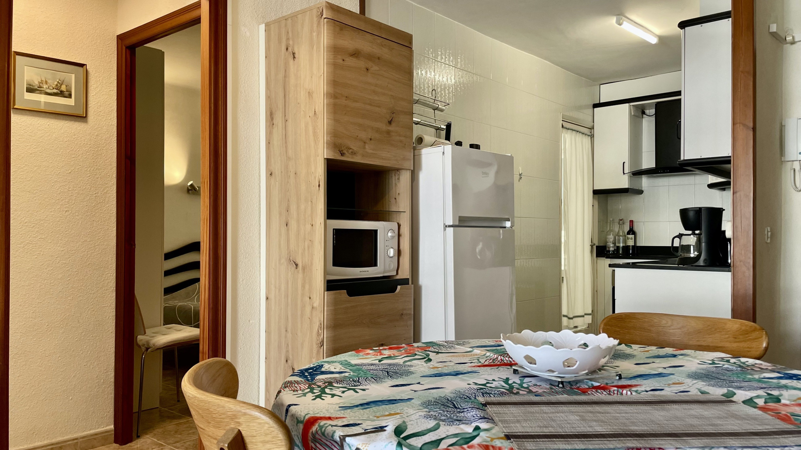 En el complejo Rocamaura se alquila para las vacaciones este apartamento de 1 dormitorio con una litera doble y una cama individual con capacidad para 3 personas.Salón comedor con sofà y TV, pequeña cocina independiente y baño con ducha.
