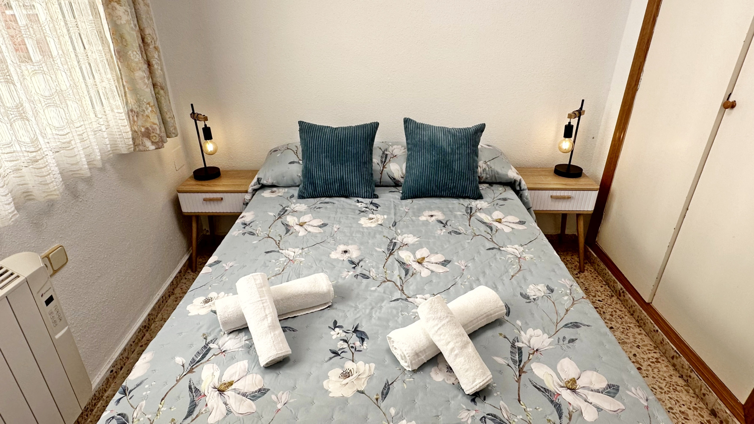 Equipado con: TV, lavadora, vitrocerámica, frigorífico, microondas, tostador, plancha, tabla de planchar, sábanas, toallas de lavabo y de ducha ( NO DE PLAYA ), vajilla y menaje de cocina.