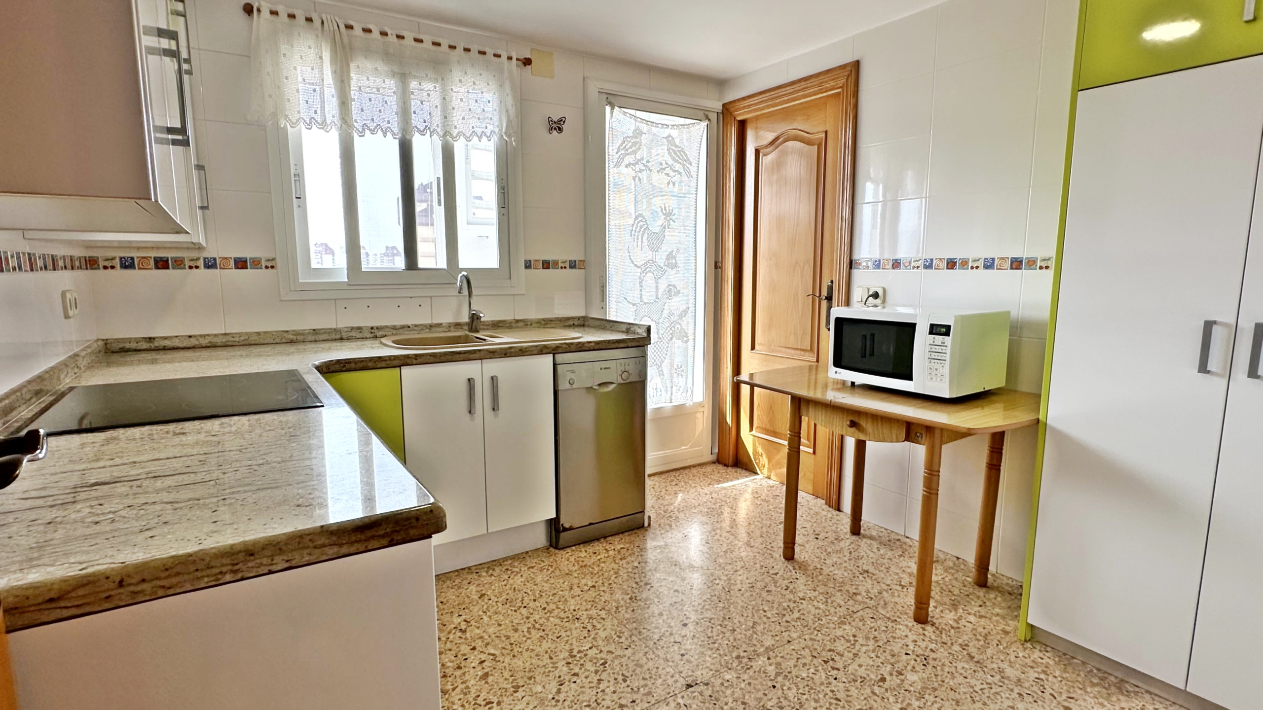 EQUIPADO CON: TV, Lavadora, frigorífico, Lavavajillas, microondas, horno, tostador, plancha y tabla de planchar.
