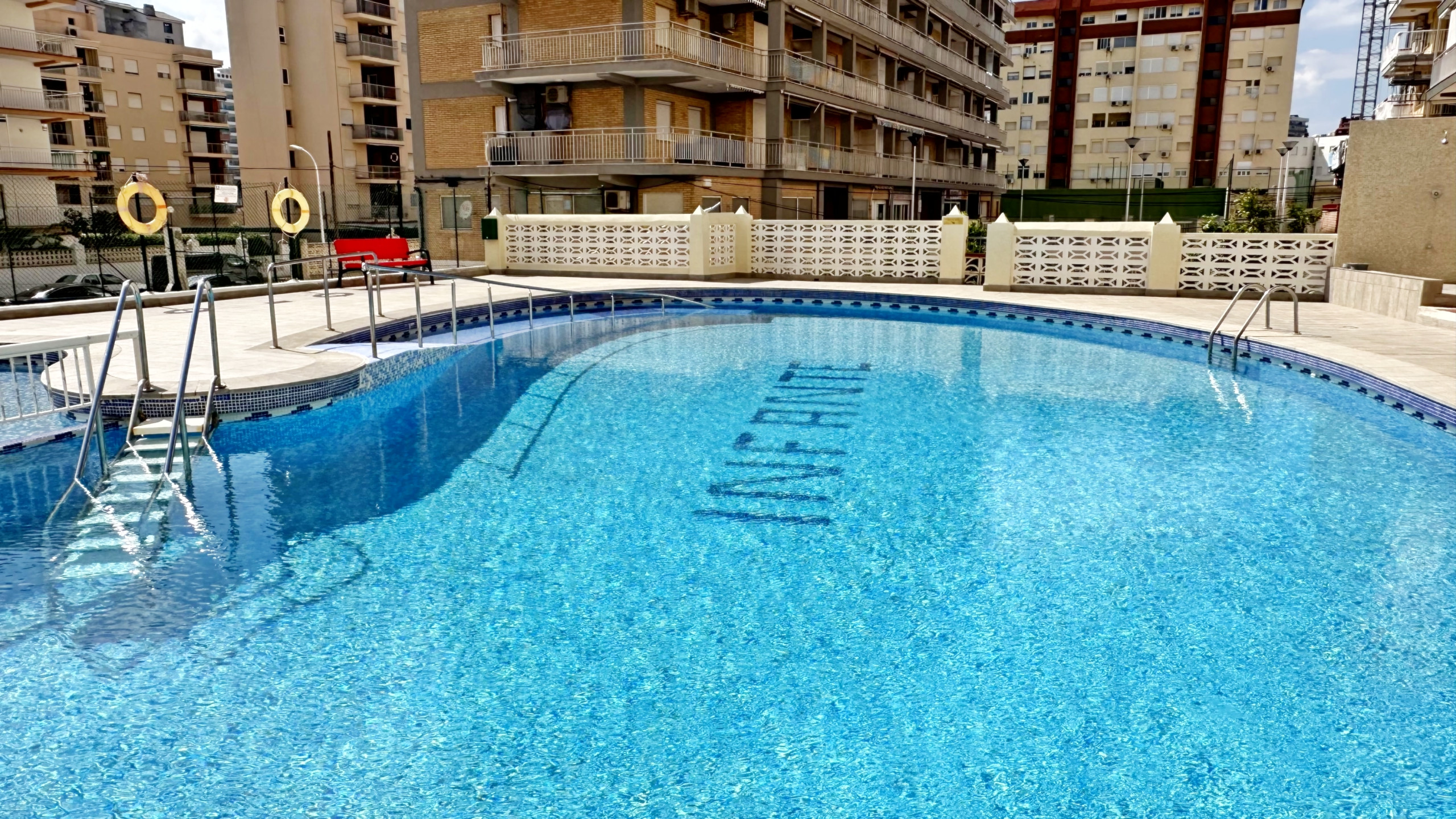 Apartamento en primera línea de playa con vistas frontales, 3 dormitorios, piscina, 2 pistas de tenis y pádel . Situado en la zona centro de Gandia, en Passeig Marítim Neptú