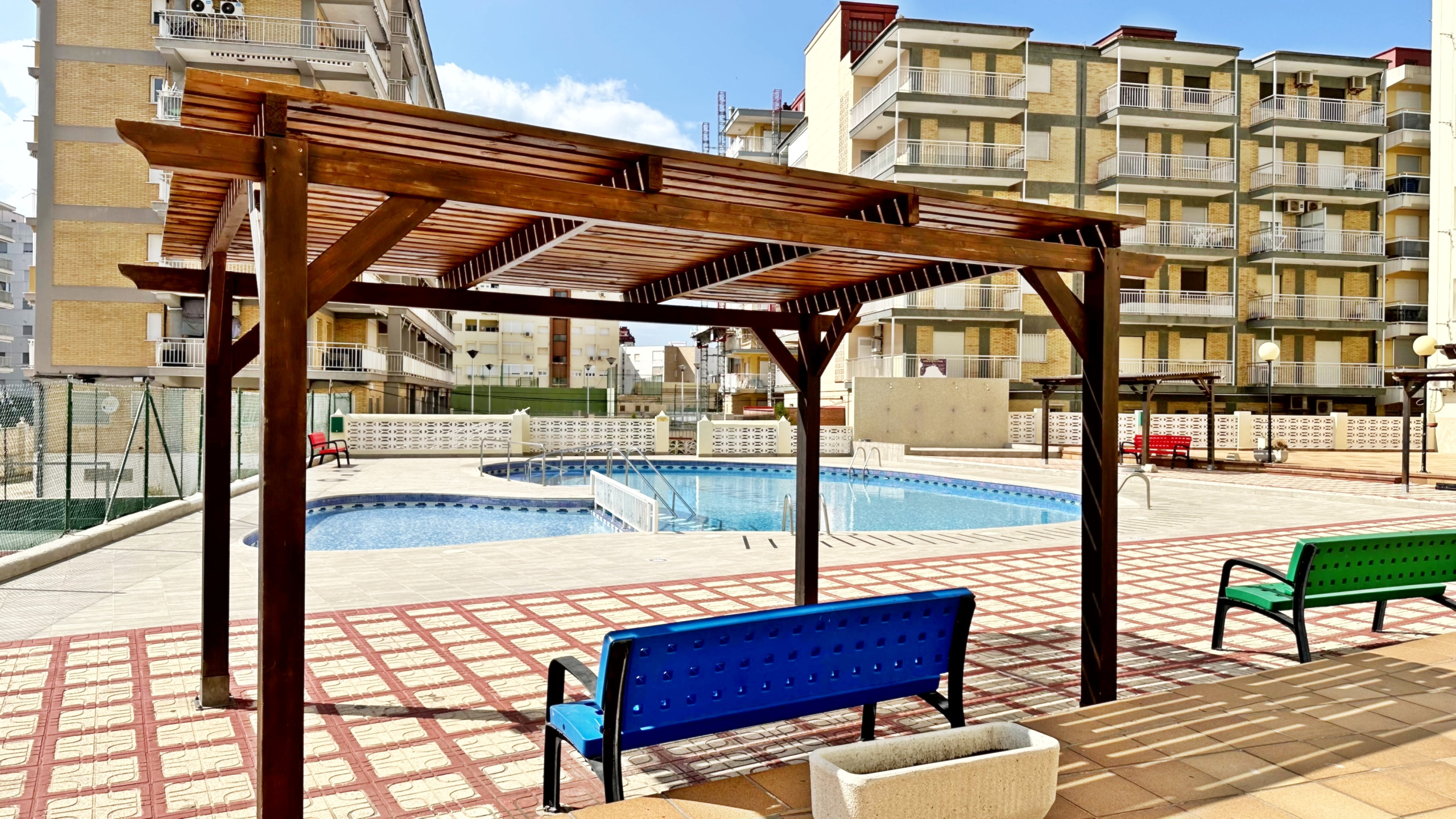 Piscina grande + piscina infantil y cancha de tenis