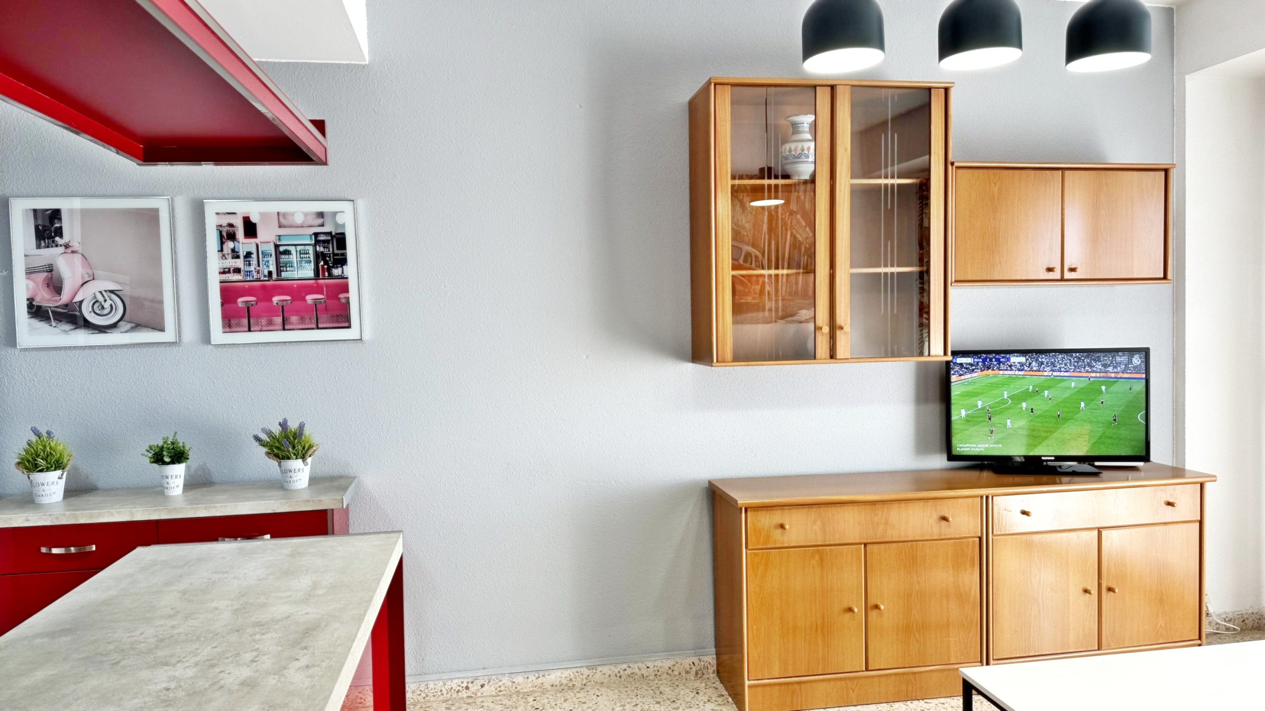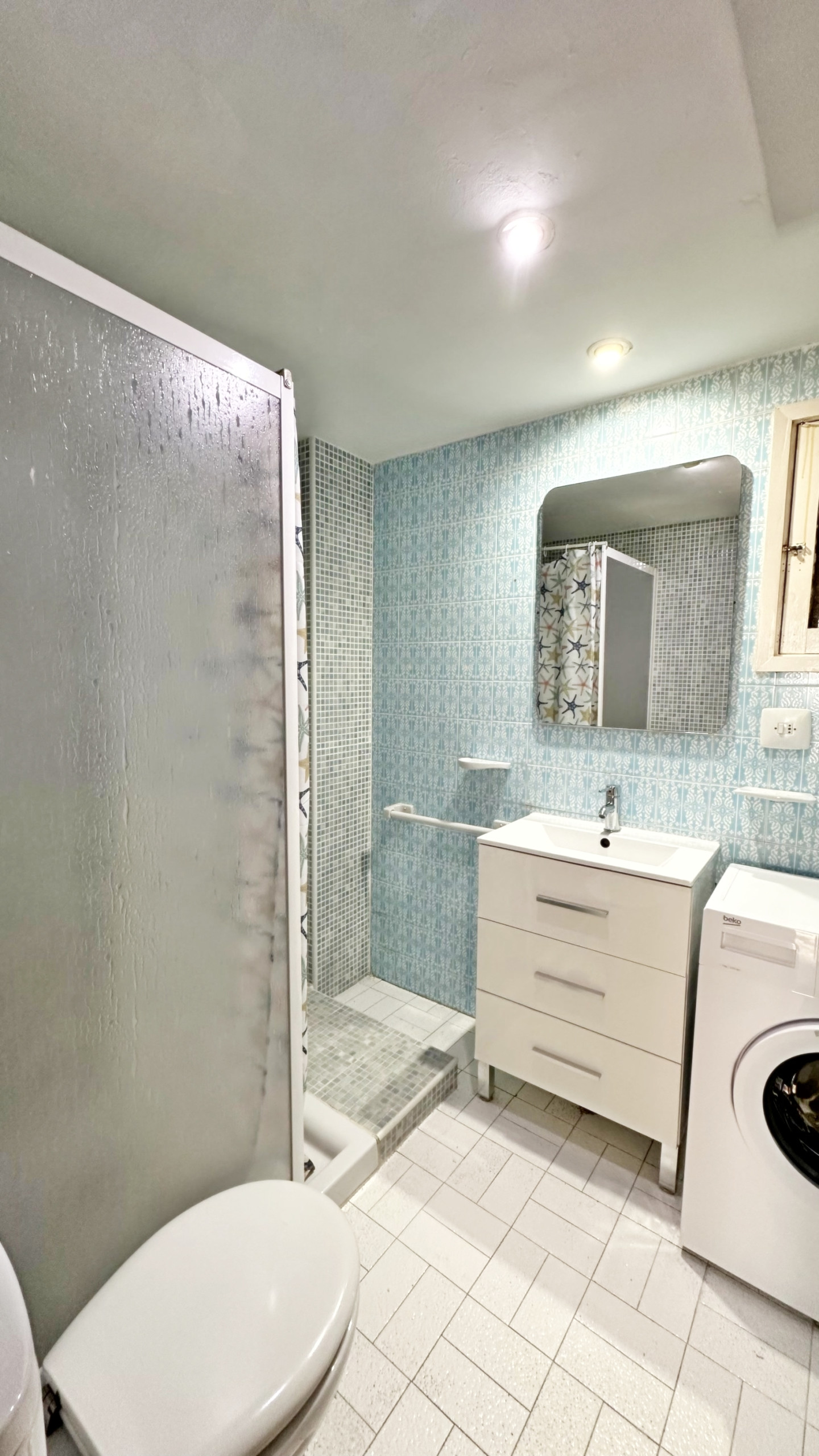 Equipado con: TV plana de 32, lavadora, frigorífico, microondas, tostador, plancha, tabla de planchar, sábanas, toallas de lavabo y de ducha, vajilla y menaje de cocina