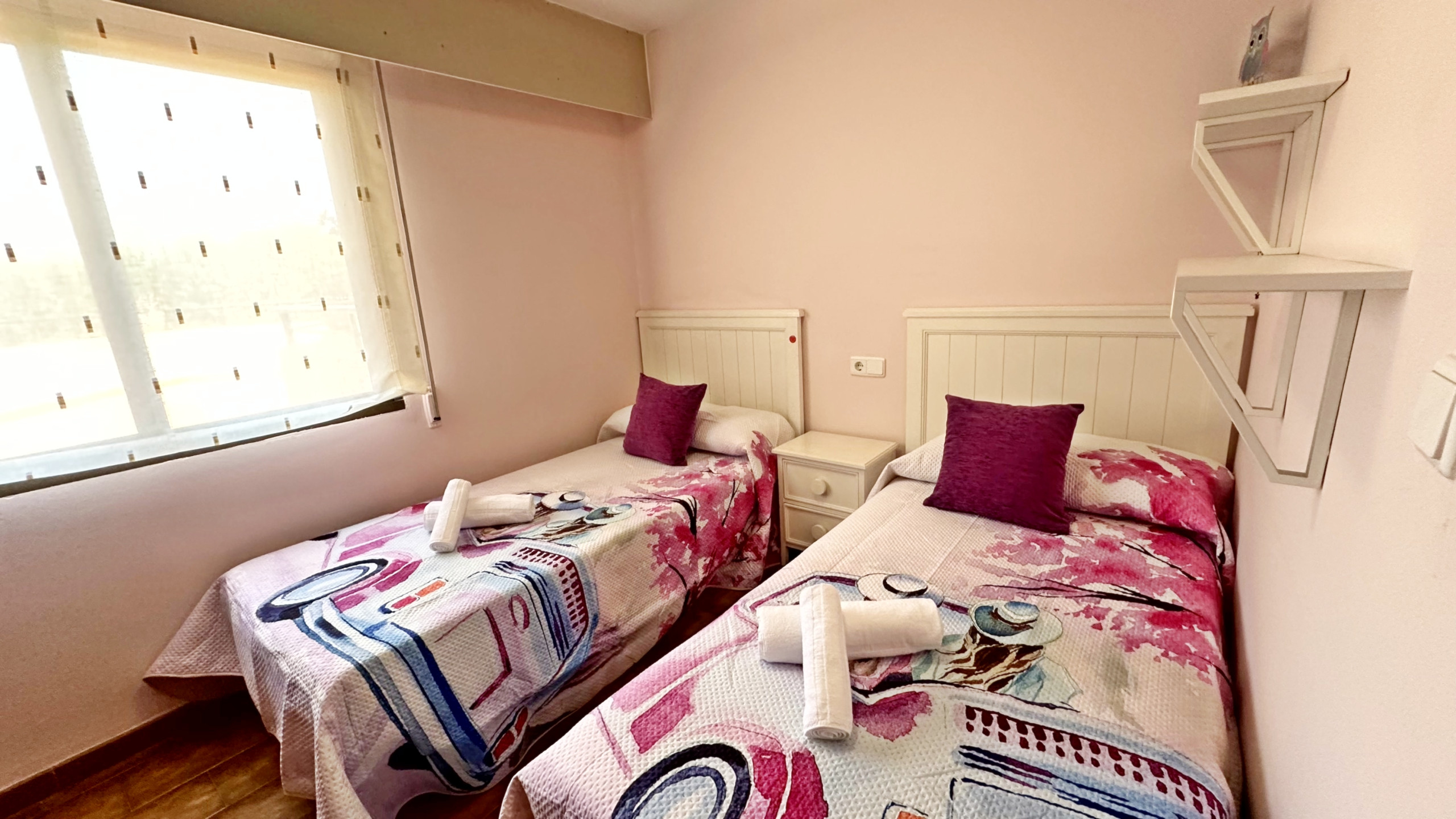 CONSTA DE: de 3 dormitorios, ( 1 dormitorio con cama de matrimonio, 1 dormitorio con 2 camas individuales y 1 dormitorio con una litera y una cama individual. ), amplio salón comedor, cocina independiente totalmente equipada, 1 cuarto de baño completo con ducha y un aseo, y 2 terraza.