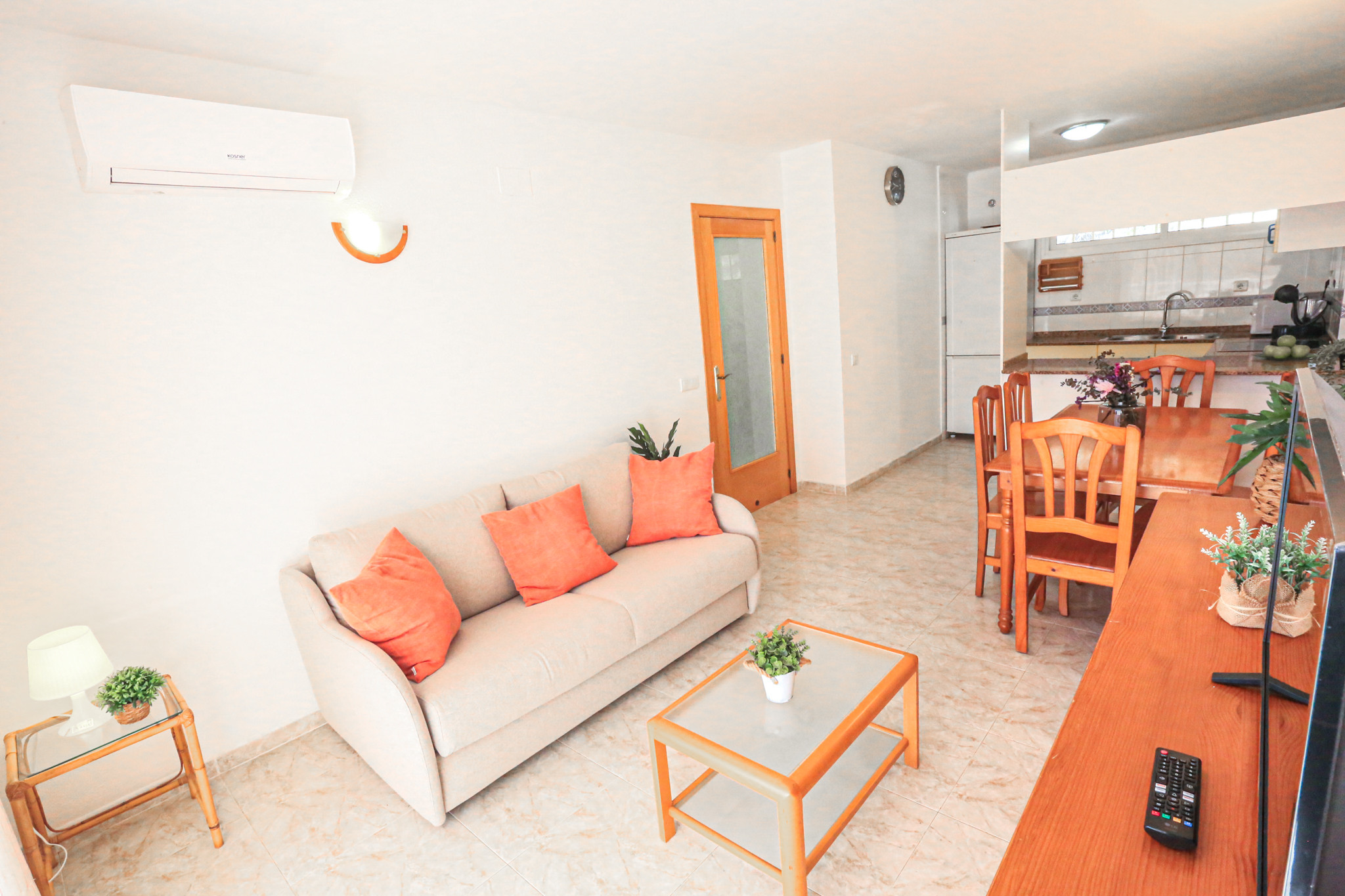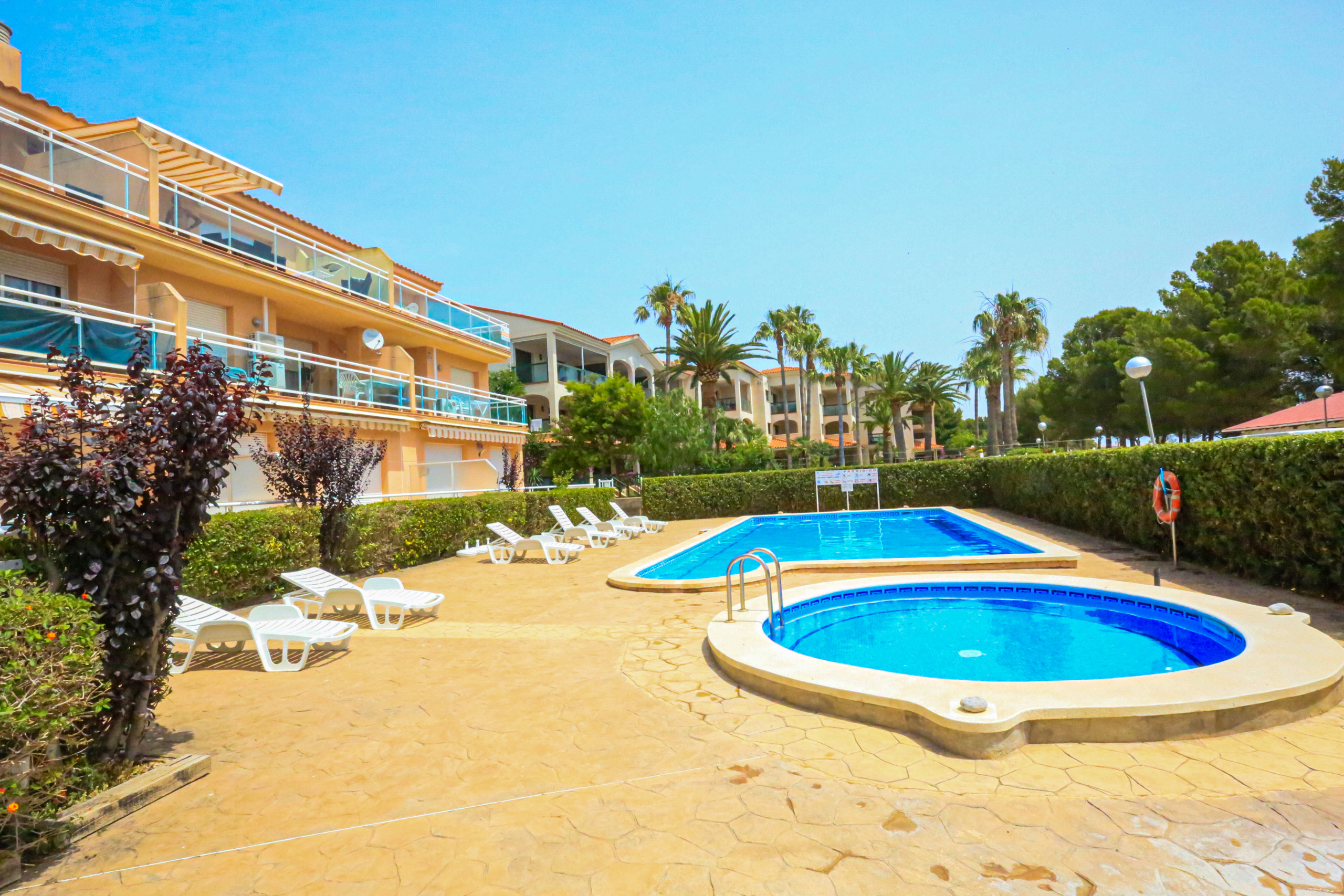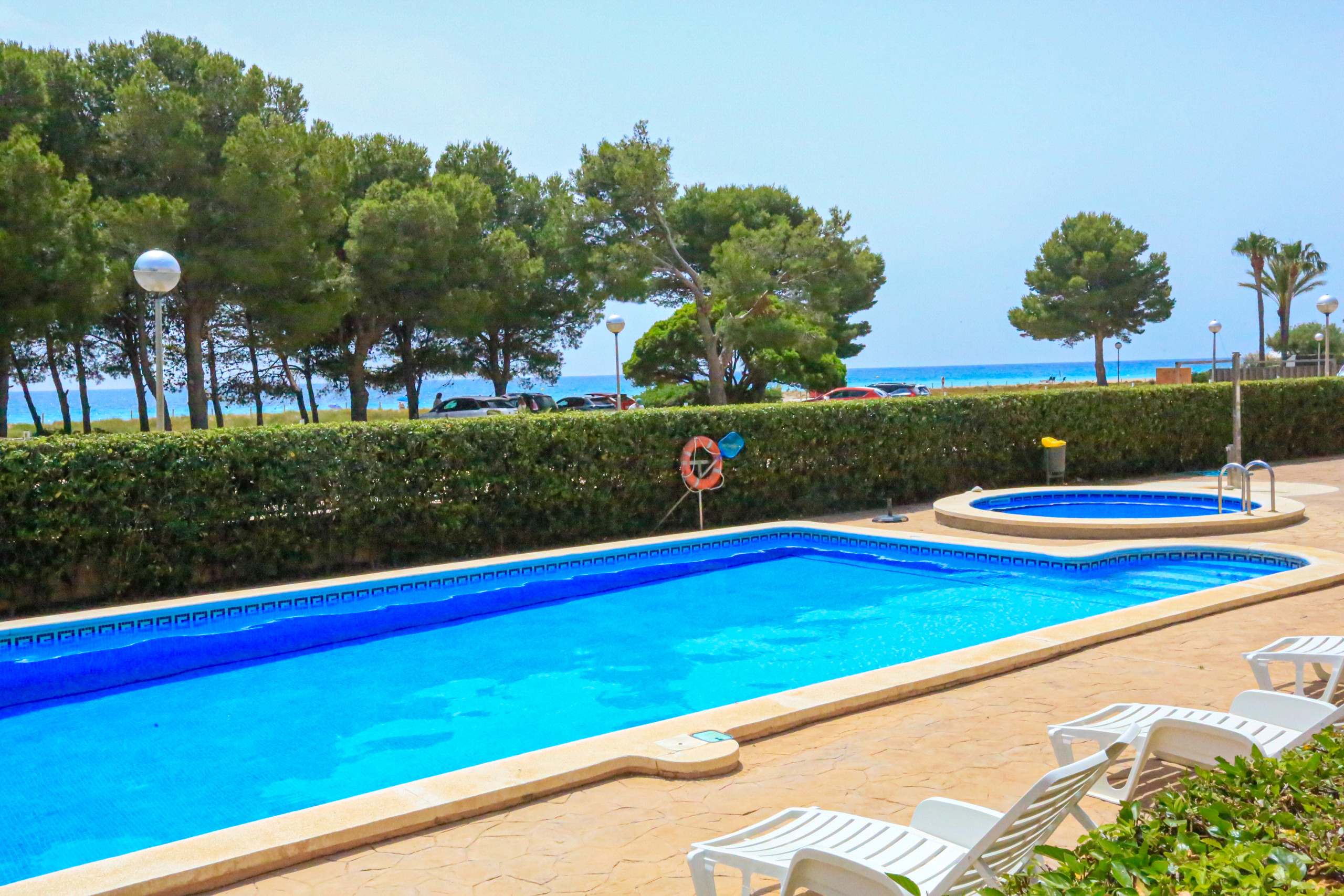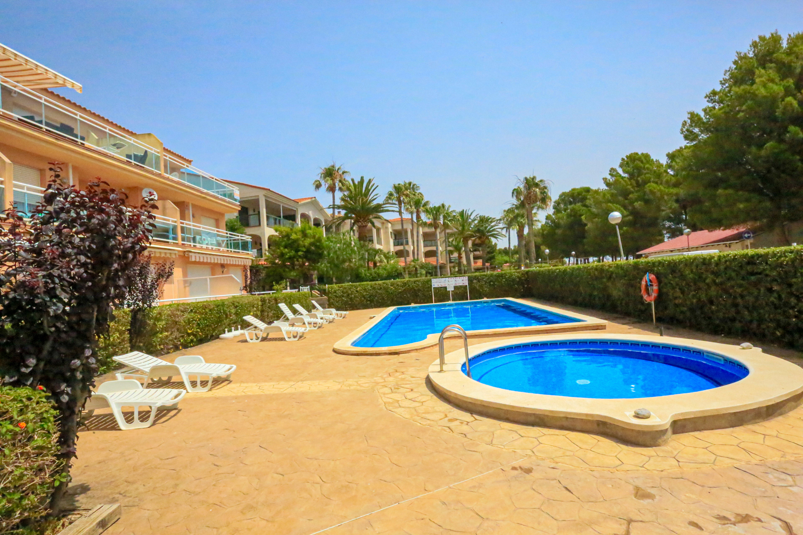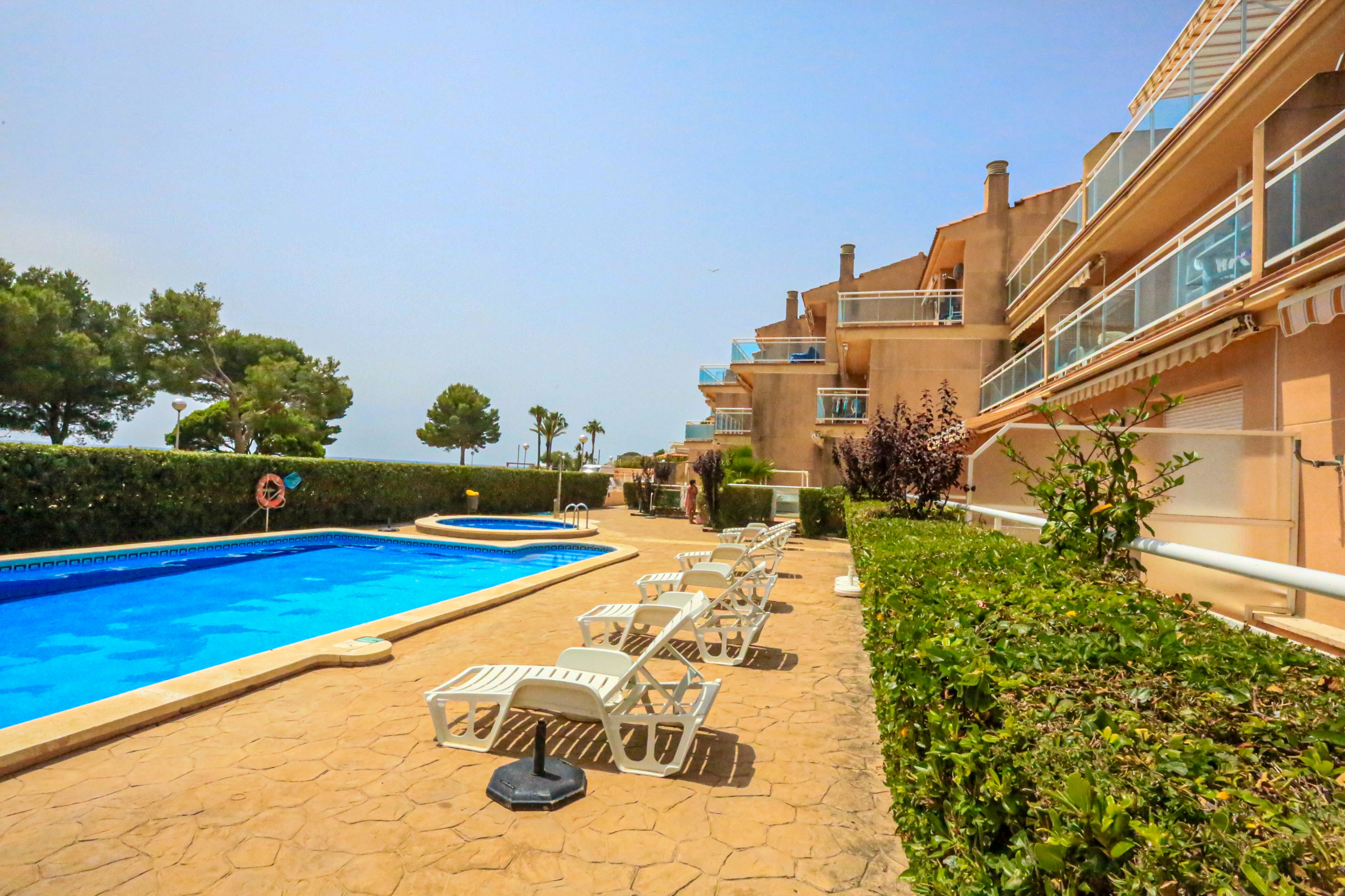 Apartamento a pie de la playa del Arenal en Hospitalet de l´Infant, a tan solo 1 km del centro del pueblo y en una privilegada primerisima linea de mar.El apartamento posee 2 dormitorios y tiene una capacidad para 6 personas. Alojamiento acogedor y exterior, tiene unas impresionantes vistas al mar Mediterraneo y se situa delante de una larguisima playa de arena que llega hasta el pueblo de Hospitalet. Está ubicado en una zona ideal para familias y junto al mar. Dispone de gran terraza, mobiliario terraza, piscina comunitaria+infantil. La cocina americana, eléctrica, está equipada con nevera, horno, congelador, lavadora, vajilla/cuberteria, utensilios/cocina, cafetera.