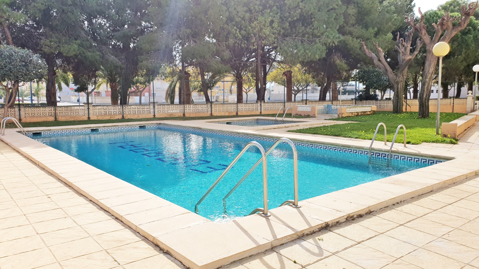 Dispone de ascensor, jardín, parcela vallada, terraza, plancha, balcón, zona infantil, piscina comunitaria+infantil, 1 Televisor.