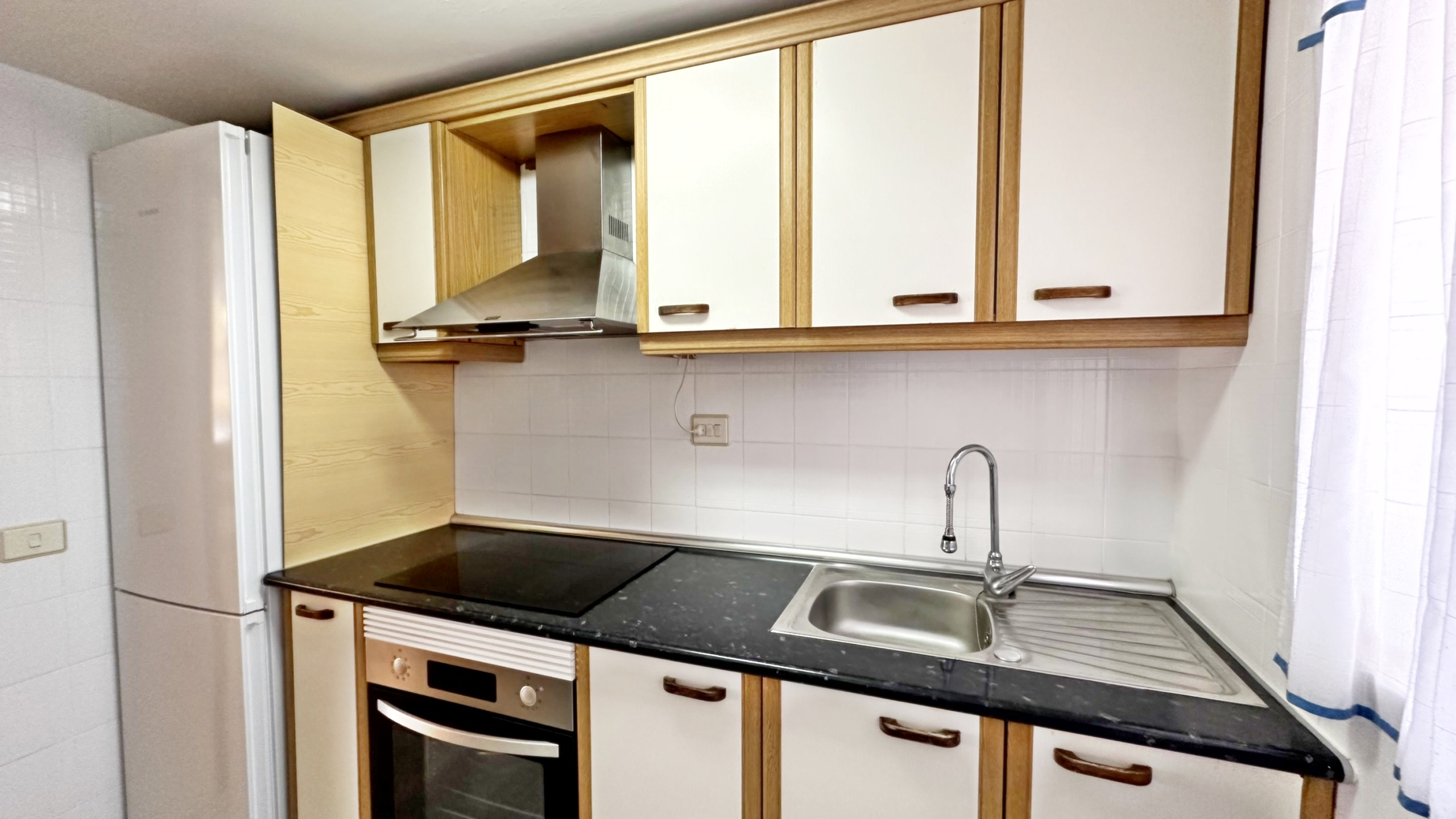 EQUIPADO CON: TV de pantalla plana, Lavadora, frigorífico, microondas, horno, VITRO, tostador, plancha y tabla de planchar.