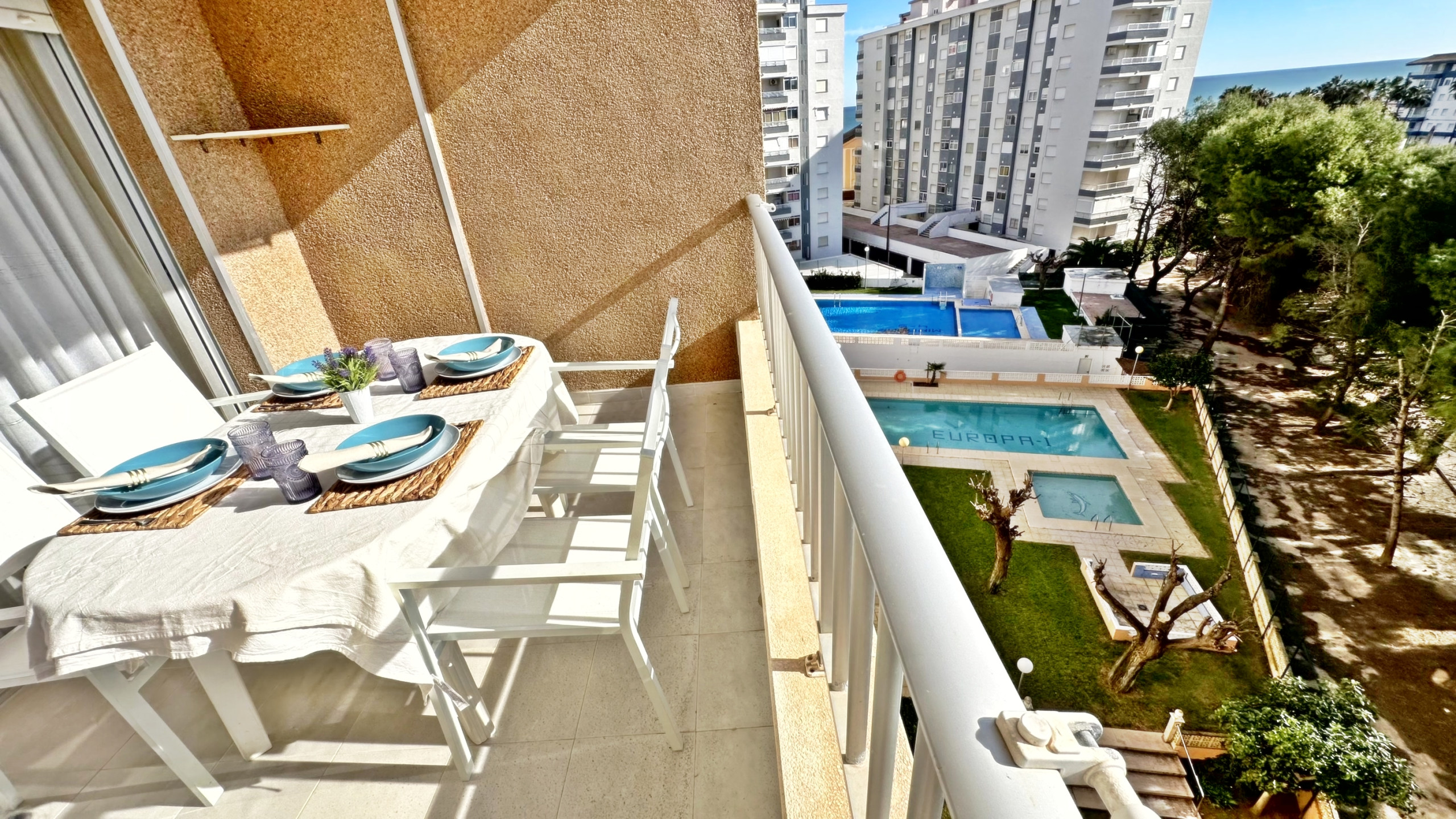 Los apartamentos EUROPA I, se encuentran en el centro de la playa de Miramar y a escasos 200 metros de la playa. Es una zona muy tranquila y familiar rodeada de zonas verdes y jardines con todos los servicios necesarios para pasar unas agradables vacaciones.
