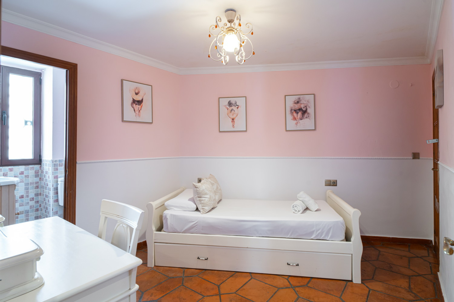 Villa Sandra Luxury Suite es uno de los cuatro lujosos apartamentos que componen el complejo de alquiler vacacional Villa Sandra Casasol, situado en Nerja. Esta espaciosa y moderna unidad es perfecta para familias, parejas y grupos de amigos. La Suite de Lujo dispone de dos confortables dormitorios, uno con cama de matrimonio y otro con dos camas individuales, dos cuartos de baño, uno de ellos en suite. El piso también dispone de una cocina totalmente equipada con electrodomésticos de última generación, una zona de estar y comedor y una terraza privada, ideal para disfrutar de la brisa mediterránea. El piso está decorado con gusto y elegancia, con aire acondicionado, TV de pantalla plana y WiFi gratuito.