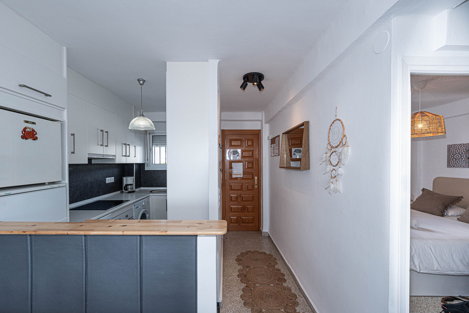 Acogedor apartamento de 2 dormitorios en la zona de Carabeo en Nerja, perfecto para parejas y familias pequeñas. Este versátil lugar tiene capacidad para 3 personas, con una cama doble en un dormitorio y una cama individual en el otro. También tiene un baño con una gran ducha y una amplia sala de estar con una cocina totalmente equipada y un comedor. Desde la luminosa sala de estar, se puede acceder a la terraza del apartamento, donde podrá relajarse y disfrutar de excelentes vistas al mar Mediterráneo. Por si fuera poco, también puede disfrutar de la terraza del último piso, repleta de tumbonas, y de la piscina al lado. El edificio se encuentra en la calle Carabeo, a escasos metros de la playa ya un paso del centro de la ciudad, supermercados y restaurantes; haciendo de este el lugar ideal para disfrutar de sus próximas vacaciones en Nerja.