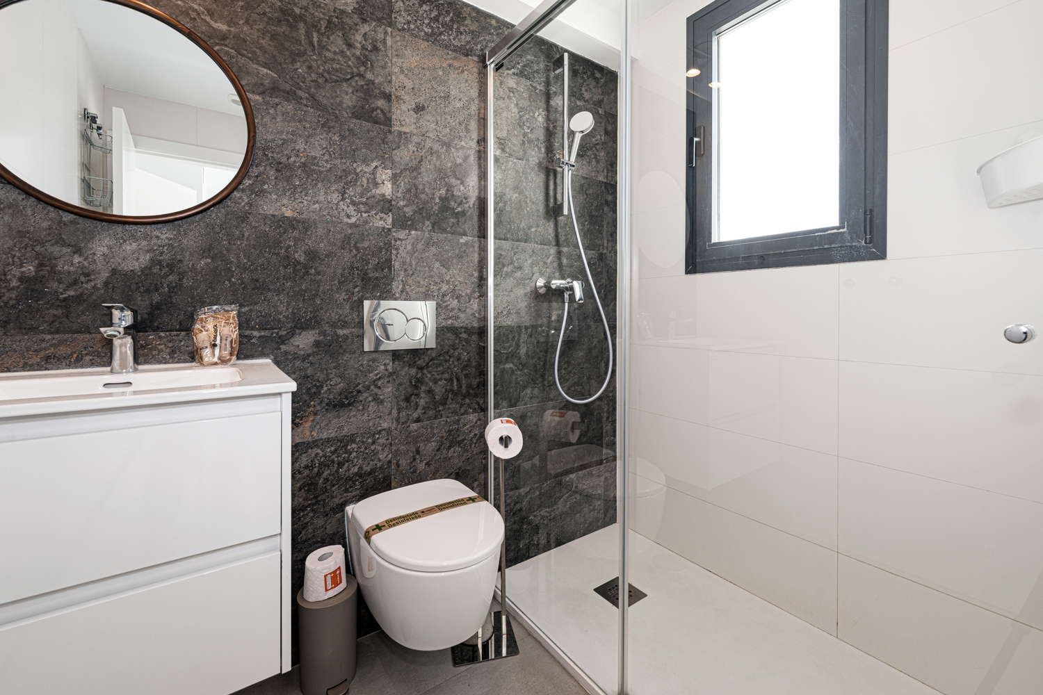 Beautiful modern apartment, it was spotlessly clean when we arrived , very well equipt with dishwasher ,coffee machine, washing machine, the bed we slept in was so comfortable…we had the best sleep ever , it was so lovely to wake up to a sea view every morning , only one bedroom has the sea view ( so get in quick ) .