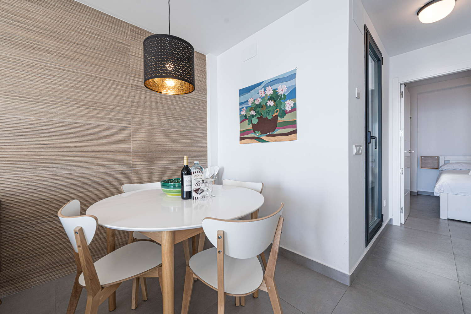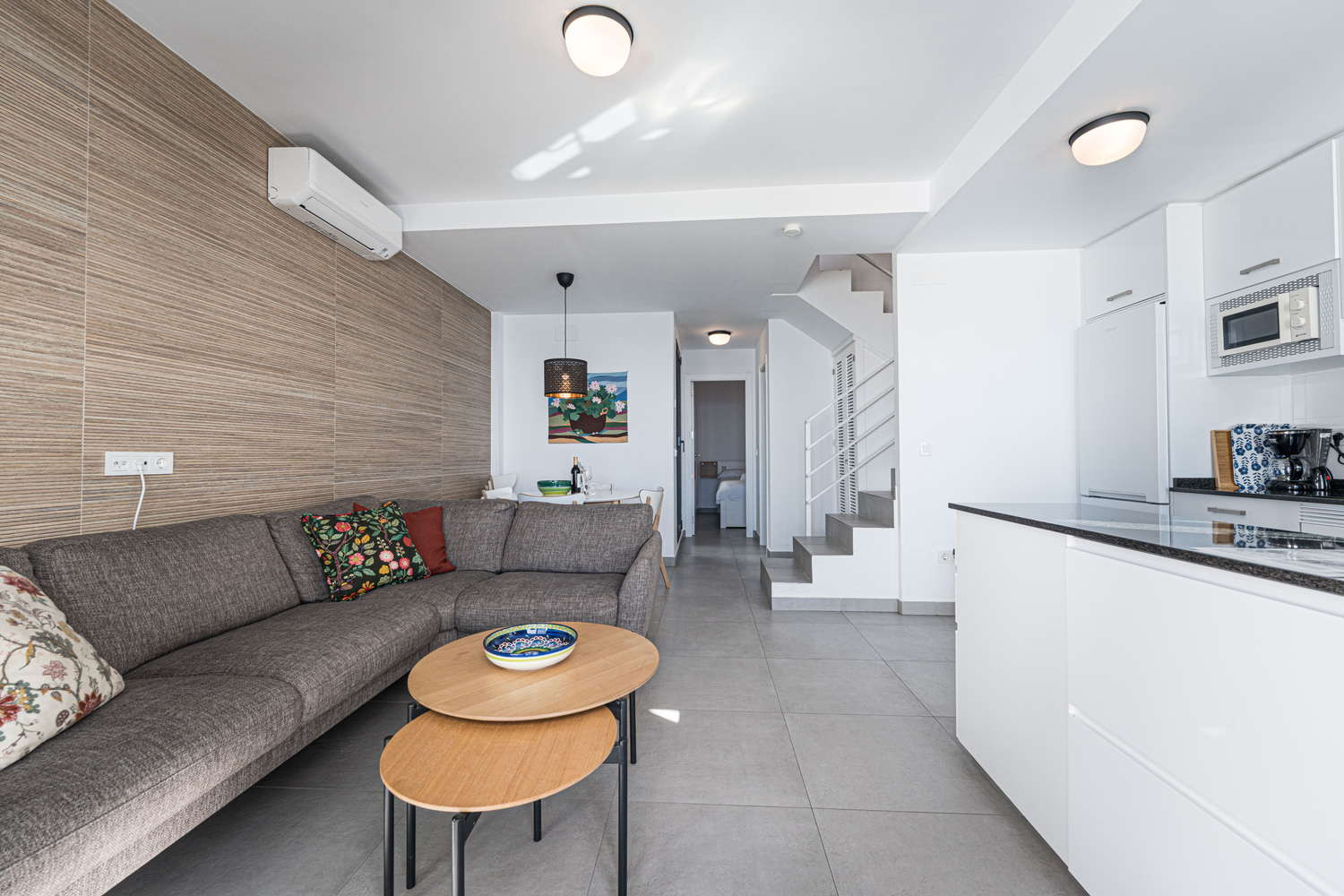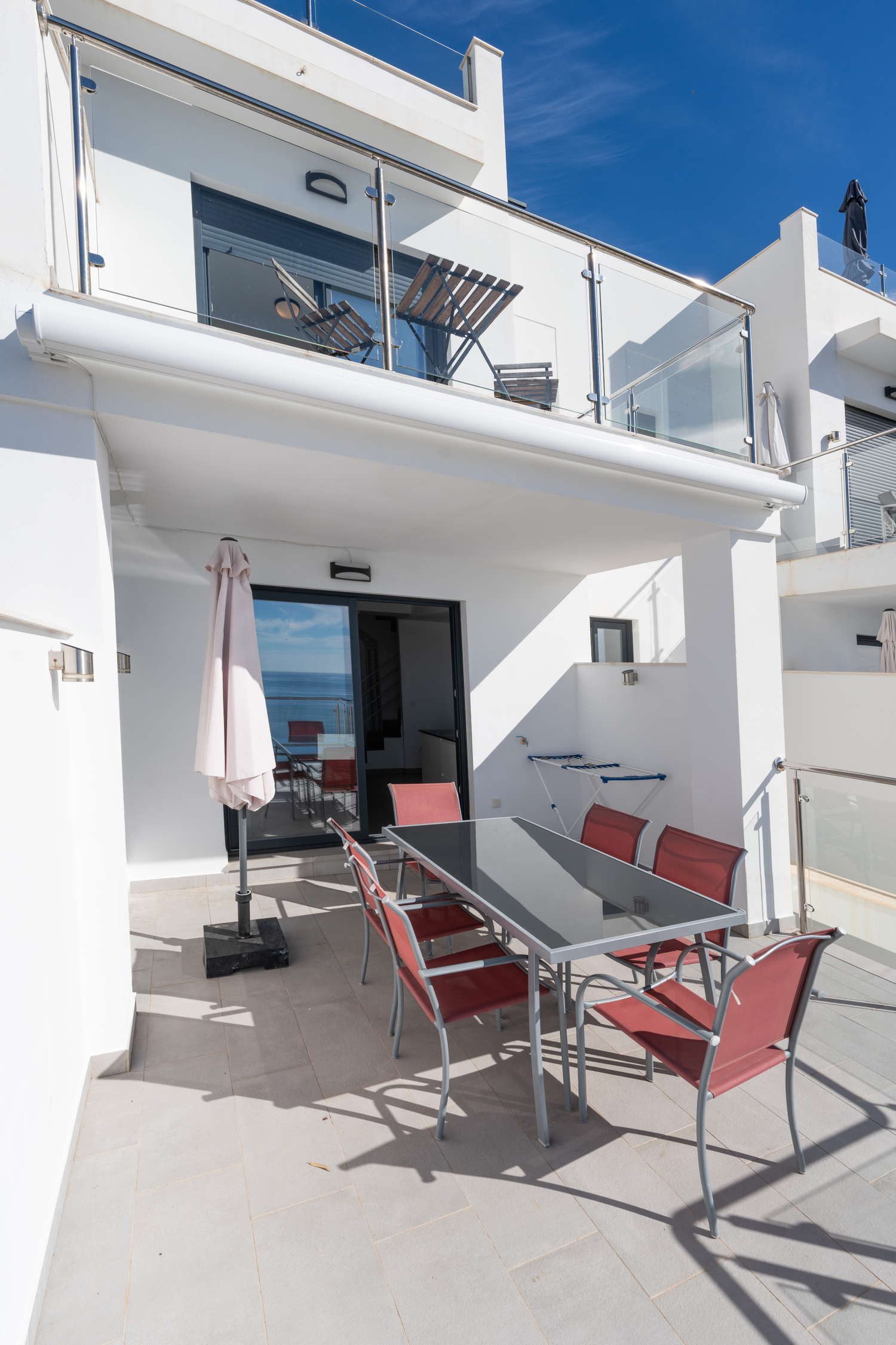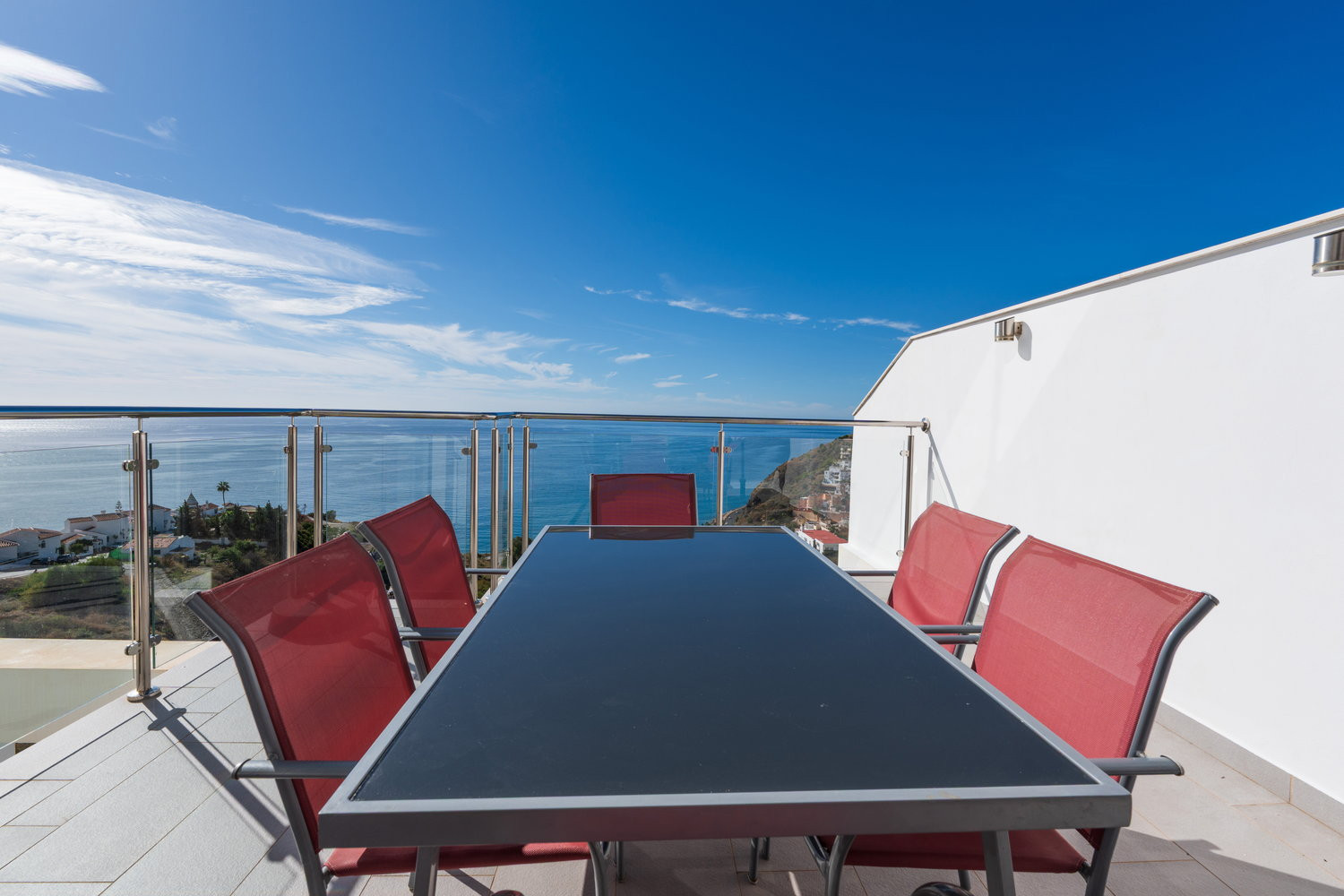 El apartamento en sí está diseñado pensando en su máxima comodidad. Cuenta con una gran terraza privada, accesible desde todas las habitaciones, que ofrece un tranquilo espacio al aire libre para cenar, relajarse o simplemente tomar el sol de Nerja.