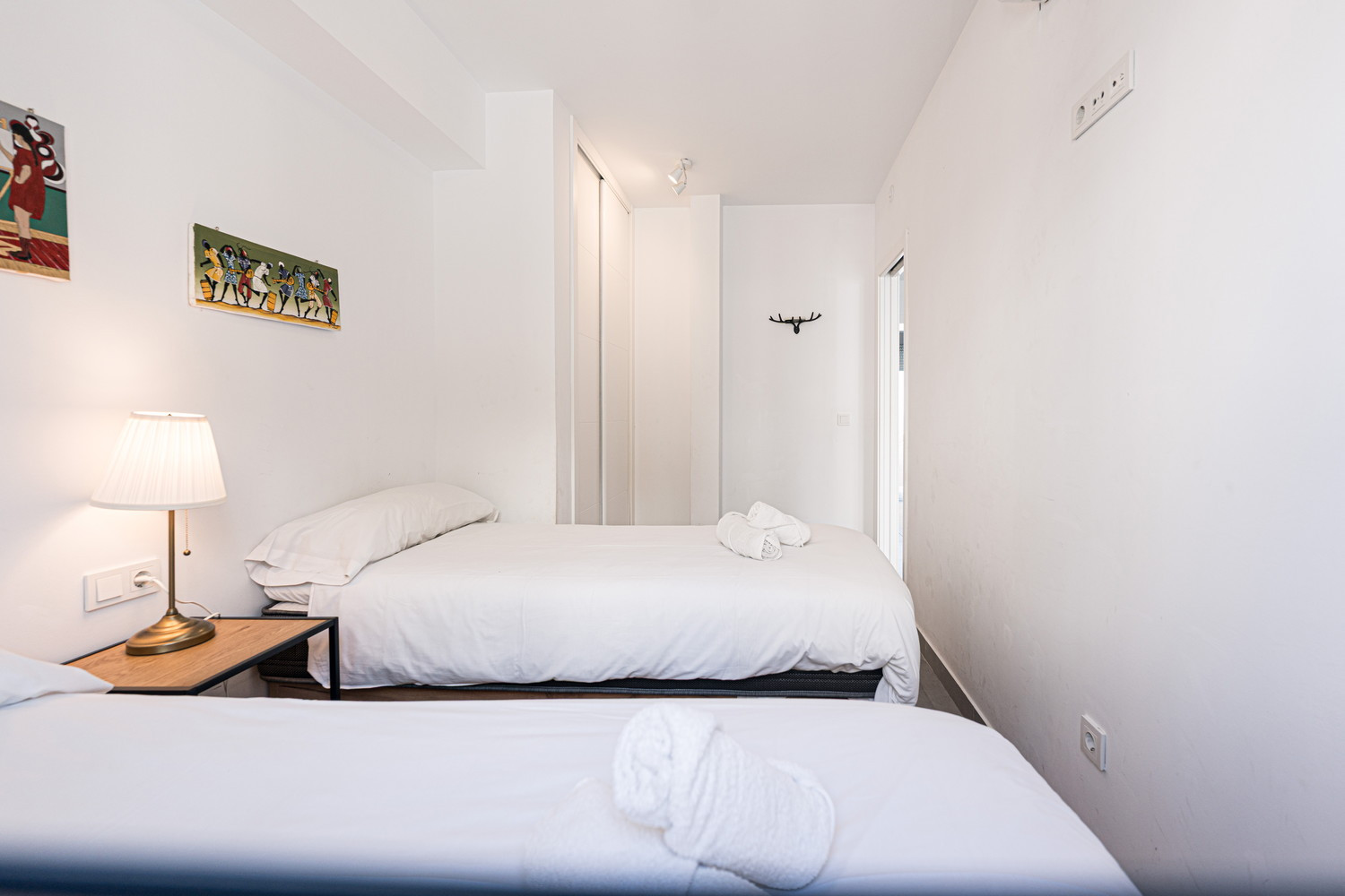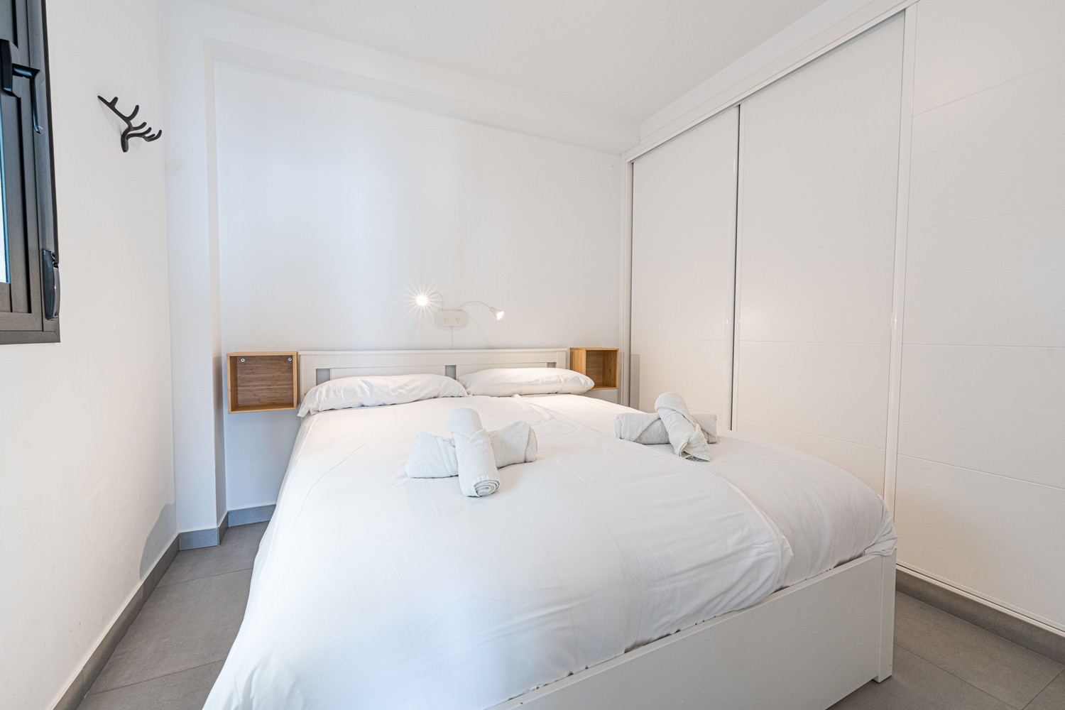Duerma cómodamente en nuestros dos dormitorios: el principal con cama de matrimonio y baño en suite, y un segundo dormitorio con dos camas individuales, ideal para la familia o los amigos. Y para aquellos que necesiten espacio extra para dormir, el salón alberga un sofá cama, con el precio del apartamento pensado en función del número de huéspedes.