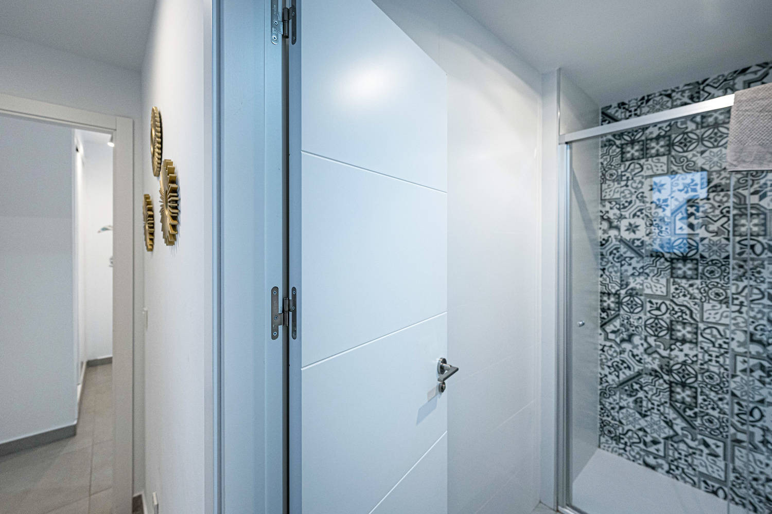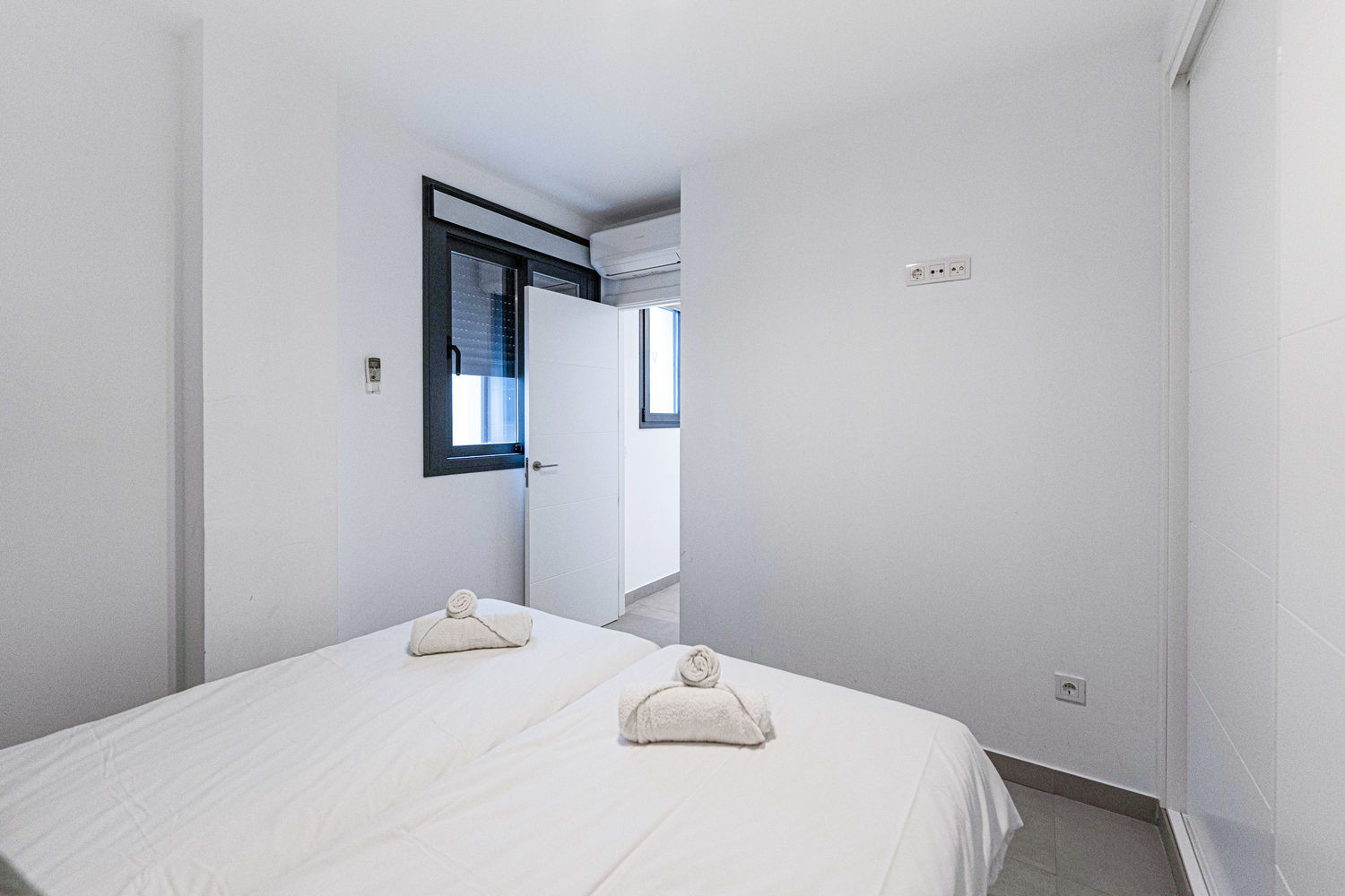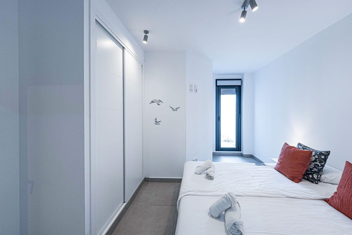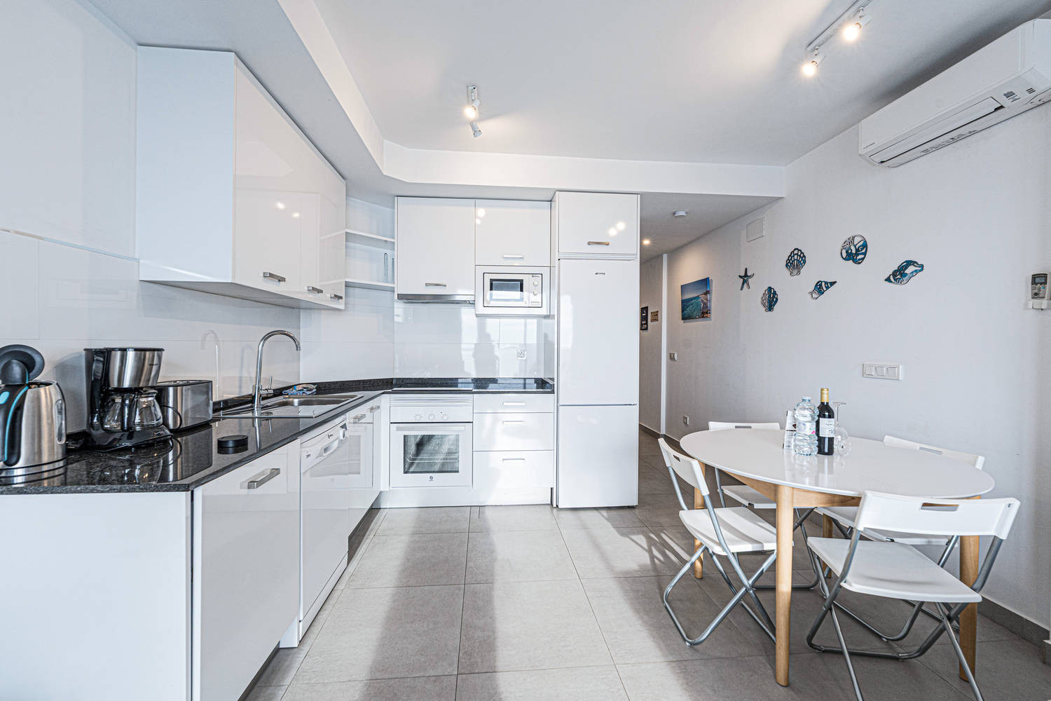 El apartamento dispone de dos dormitorios y dos baños: uno con una cama King Size y baño privado, y otro dormitorio con literas. Además, dispone de una cocina moderna totalmente equipada con electrodomésticos de vanguardia, perfecta para sentirse como en casa durante sus vacaciones.