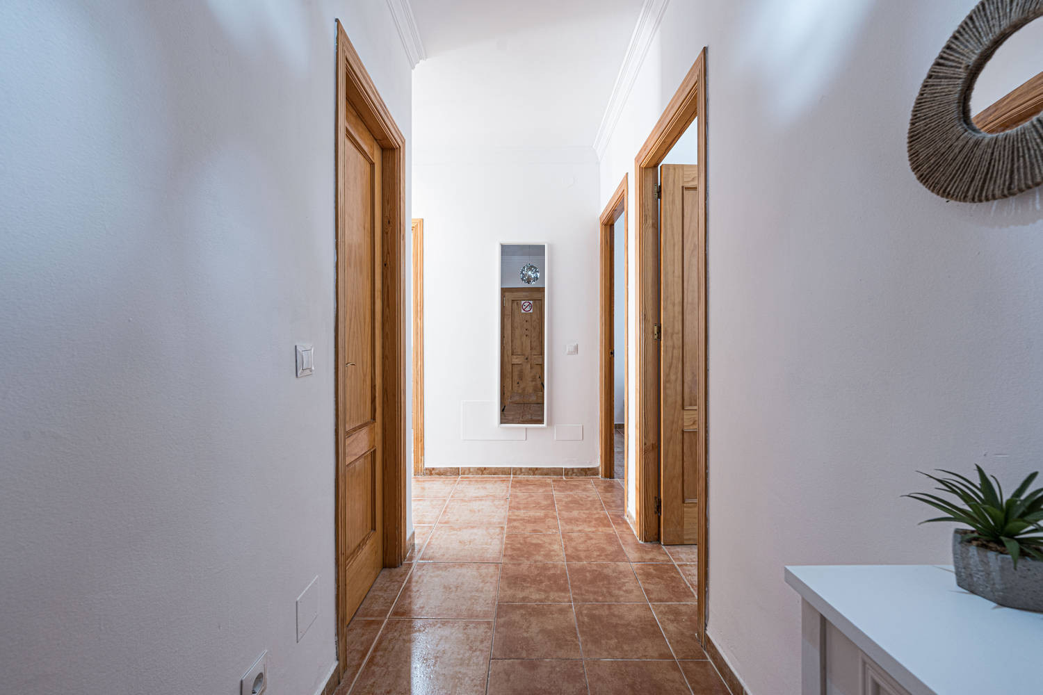 Vida interior y exterior: El salón fluye directamente hacia la terraza, que actúa como una extensión natural del espacio para disfrutar de la brisa marina. Gracias a su orientación sur, la vivienda recibe luz natural durante todo el día, mientras que el aire acondicionado central garantiza el confort térmico en todas las habitaciones sin excepciones.