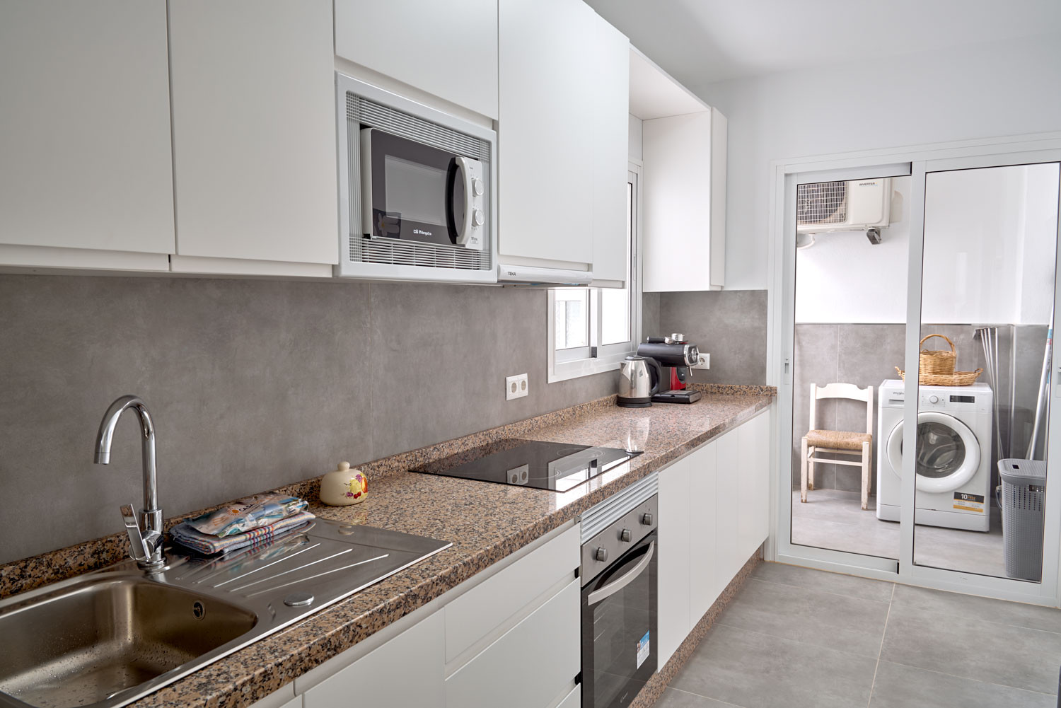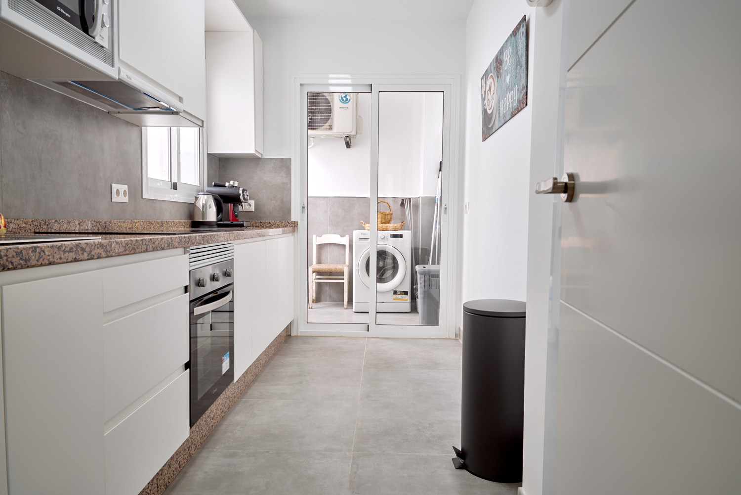 Comodidades: Conexión Fibra Óptica, Aire Acondicionado (frío/calor), cocina con menaje completo, microondas, cafetera y zona de lavado independiente con lavadora y tendedero.