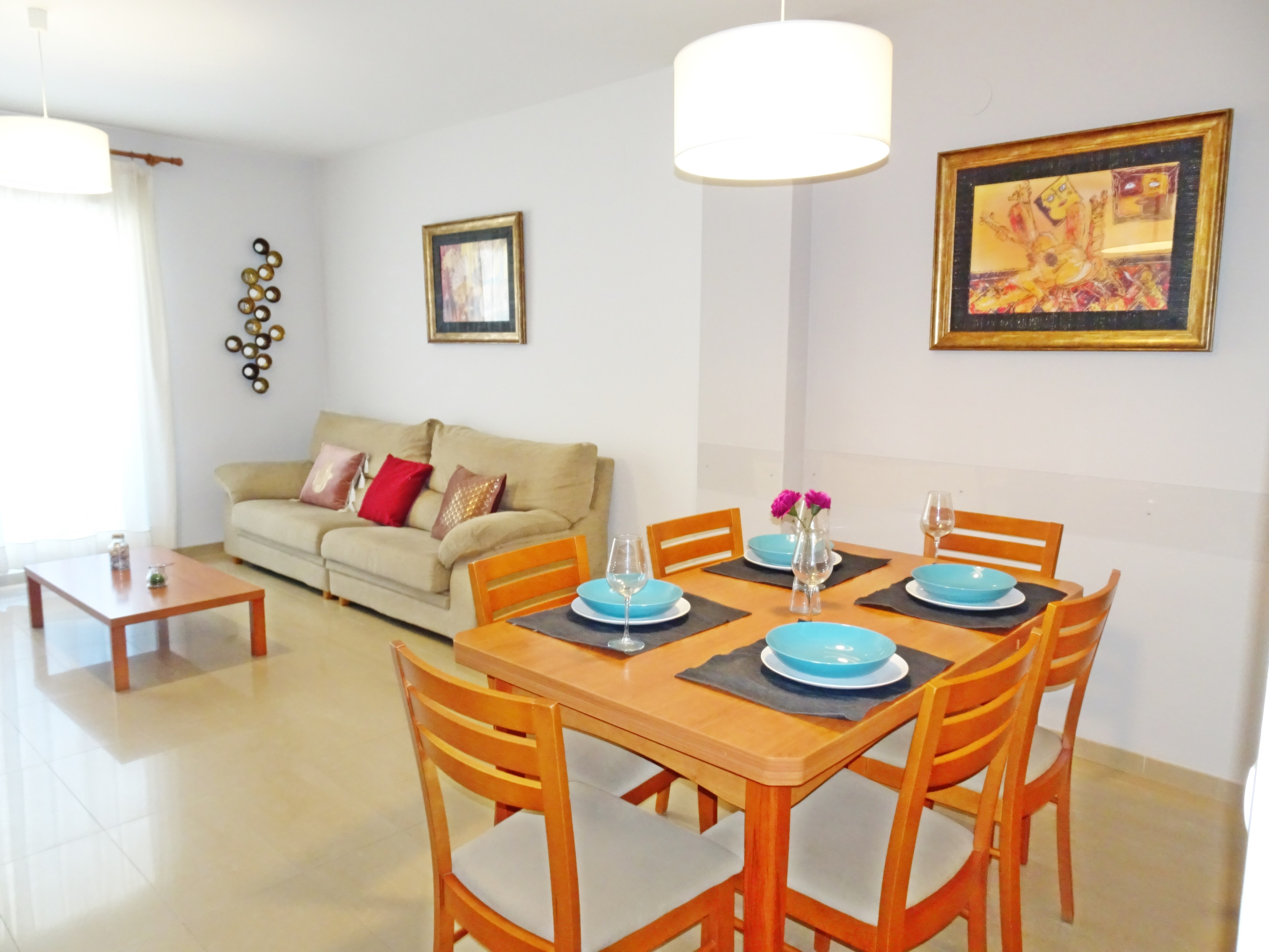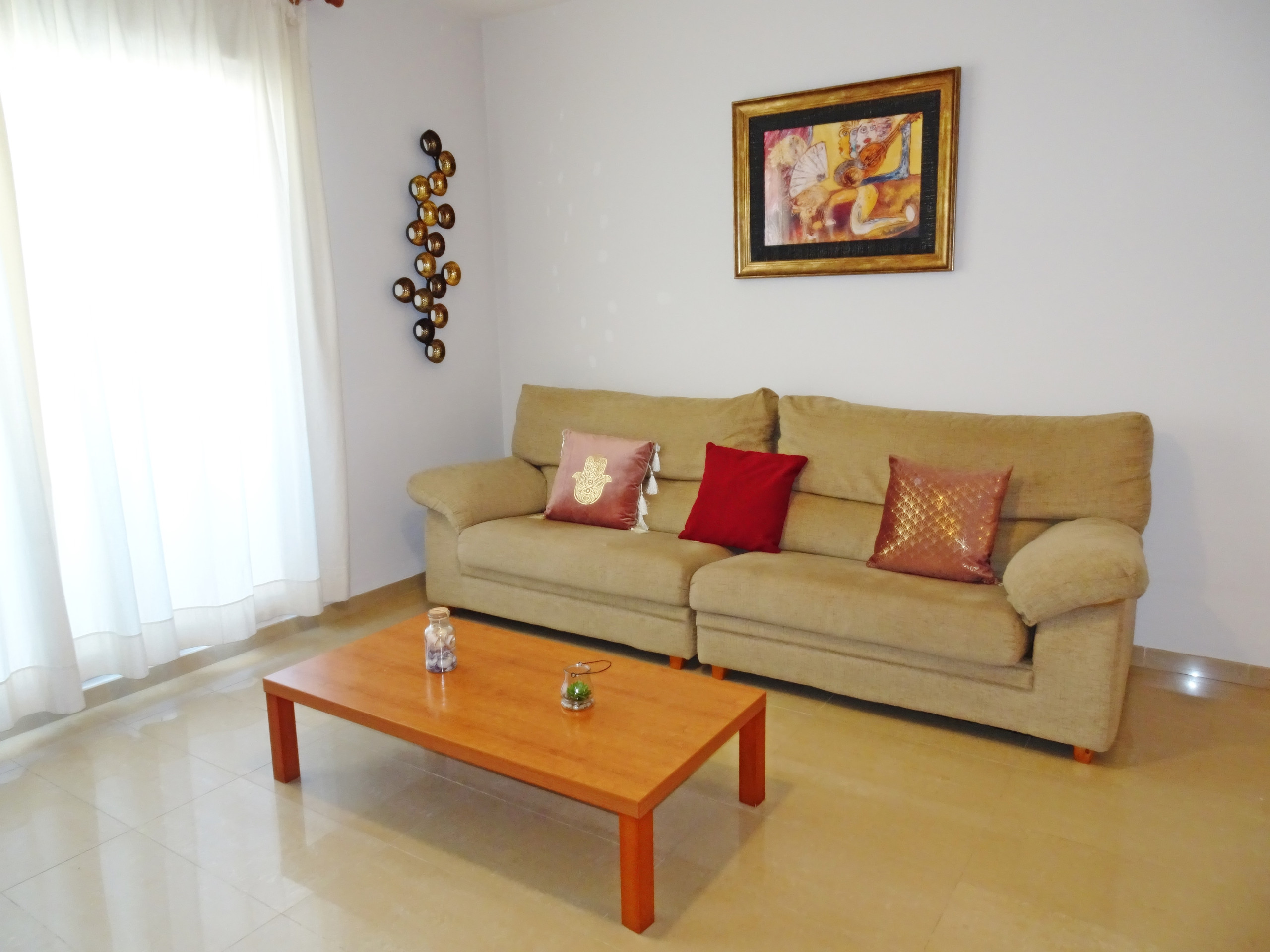 - PLANTA PRIMERA: Salón con sofá-cama (o cama supletoria ), con una amplia terraza, cocina independiente totalmente equipada y 1 cuarto de baño completo