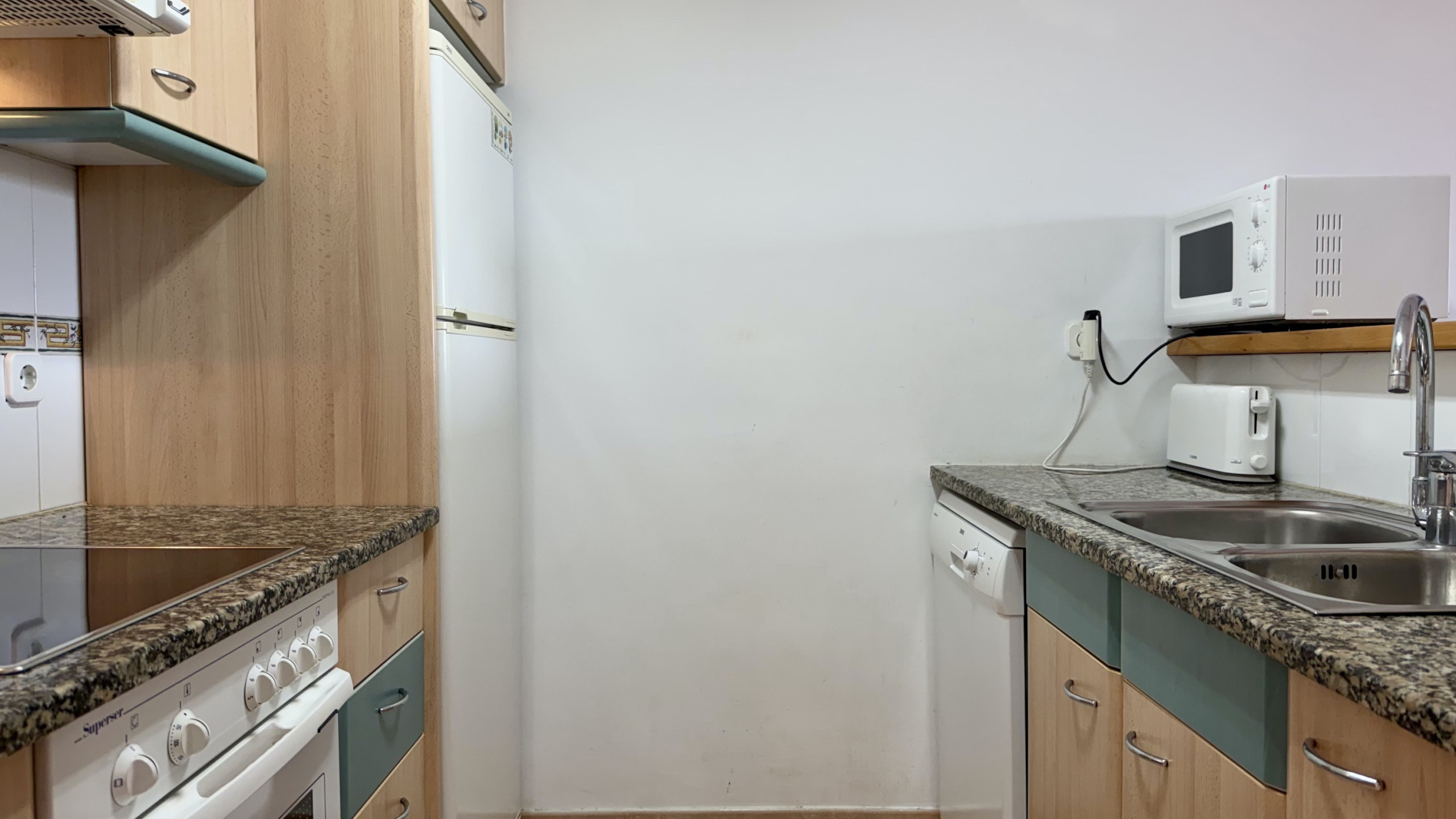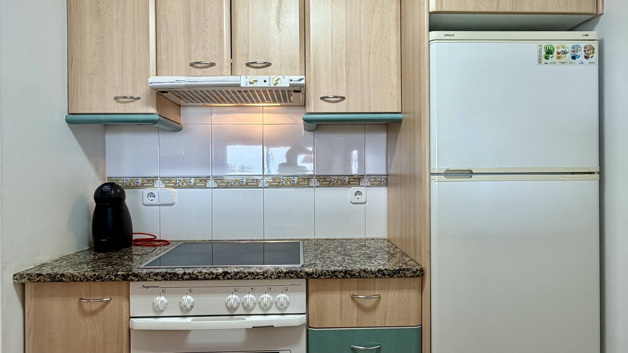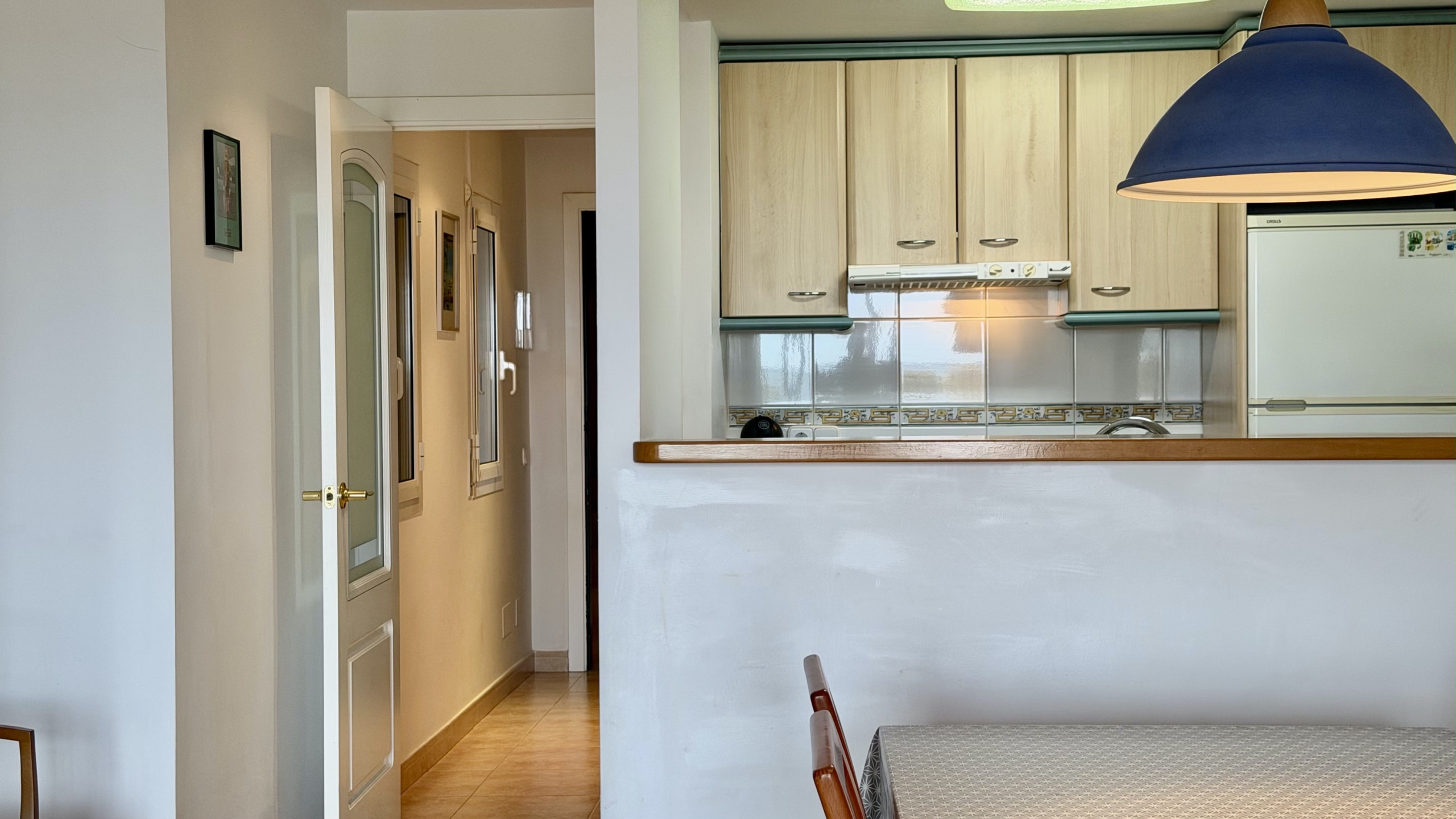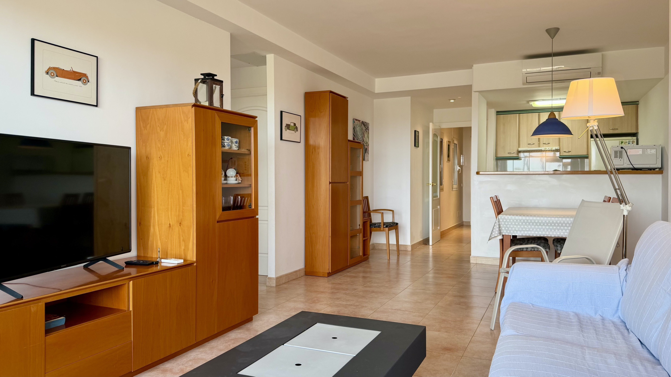 El apartamento destaca por su diseño elegante y funcional, amueblado con gusto y pensado para el confort familiar. Dispone de una cocina americana completamente equipada con electrodomésticos modernos como lavavajillas, horno, microondas, cafetera y todos los utensilios necesarios para preparar comidas deliciosas.