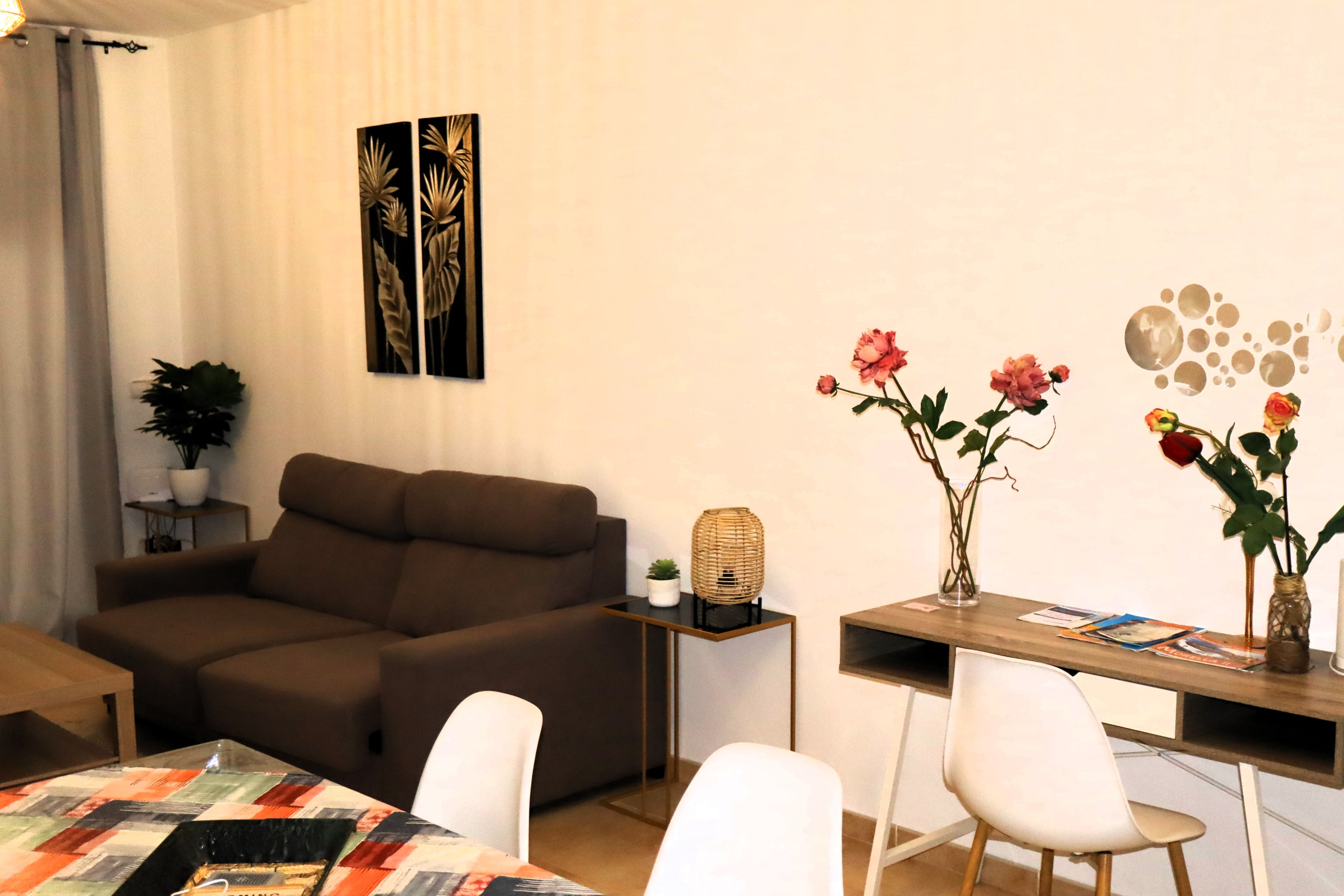 Apartamentos para 7/8 personas. Consta de tres dormitorios, baño completo, cocina independiente, salón-comedor con sofá-cama y con vistas a la playa. WIFI. Dispone de plaza de parking privada.