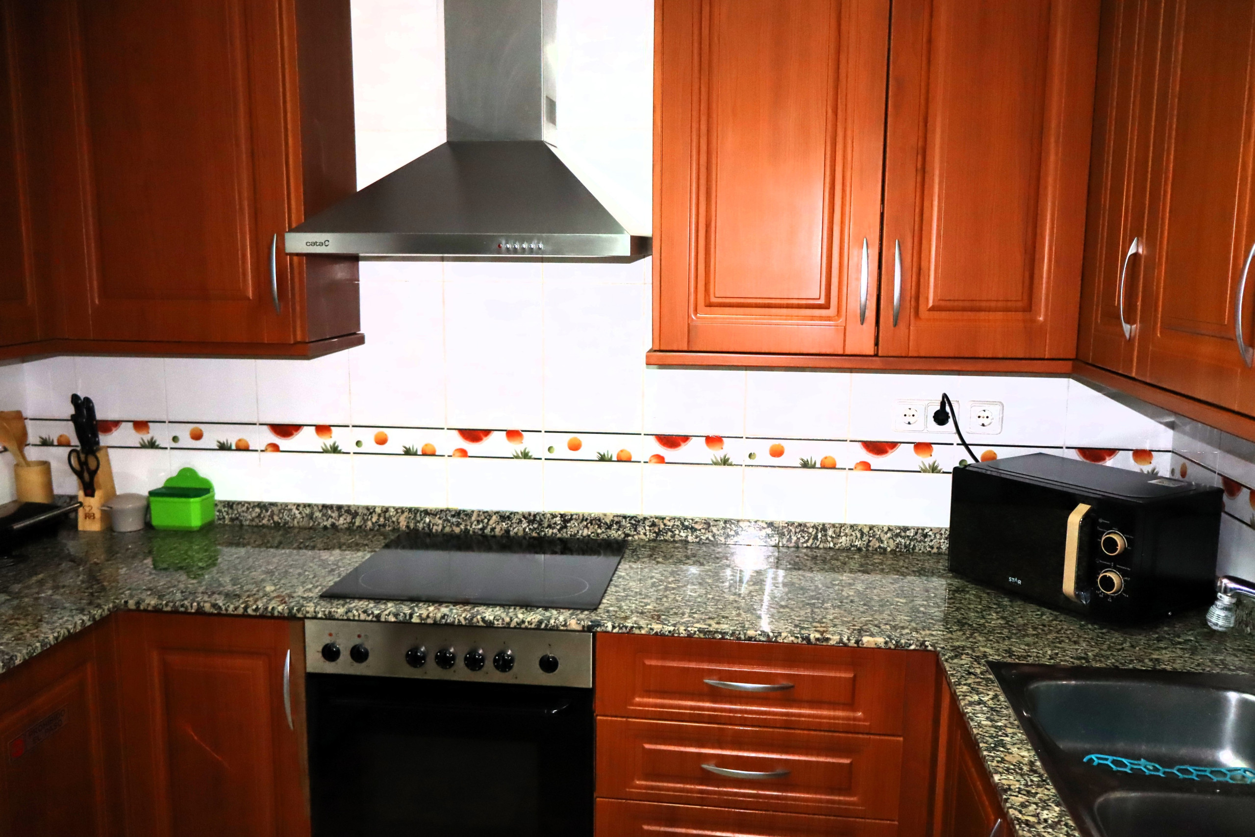 Dispone de terraza, plancha, una plaza de parking al aire libre en el mismo edificio y televisión.