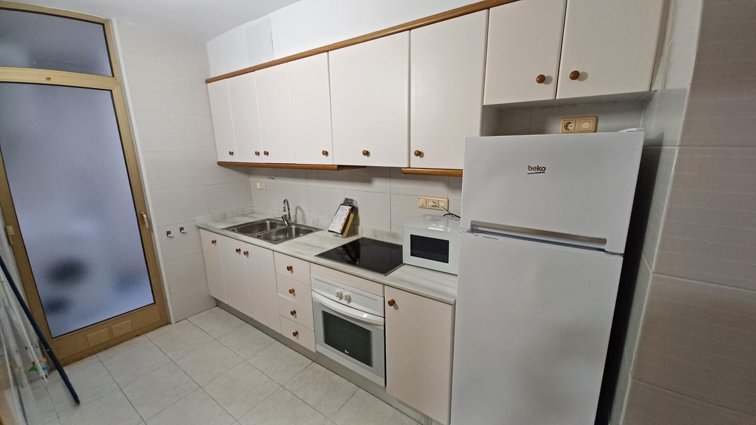 El apartamento cuenta con 60 metros cuadrados distribuidos inteligentemente, con capacidad para 5-6 personas. Dispone de dos dormitorios: uno con cama matrimonial y otro con dos camas individuales, además de un sofá cama que permite alojar cómodamente a todos los huéspedes. La cocina está completamente equipada con electrodomésticos como nevera, lavadora, horno, microondas y cafetera.