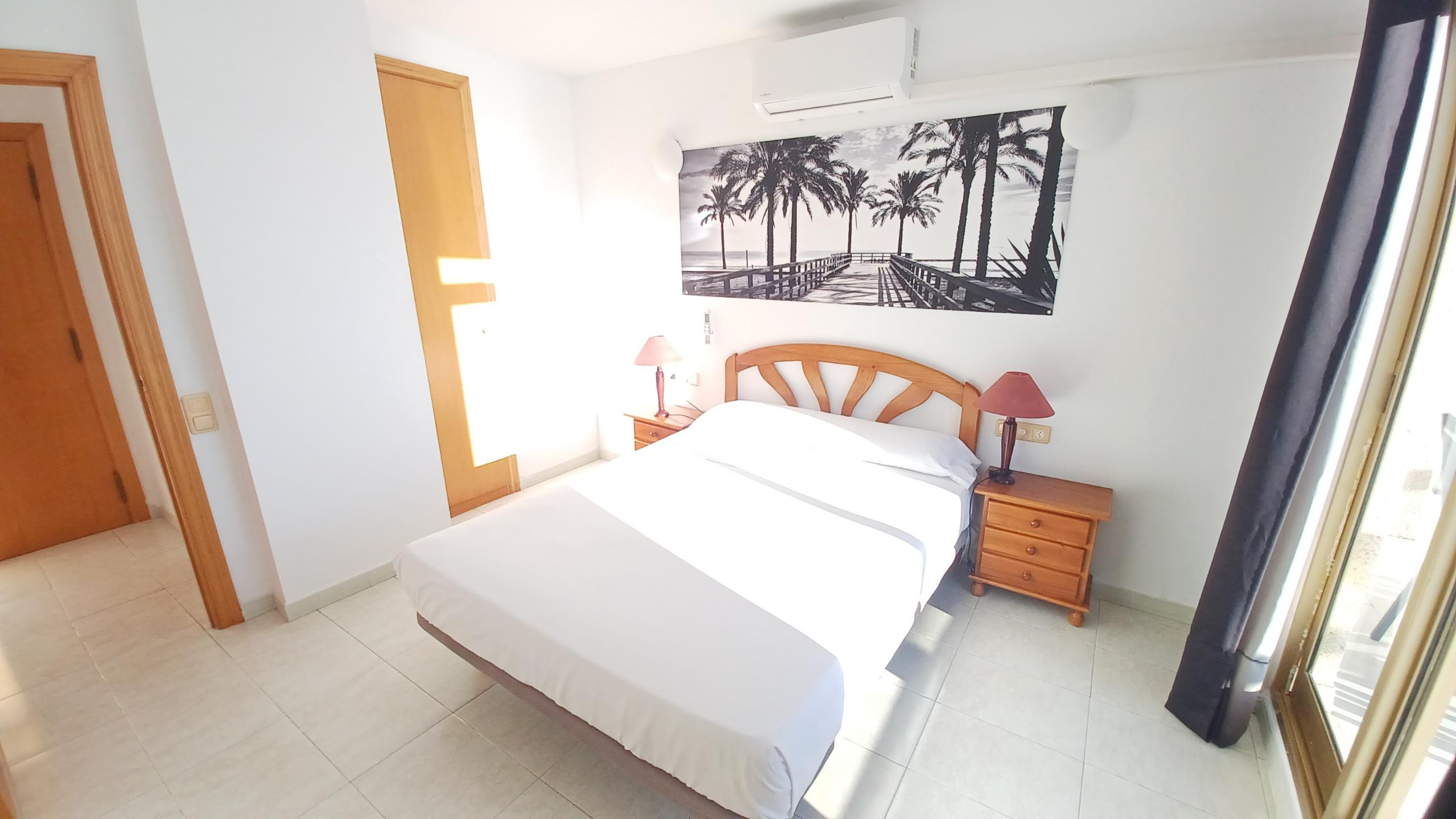 El apartamento cuenta con dos dormitorios que pueden alojar hasta 5 adultos, con una distribución flexible que incluye una cama doble, un sofá-cama y dos camas individuales. La estancia está equipada con aire acondicionado en la sala de estar y en las habitaciones, garantizando tu confort durante los días más calurosos.